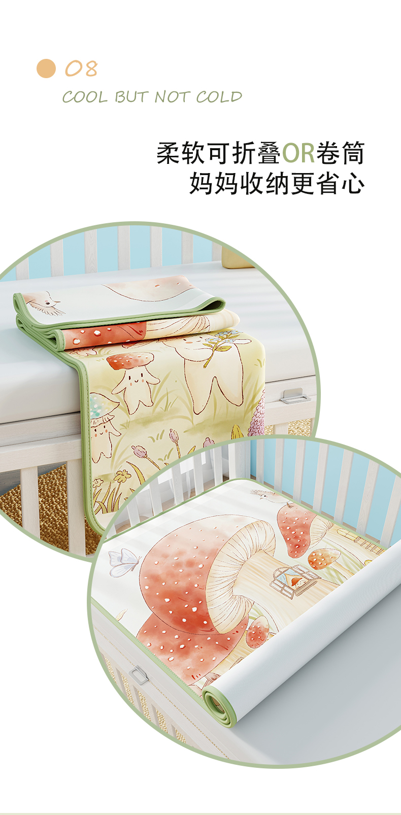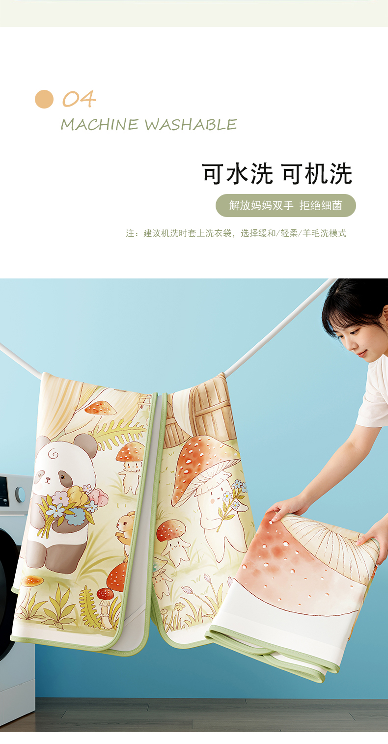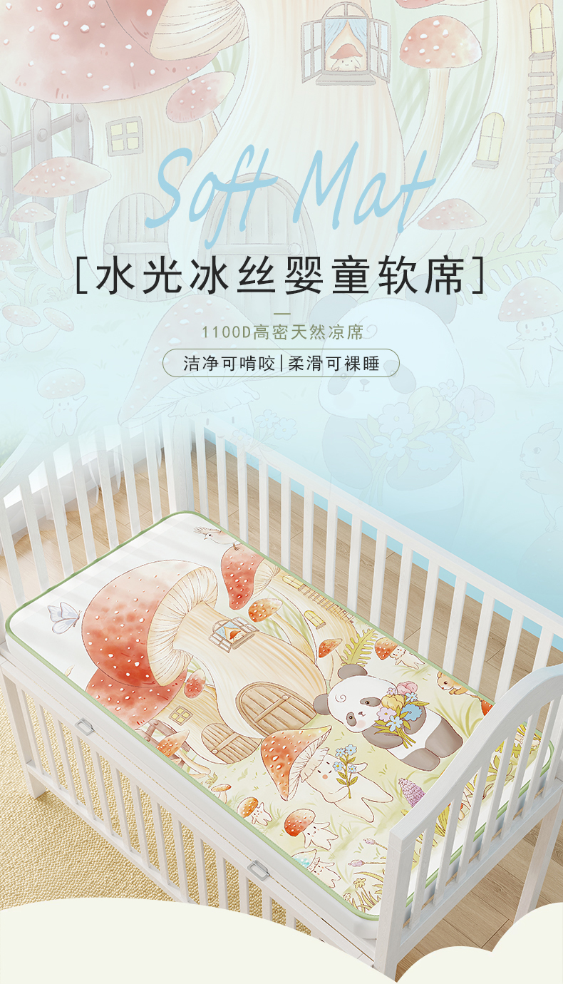 商品名称:奇丝雅 2026新款A类数码印花大版1100D水光冰丝凉席凉席婴儿儿童新生【三明治网底】 蘑菇城堡【三明治网底】