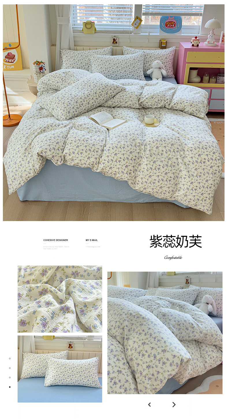 商品名称:找底底家纺 2026新款泡泡棉小清新双层纱床裙款四件套 紫蕊奶芙