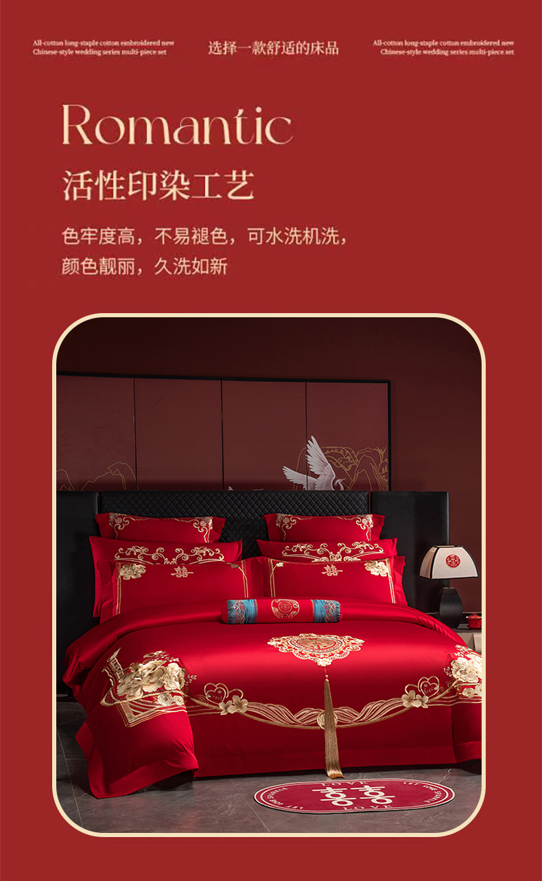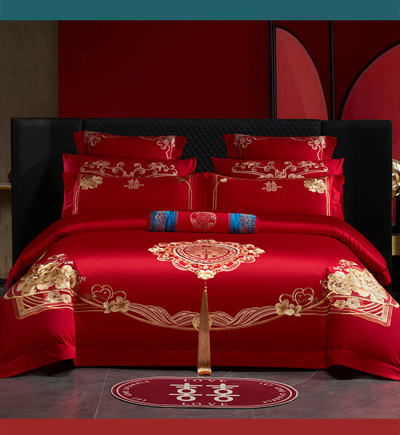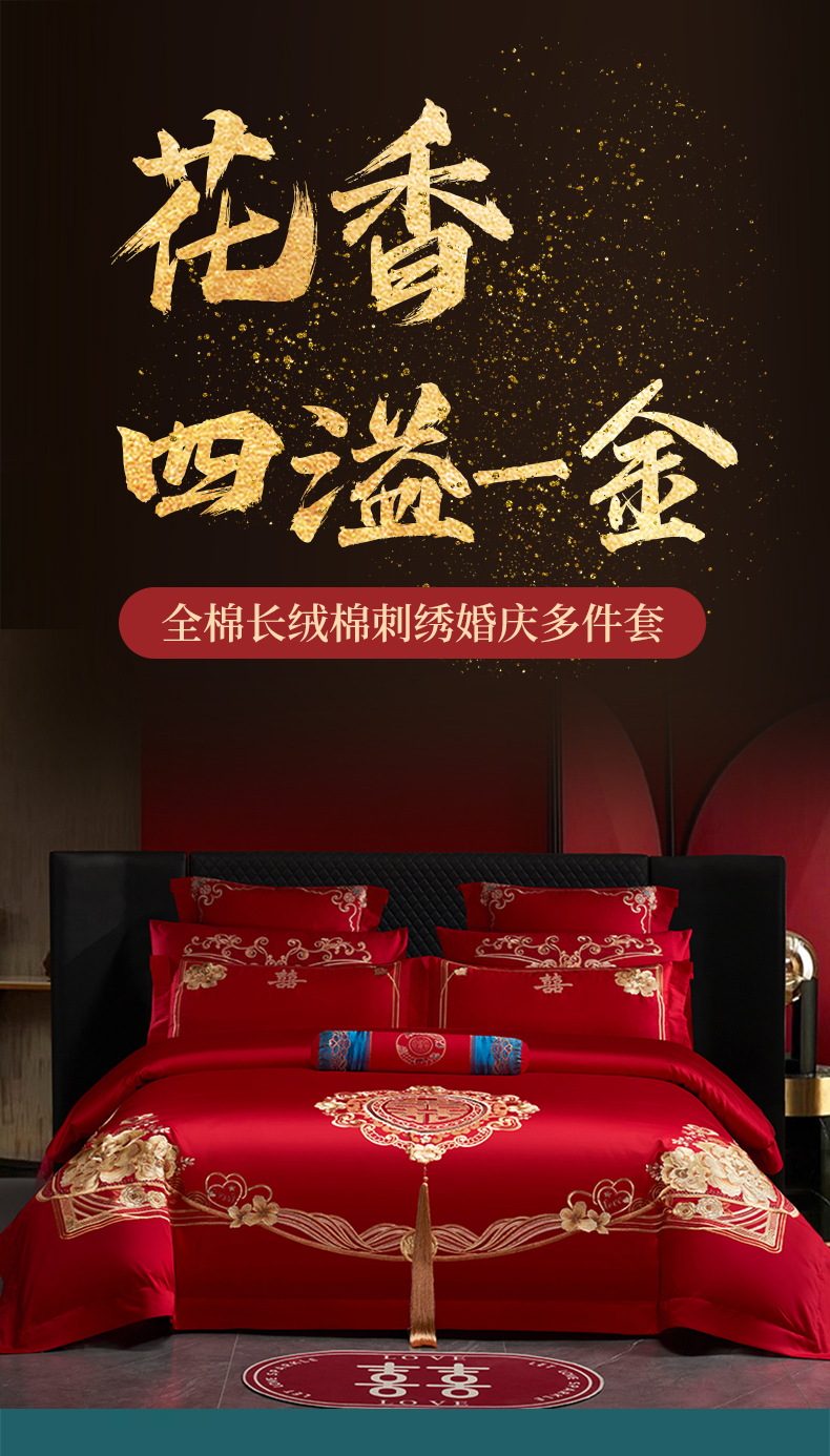 当前位置: 91家纺网 > 商品网购 > 床品套件 > 四件套 > 婚庆四件套 > 博之洋婚庆 2026新款全棉纯棉长绒棉刺绣婚庆四件套多件套 花香四溢-金