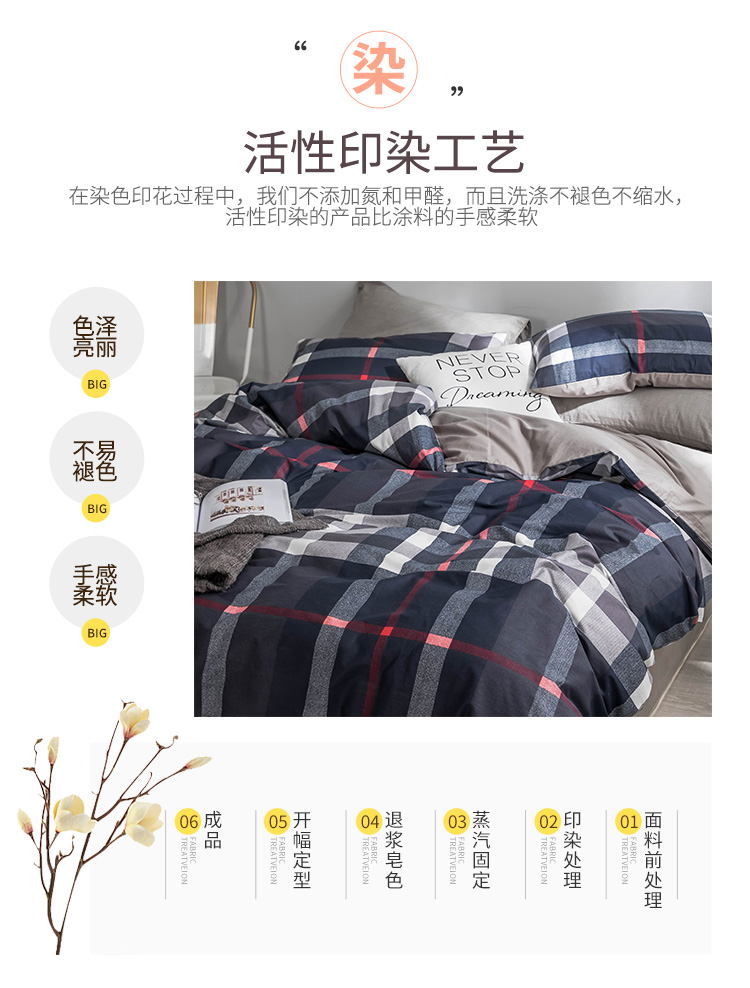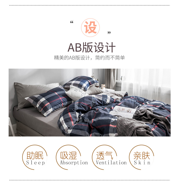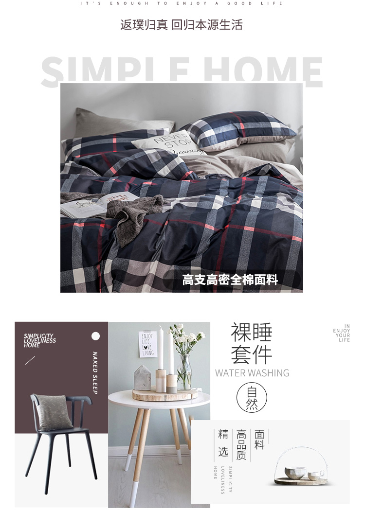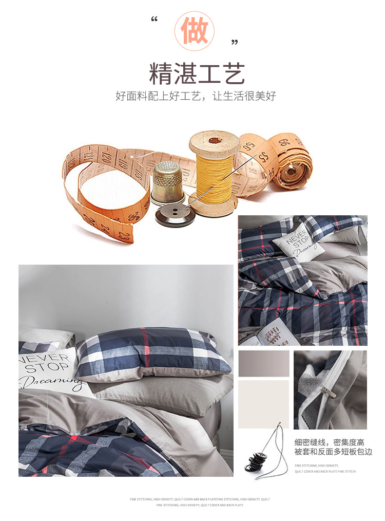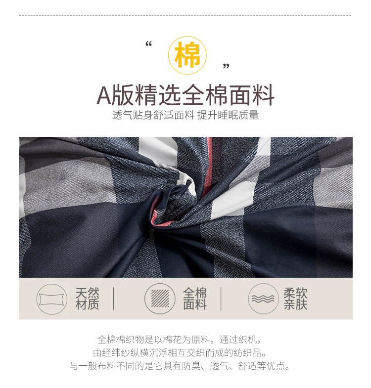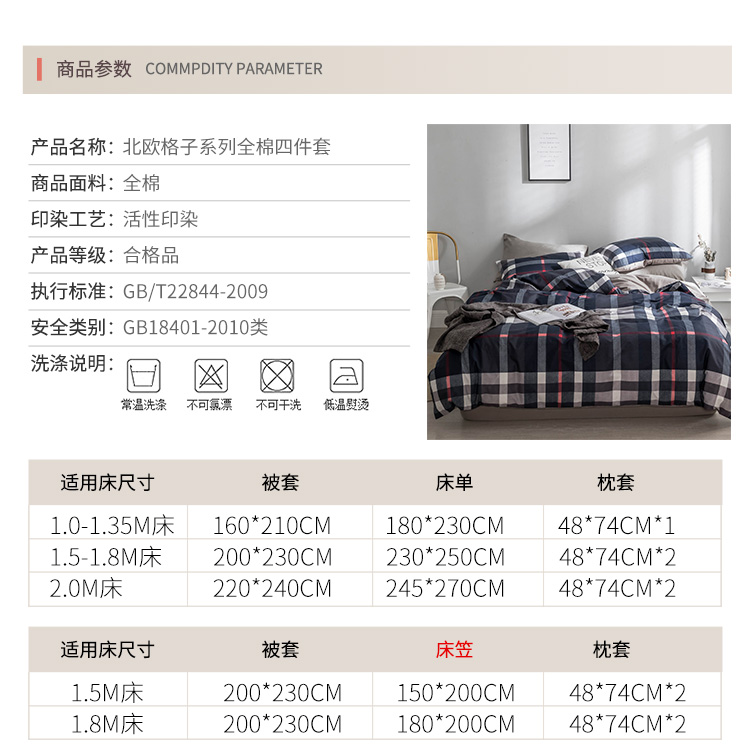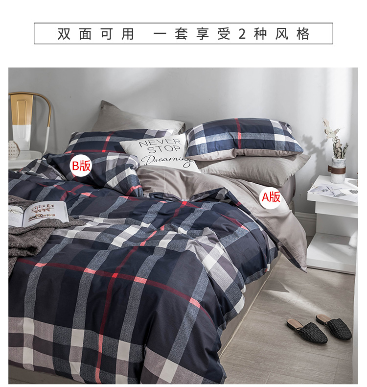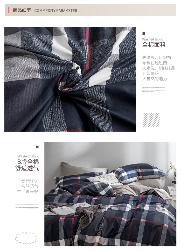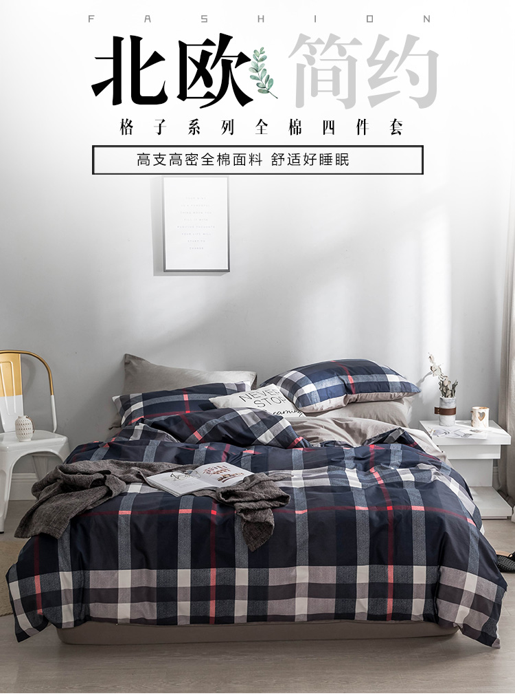 商品名称:艾沁家纺 北欧简约格子条纹系列全棉四件套床单款爵士