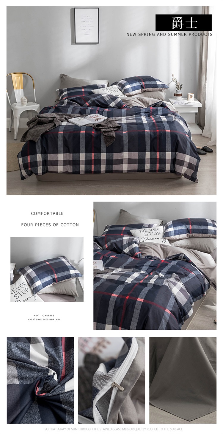 艾沁家纺 北欧简约格子条纹系列全棉四件套床单款爵士