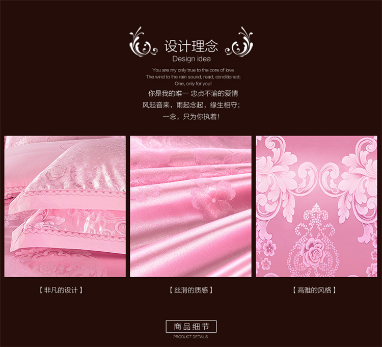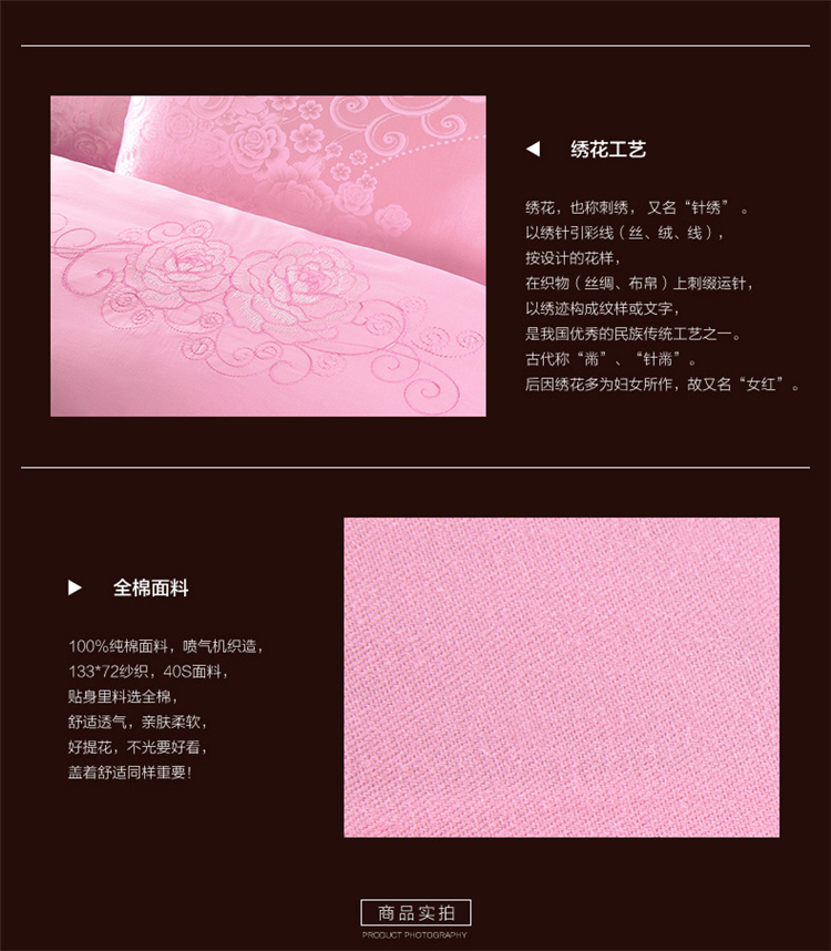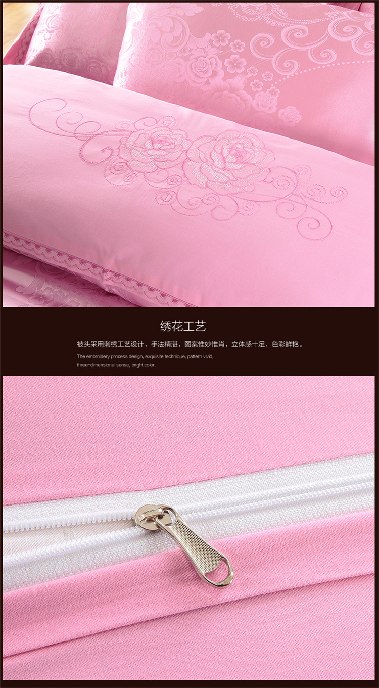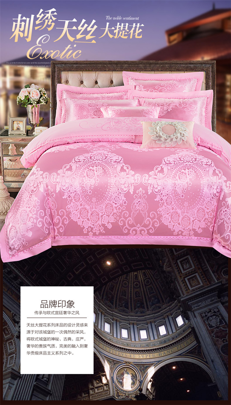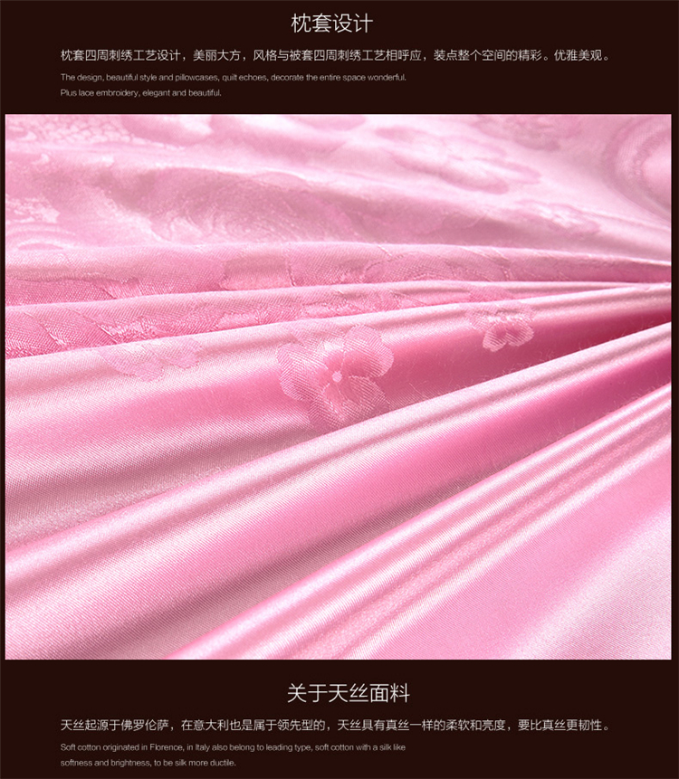 商品名称:柔觉家纺 天丝刺绣大提花四件套 罗娜恋歌-粉