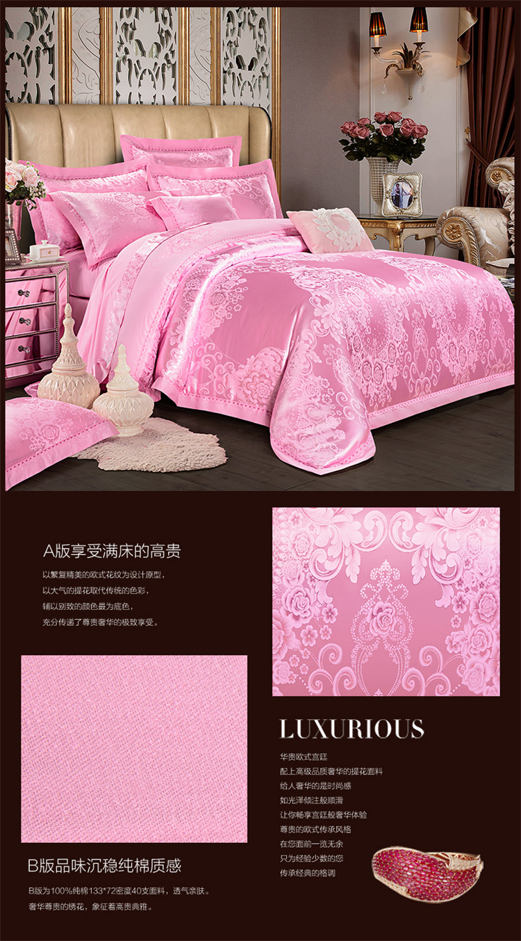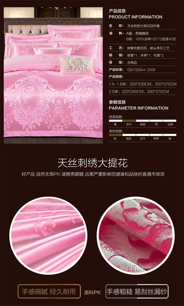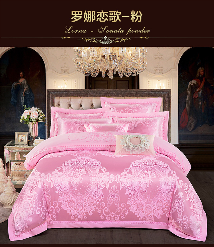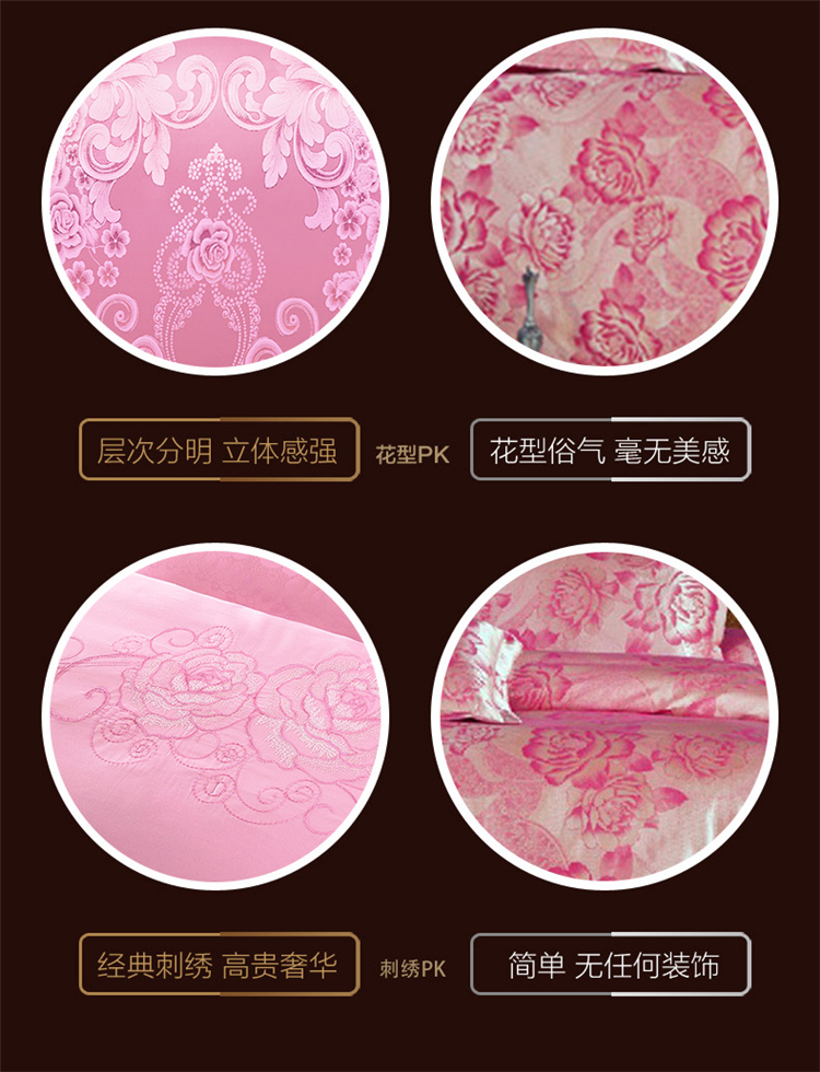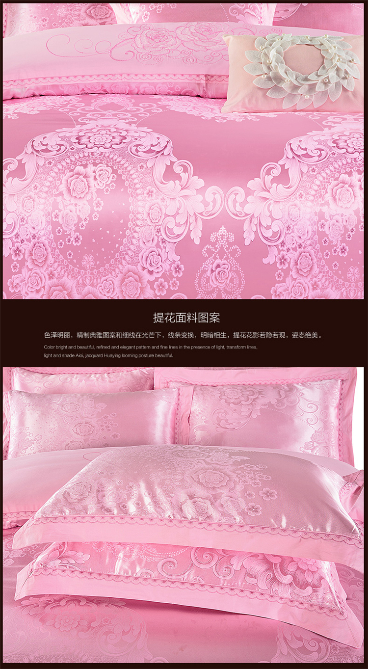 商品名称:柔觉家纺 天丝刺绣大提花四件套 罗娜恋歌-粉