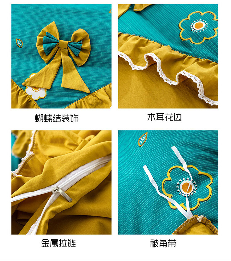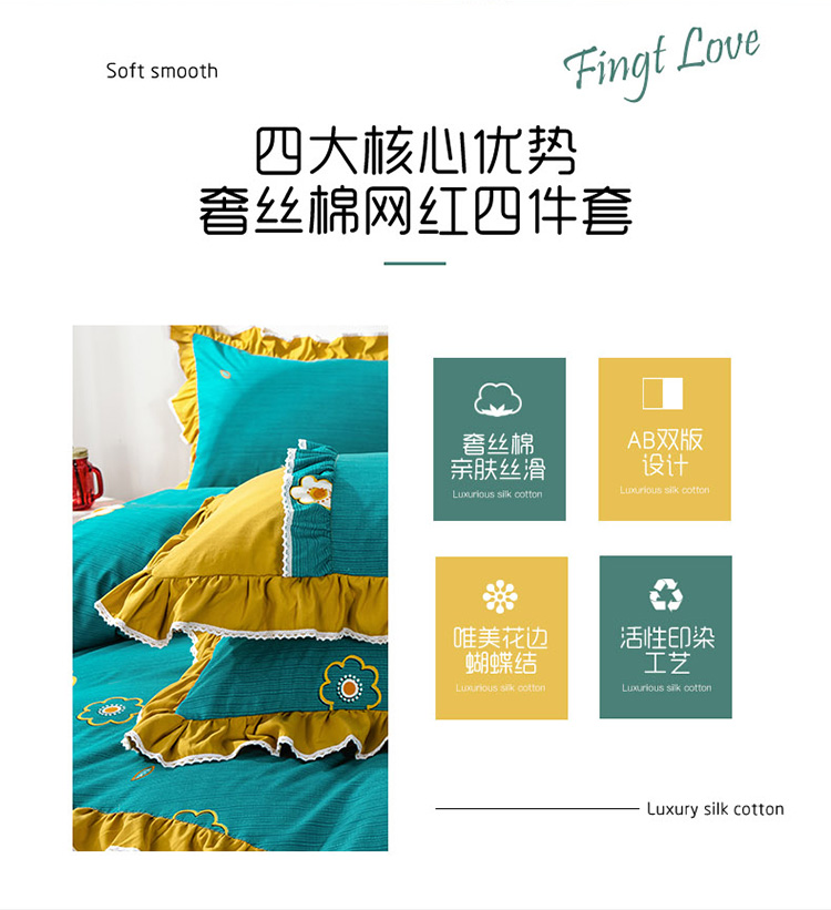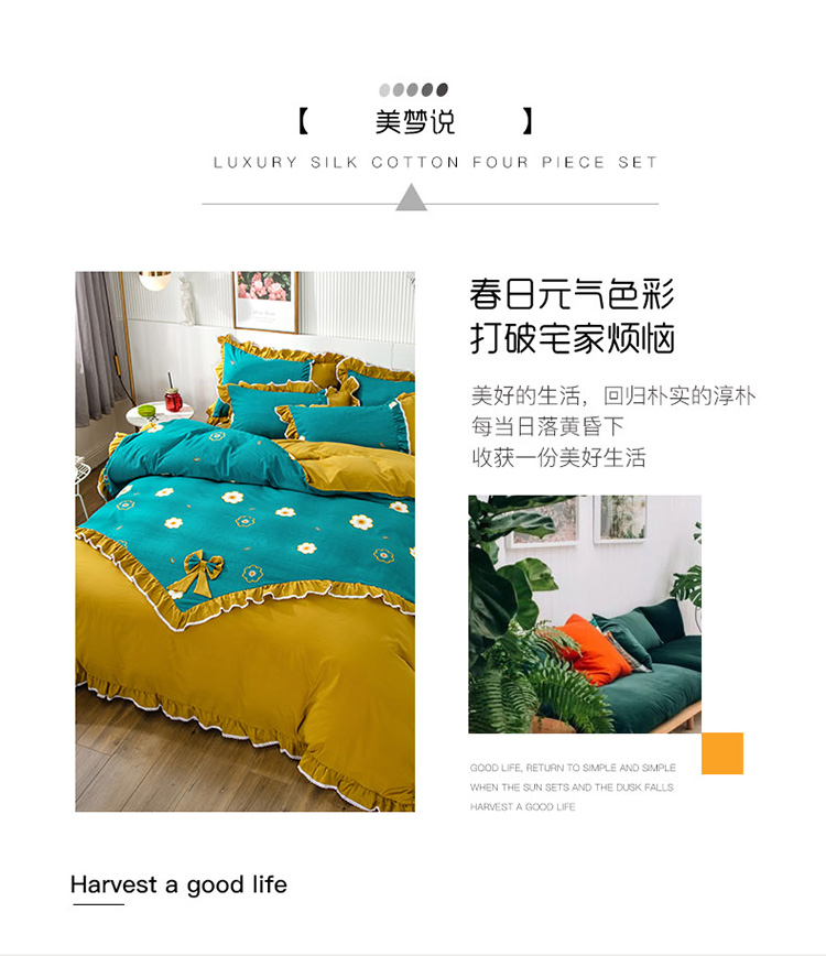 商品名称:兴美佳 新款网红爆款奢丝棉四件套 幸运草-黄绿