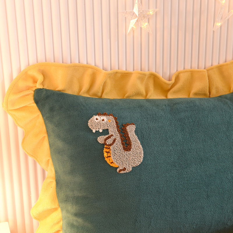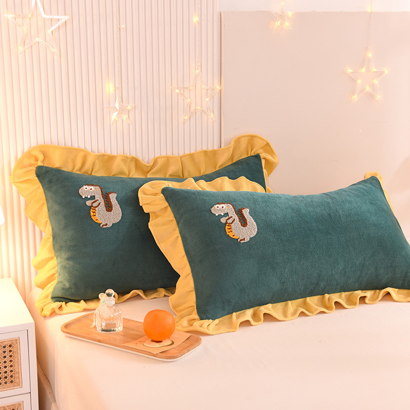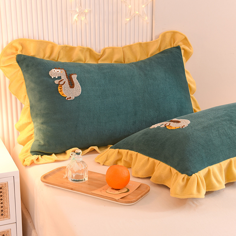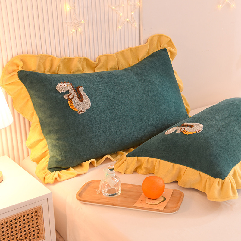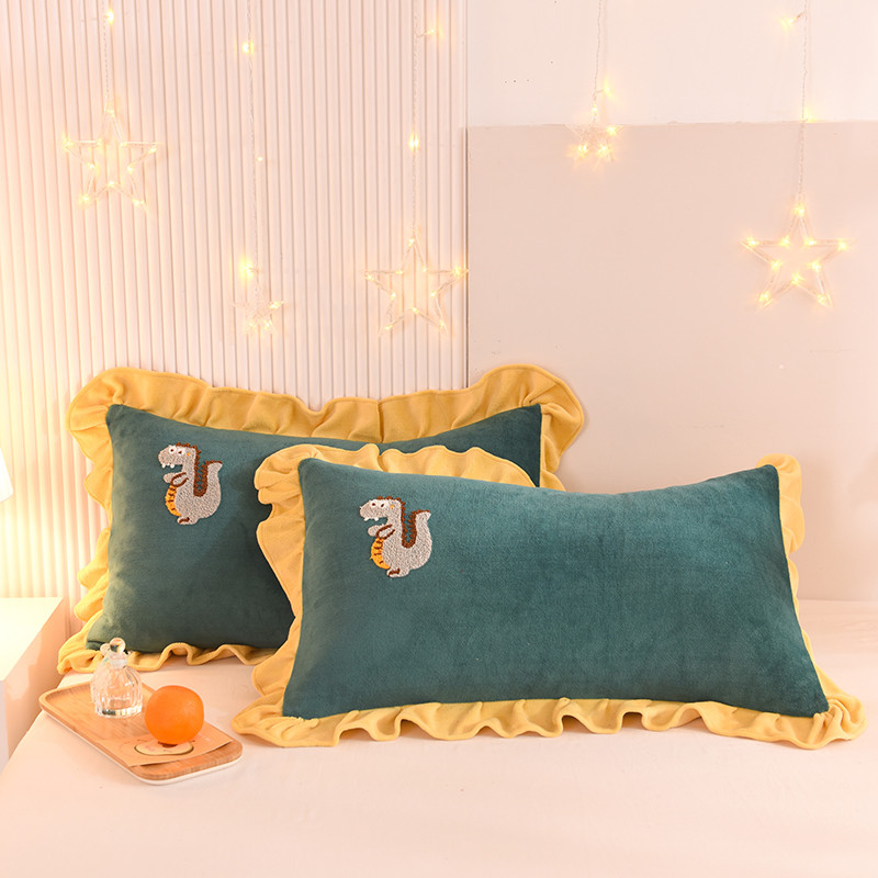 商品名称:甜之梦 2025新款毛巾绣牛奶绒单枕套 乖乖龙墨绿
