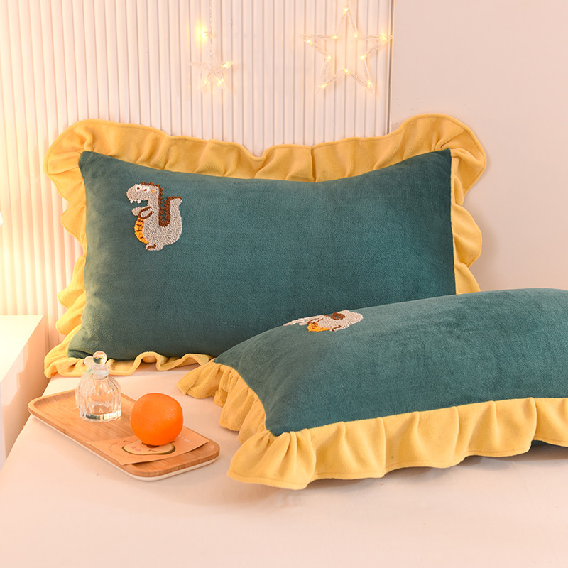 甜之梦 2025新款毛巾绣牛奶绒单枕套 乖乖龙墨绿