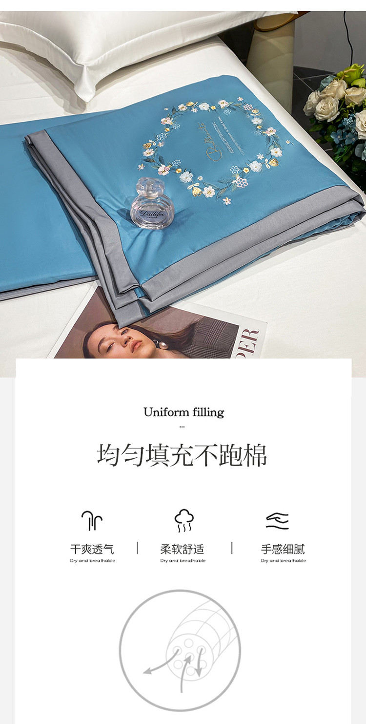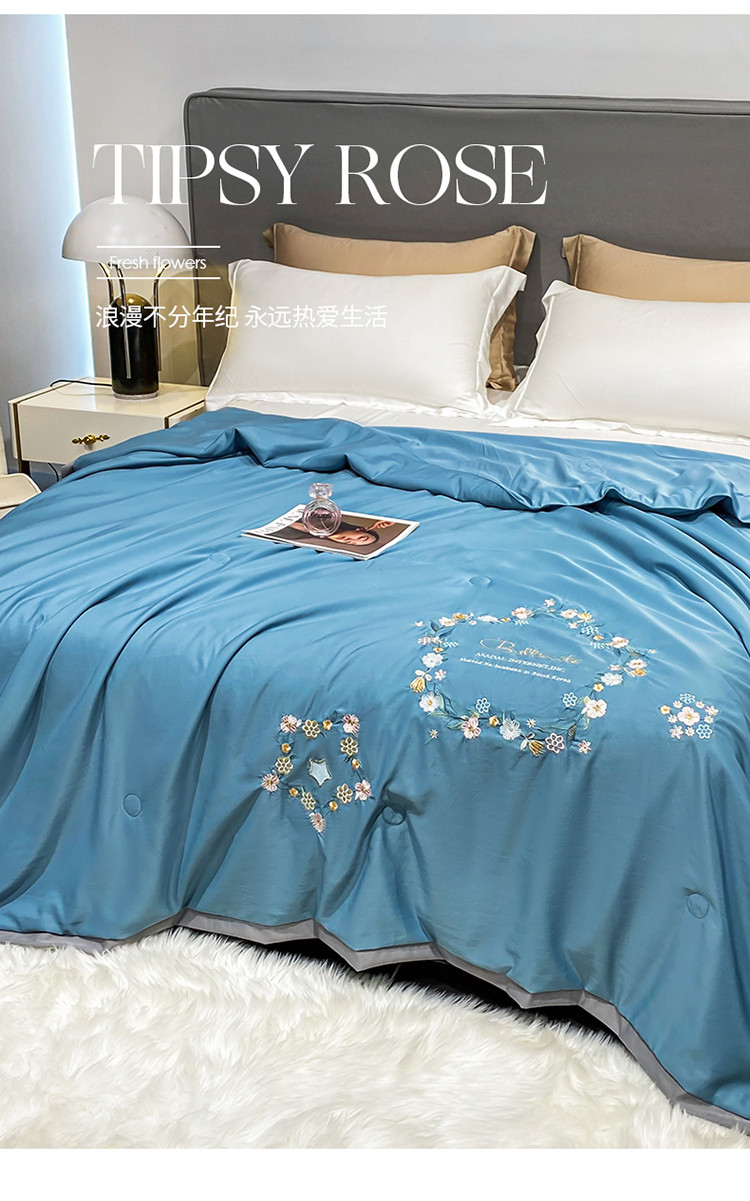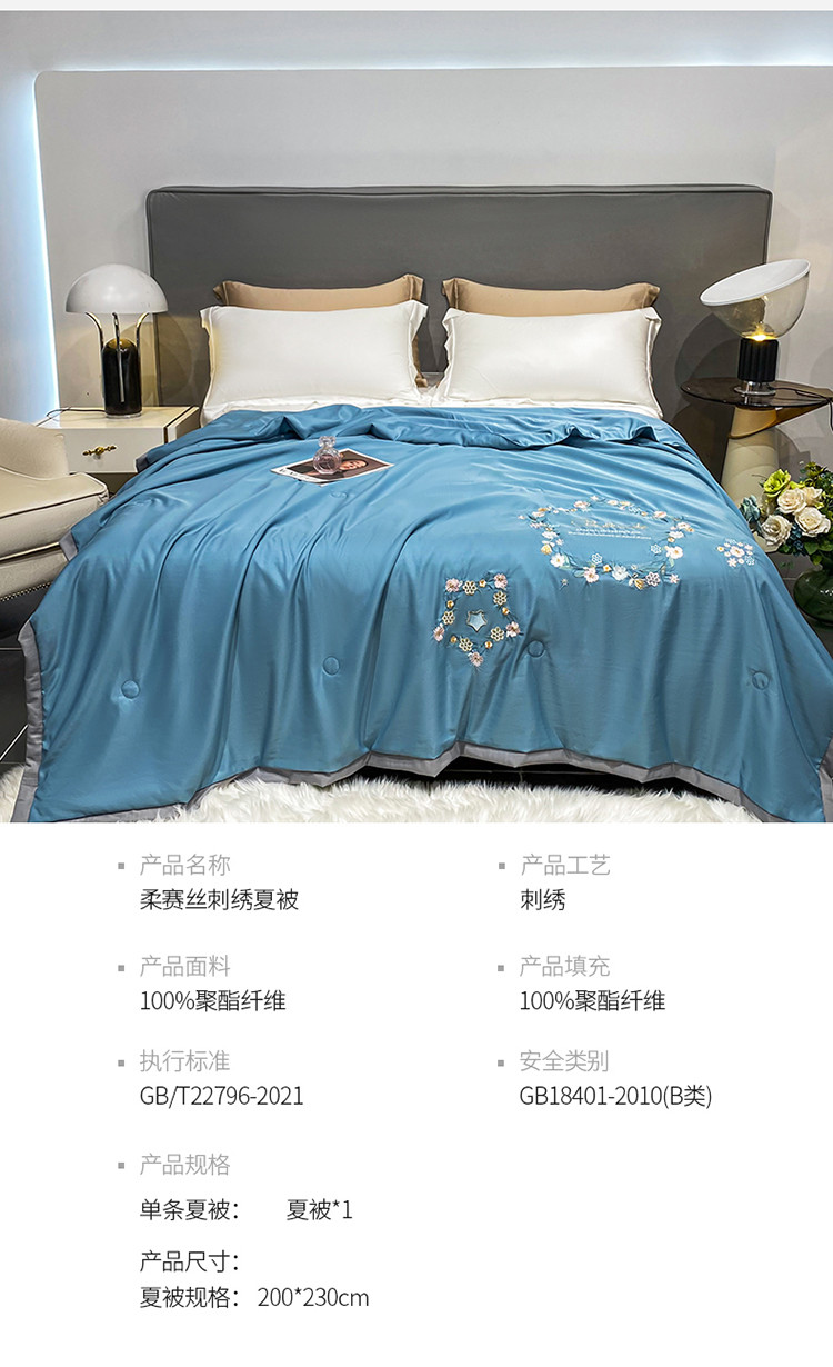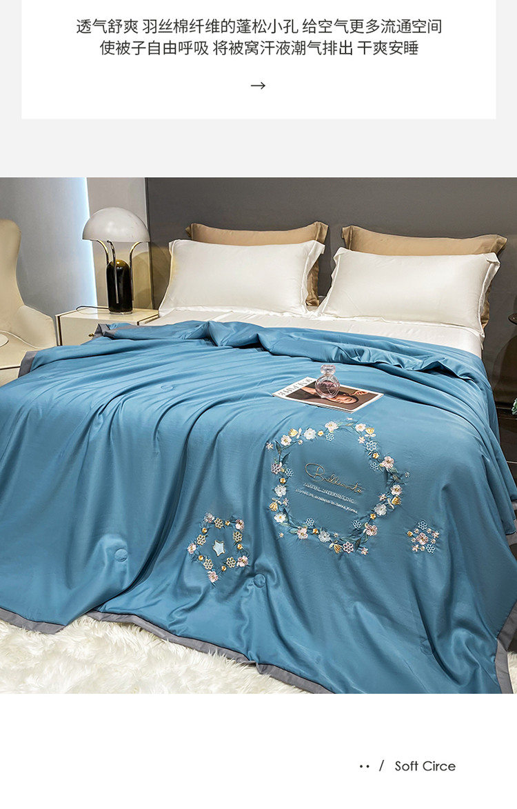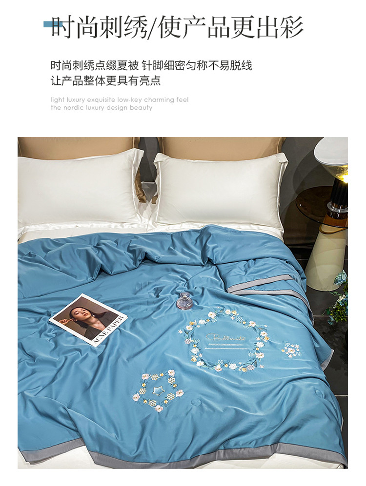 商品名称:吾秀 2022新款柔赛丝刺绣夏被-洛丽丝 洛丽丝-蓝