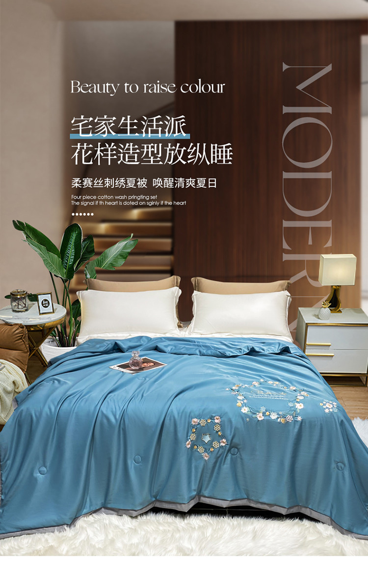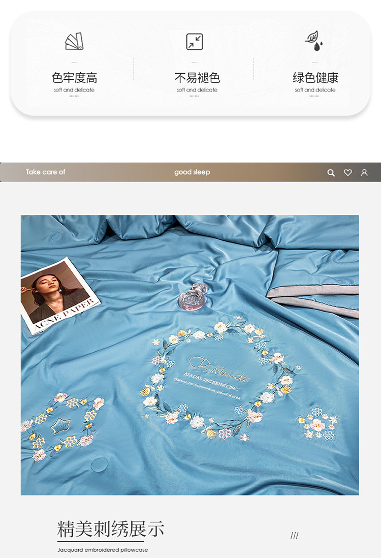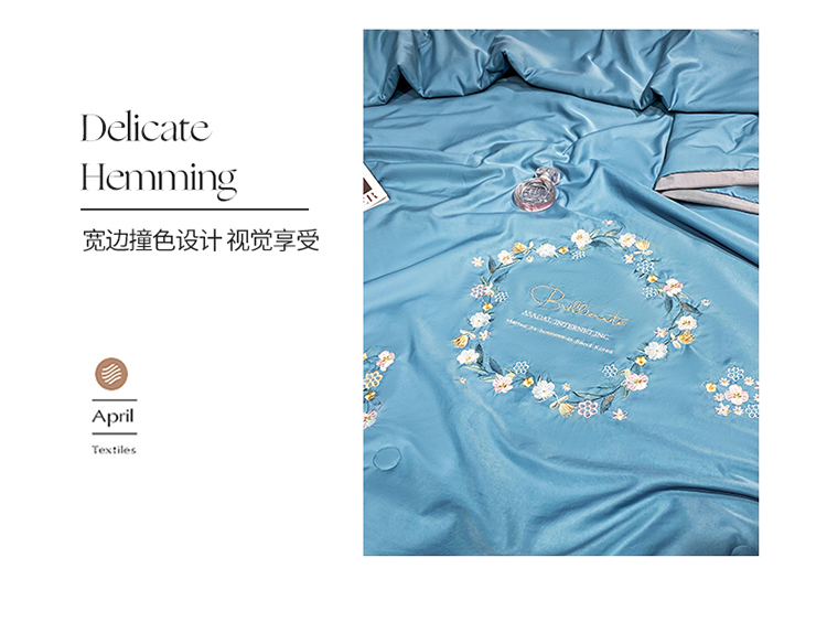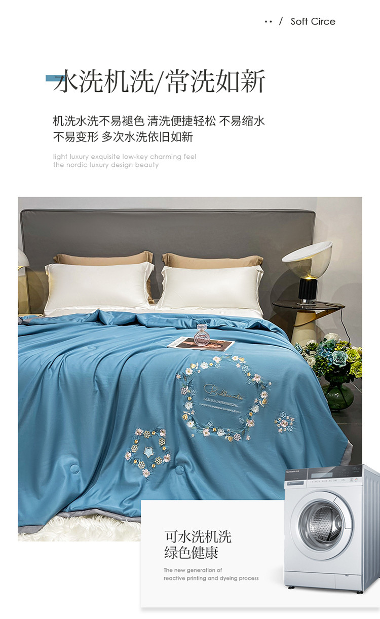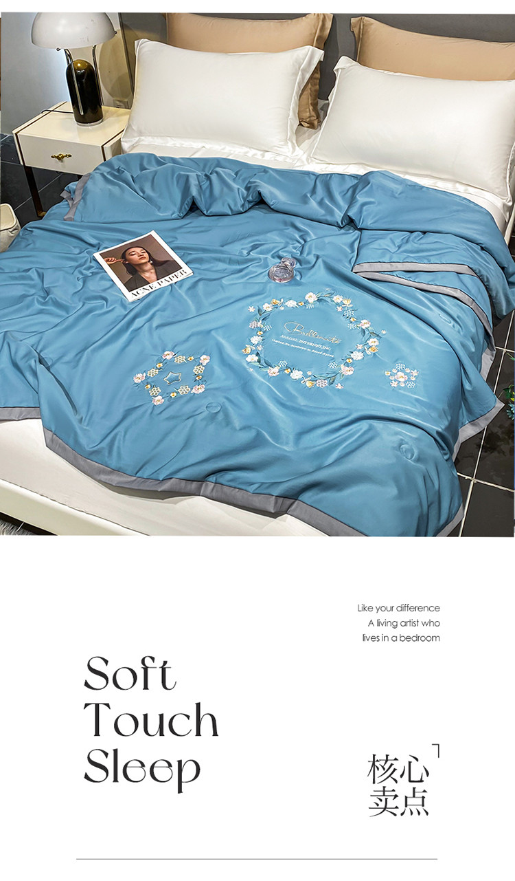 商品名称:吾秀 2022新款柔赛丝刺绣夏被-洛丽丝 洛丽丝-蓝