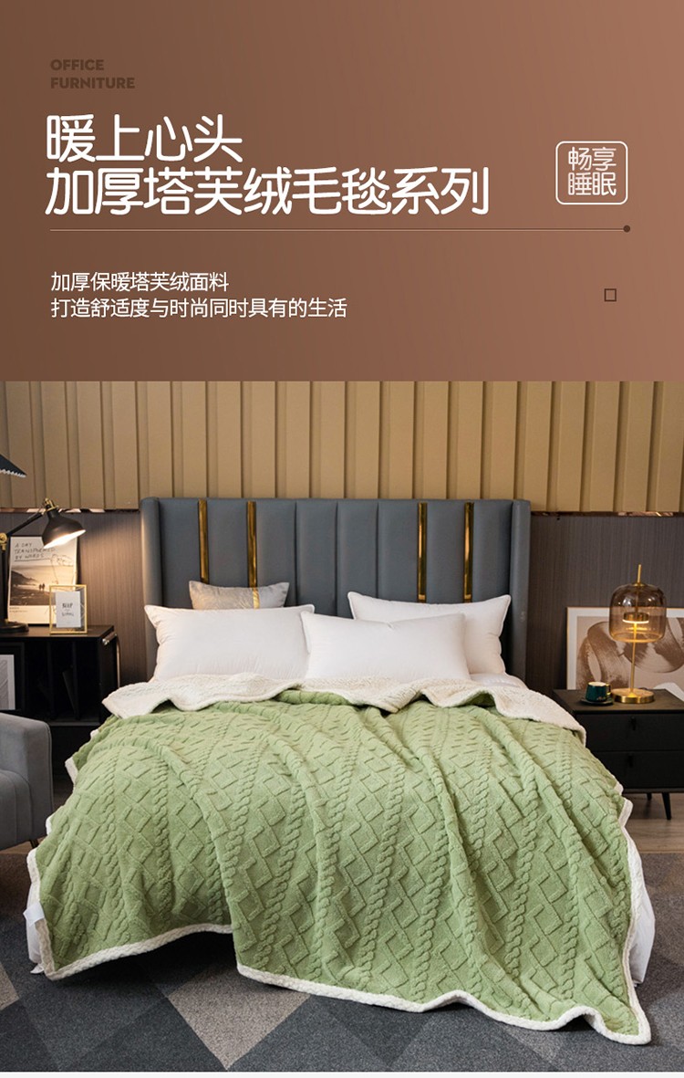 卡琪曼 2022双面塔芙绒羊羔绒毛毯办公室午睡盖毯子 绿色