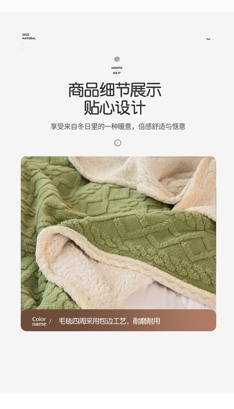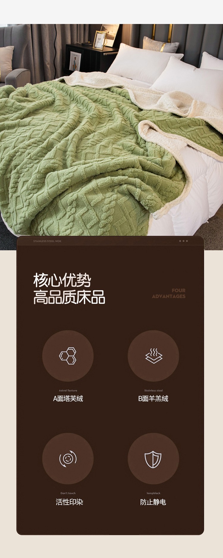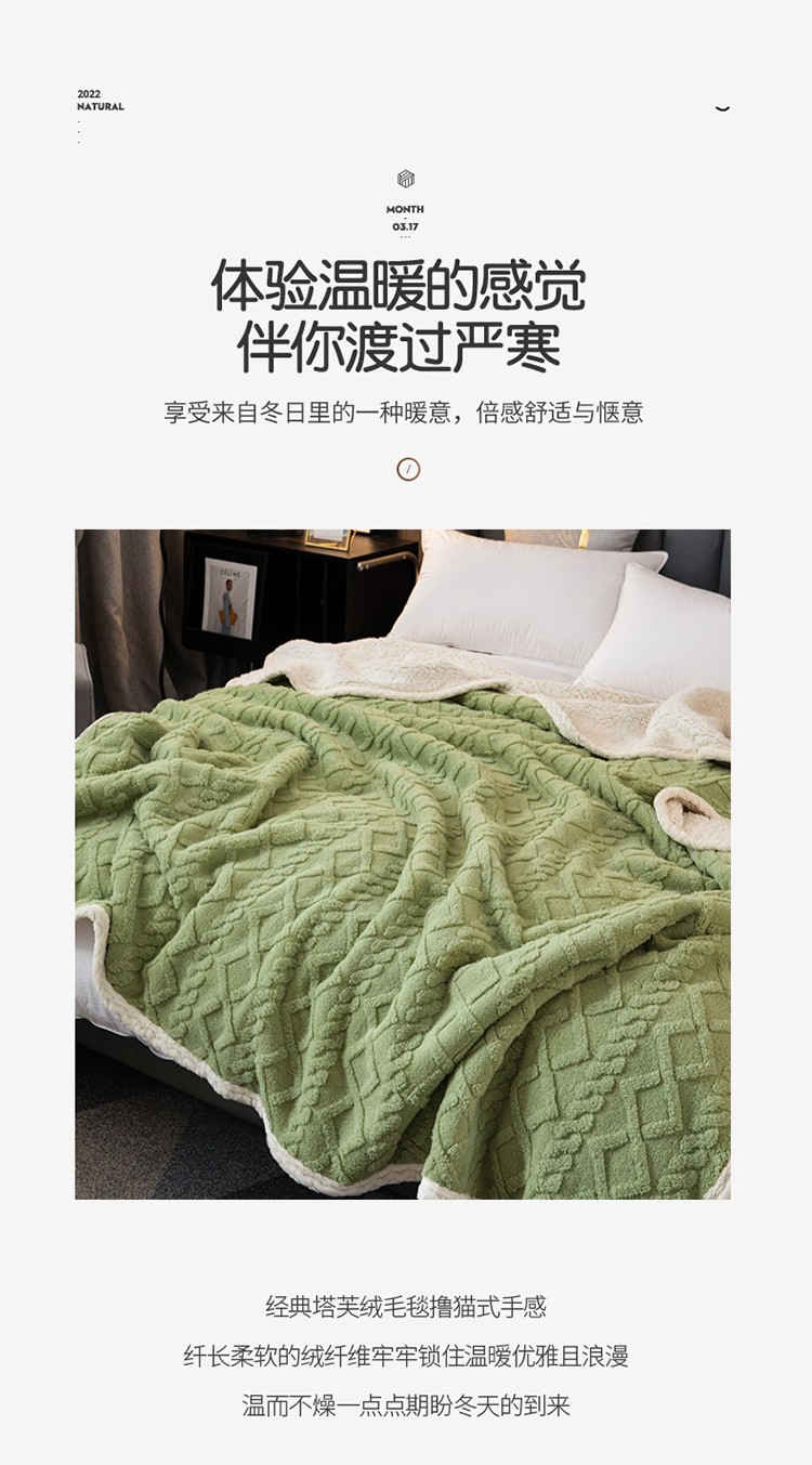 商品名称:卡琪曼 2022双面塔芙绒羊羔绒毛毯办公室午睡盖毯子 绿色