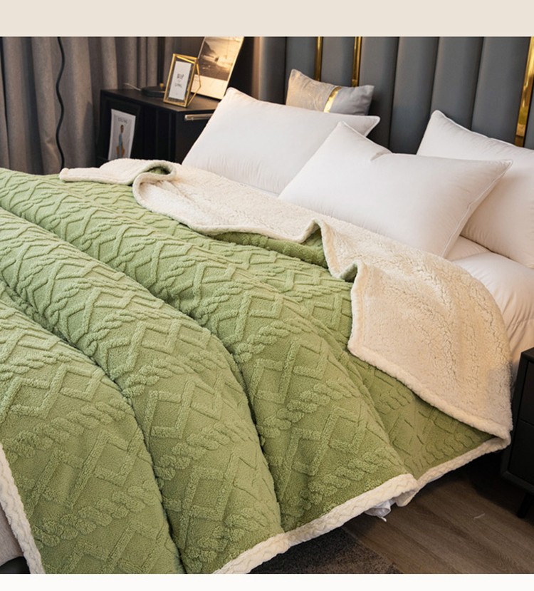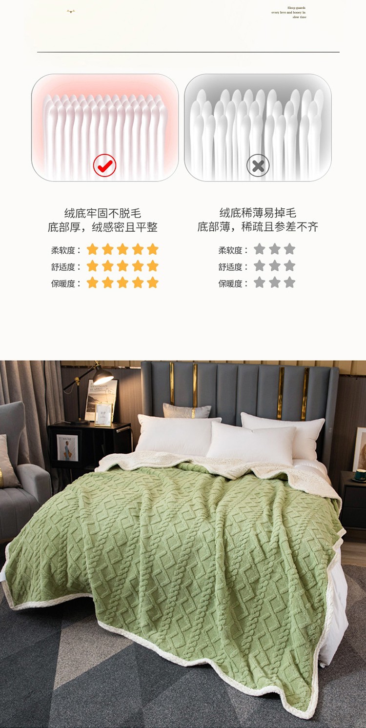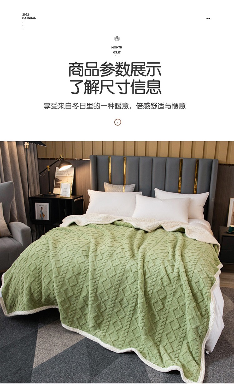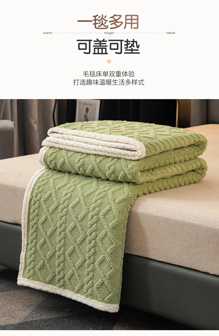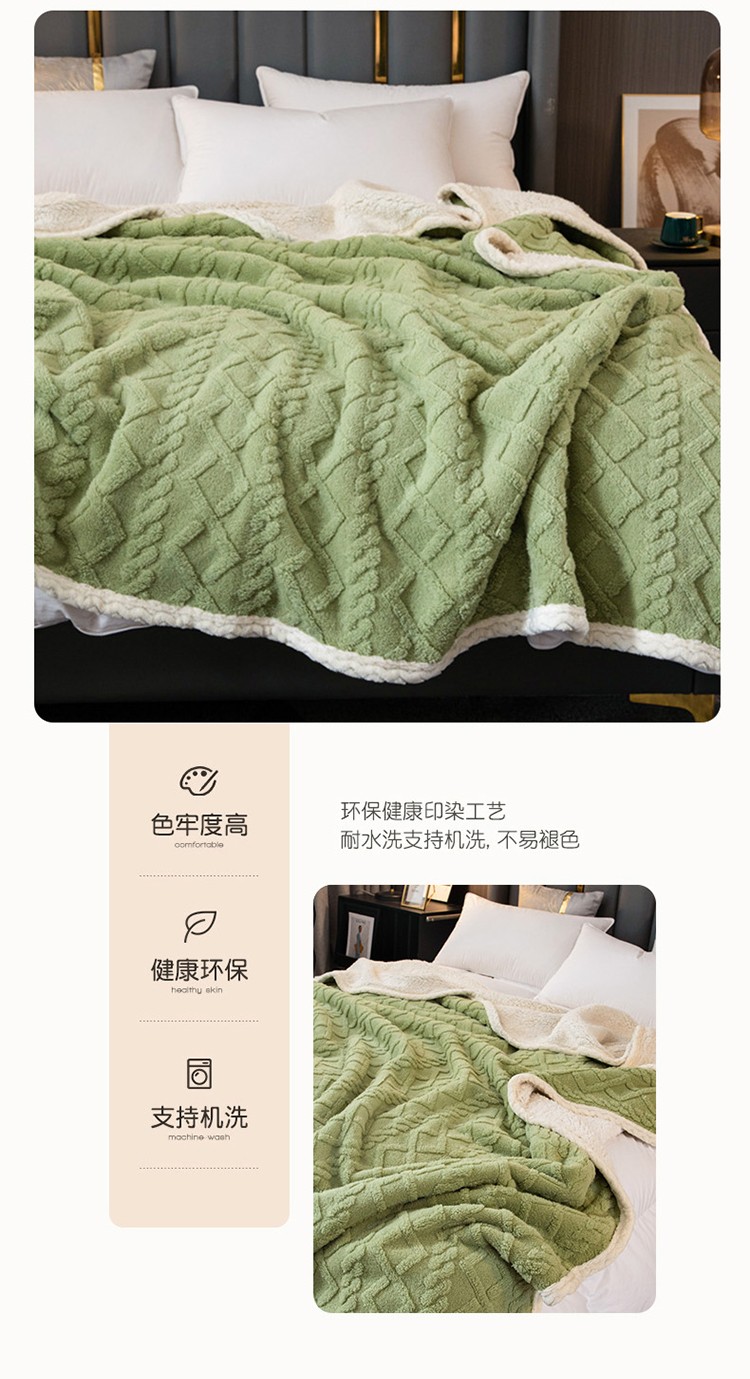 (总)卡琪曼 2025新款阳离子提花羊羔绒毛毯盖毯毯子,军绿,粉色,米白,浅灰,浅紫色,深灰,驼色,雾蓝
