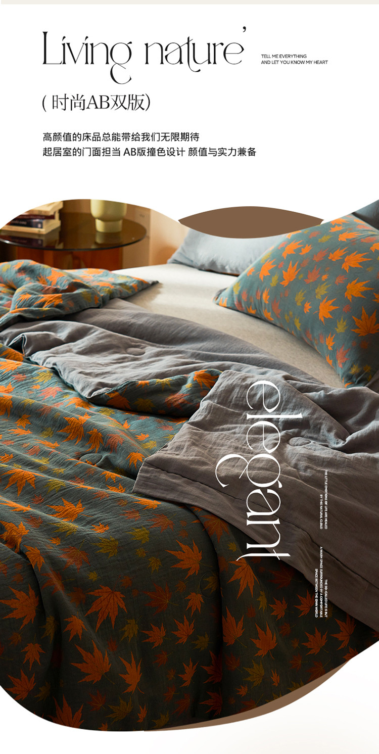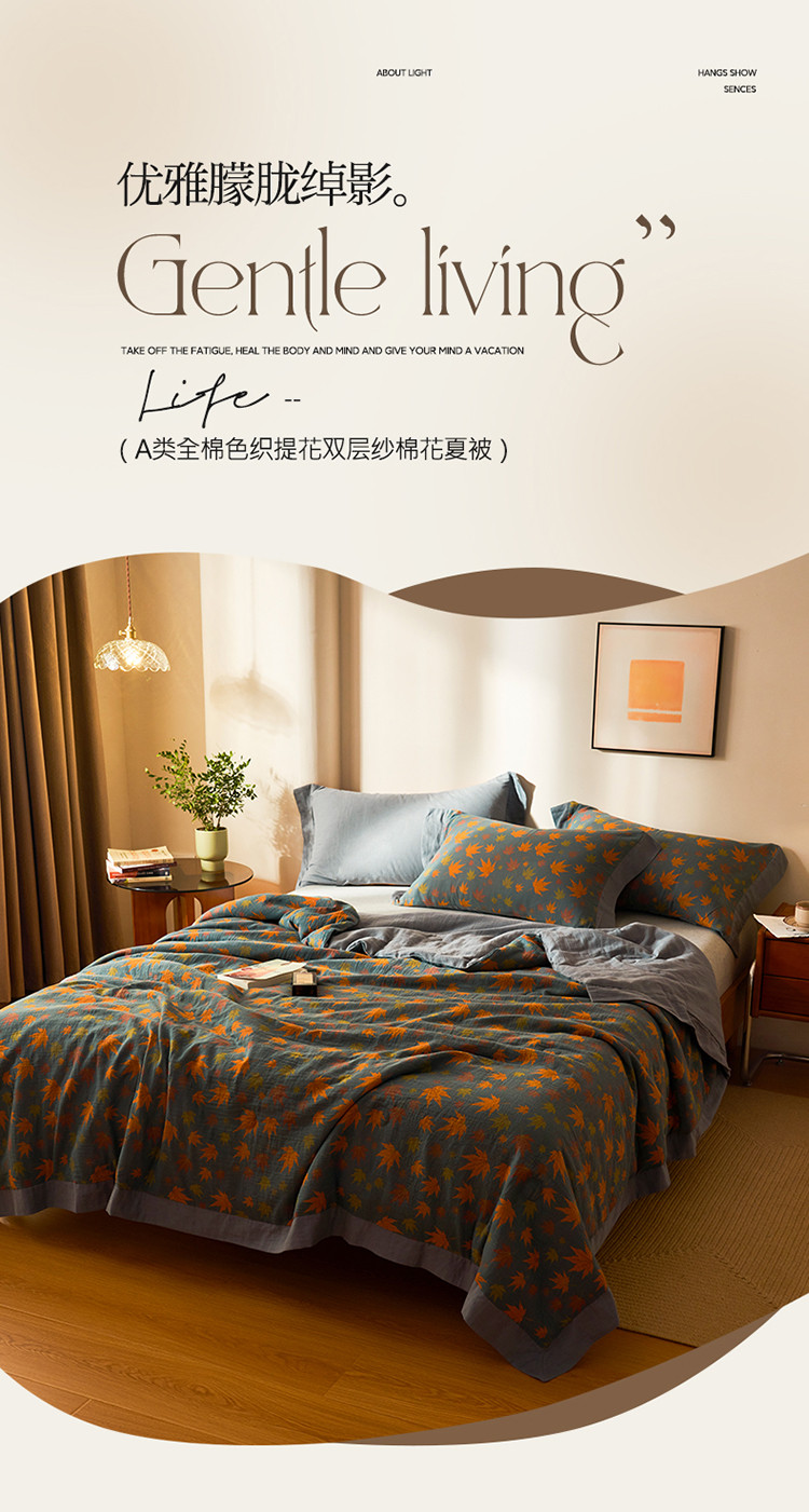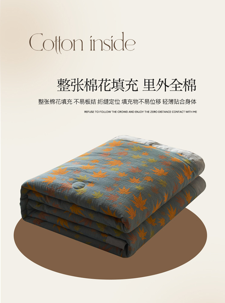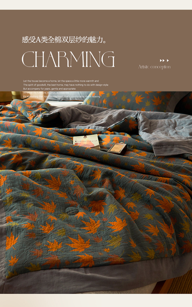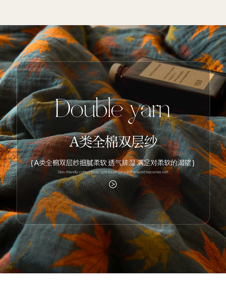 商品名称:吾秀 2023新款复古风A类全棉双层纱棉花夏被 枫叶