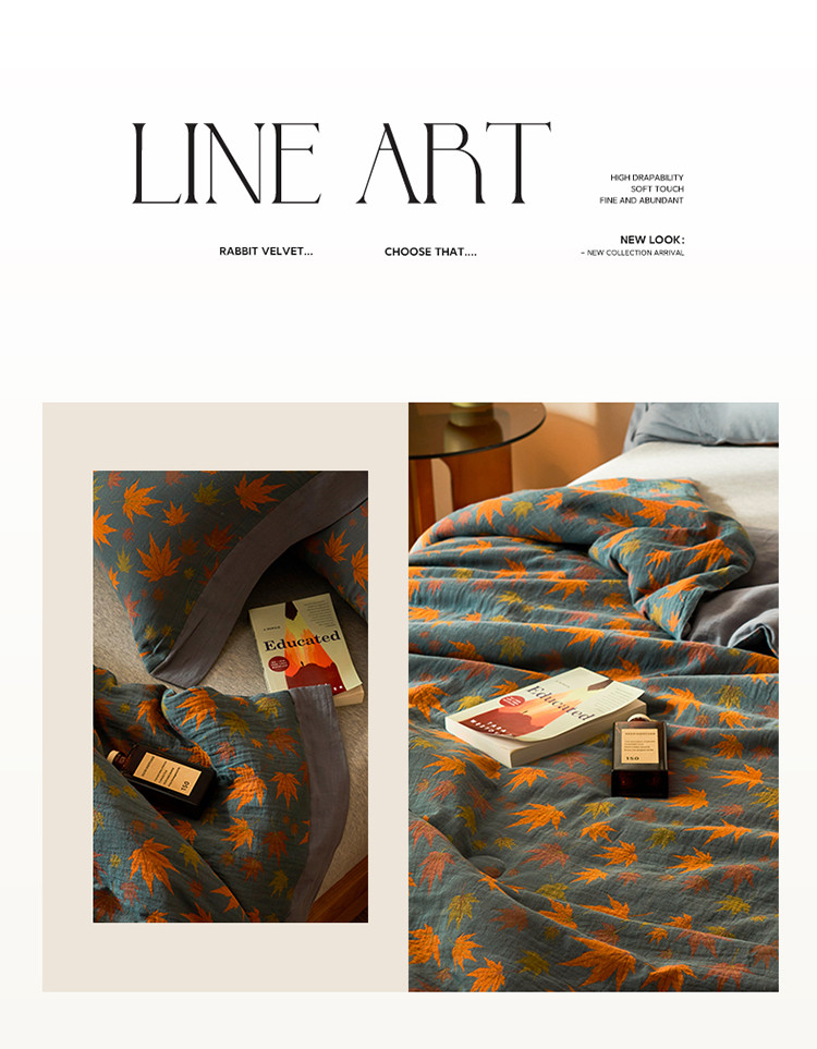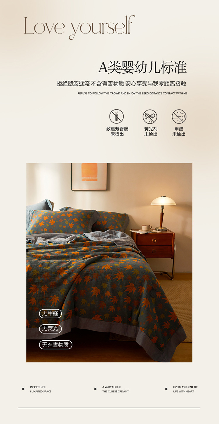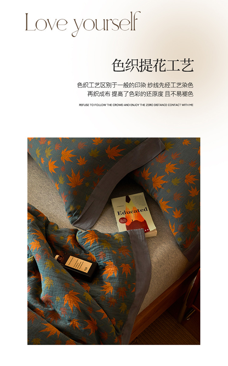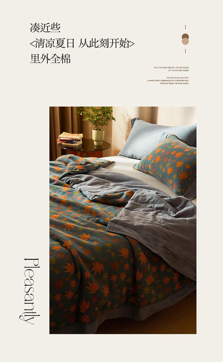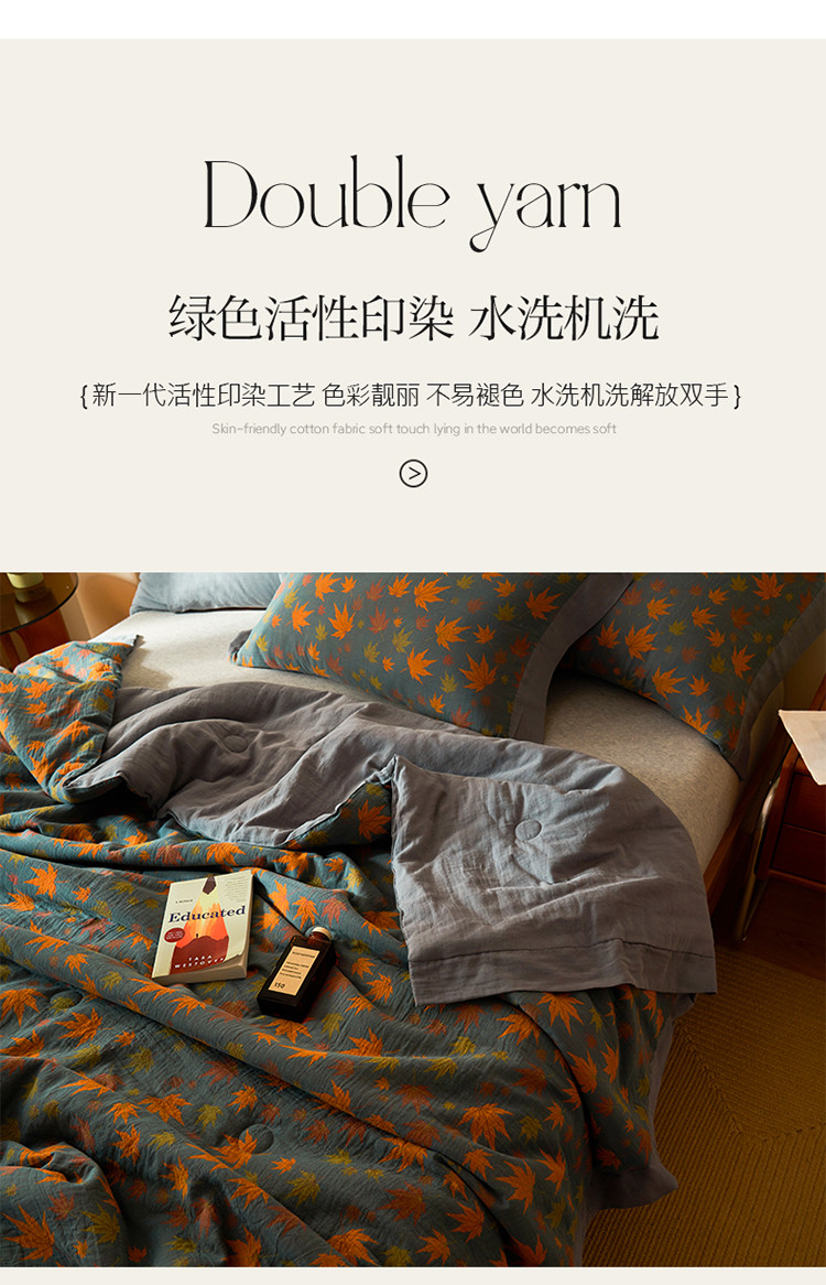 商品名称:吾秀 2023新款复古风A类全棉双层纱棉花夏被 枫叶