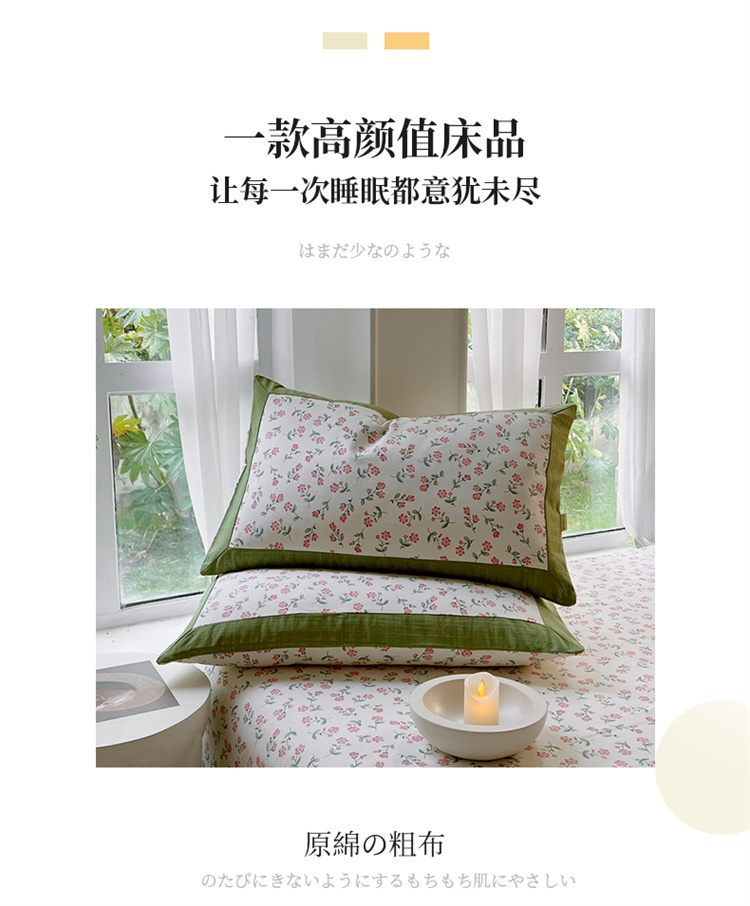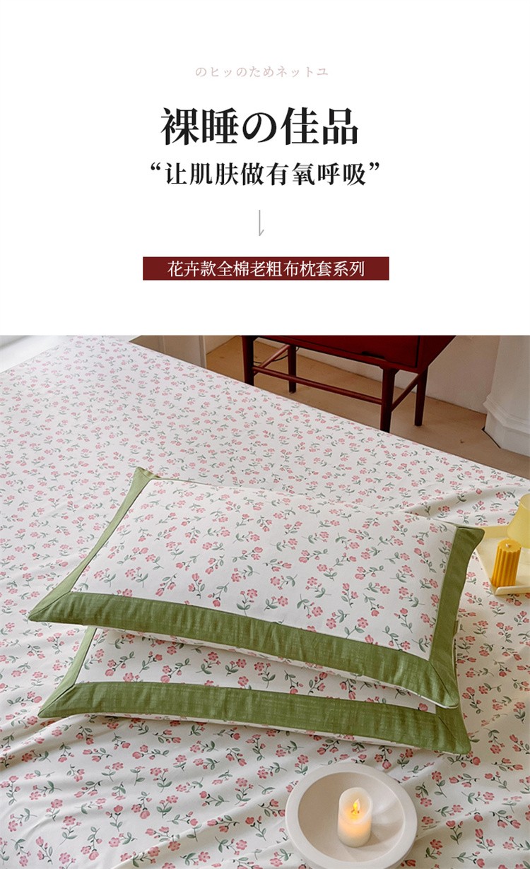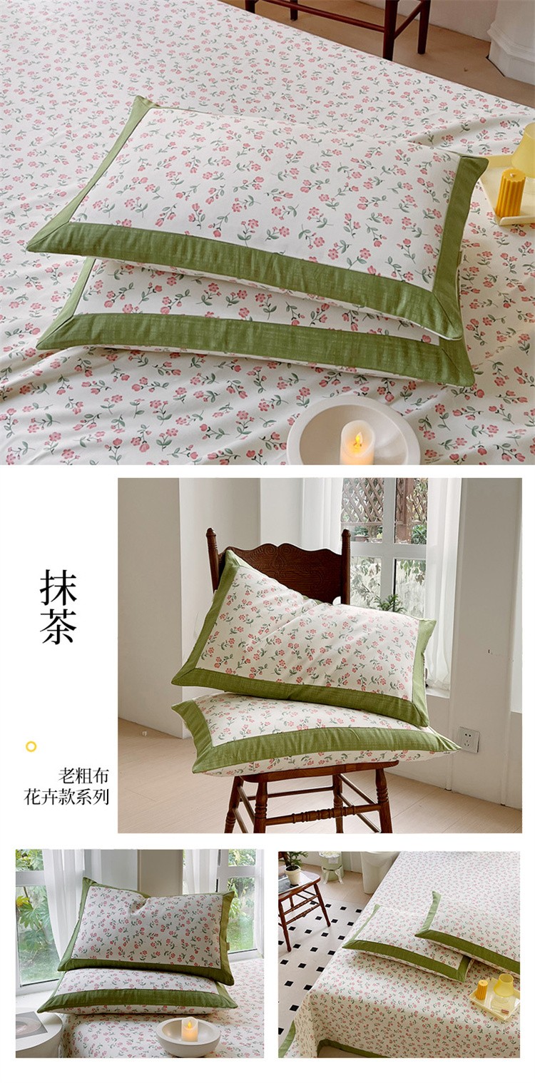 商品名称:春皖家纺 2023新款花卉款老粗布单品枕套系列 抹茶