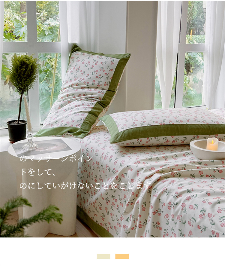 春皖家纺 2023新款花卉款老粗布单品枕套系列 抹茶