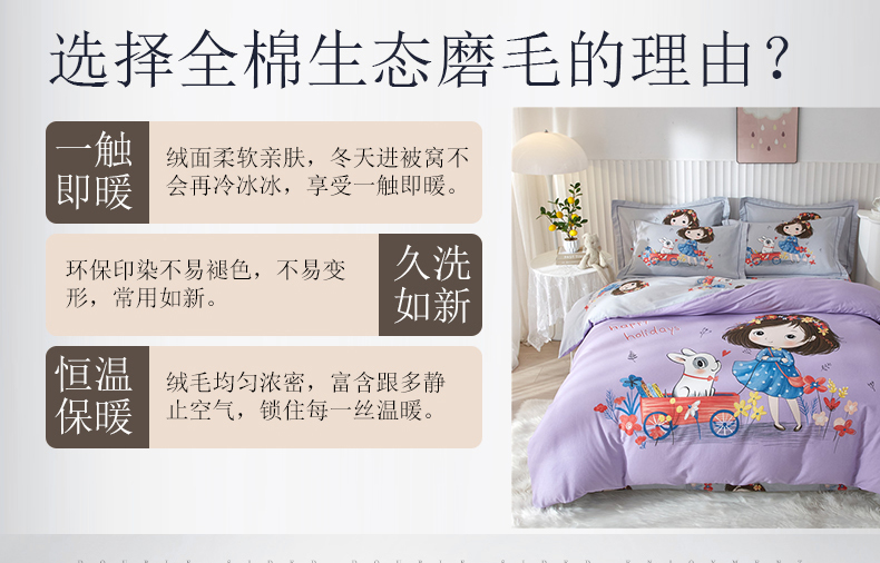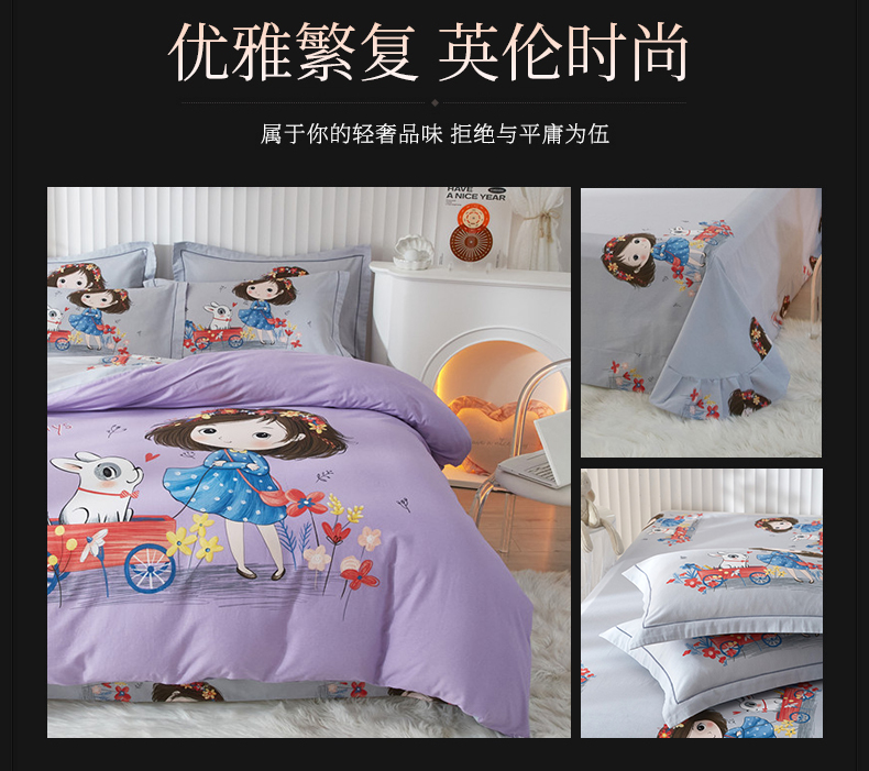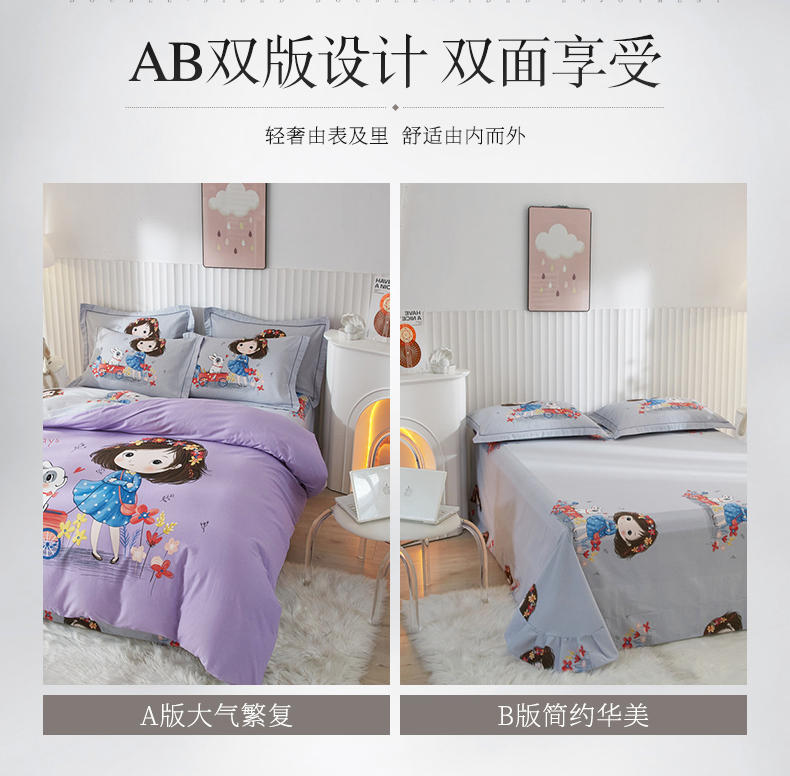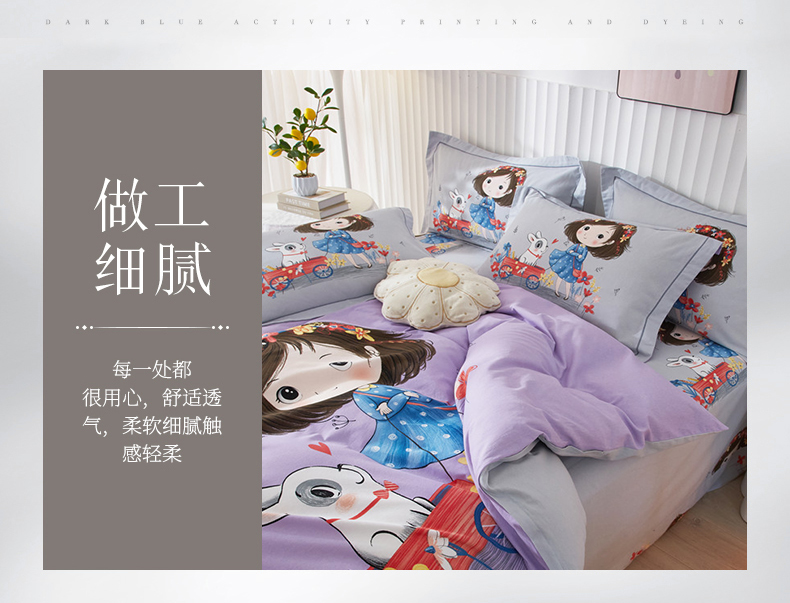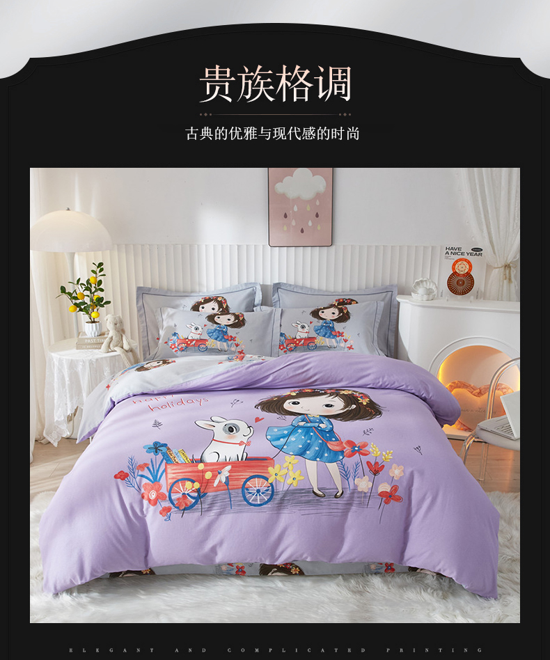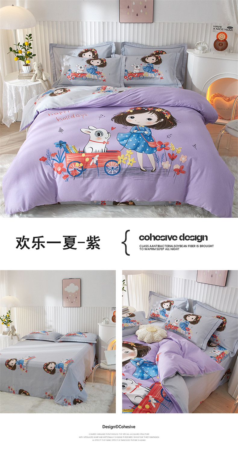 当前位置: 91家纺网 > 商品网购 > 床品套件 > 四件套 > 全棉普通四件套 > 沐白家居 2023全棉大版生态磨毛四件套 欢乐一夏-紫