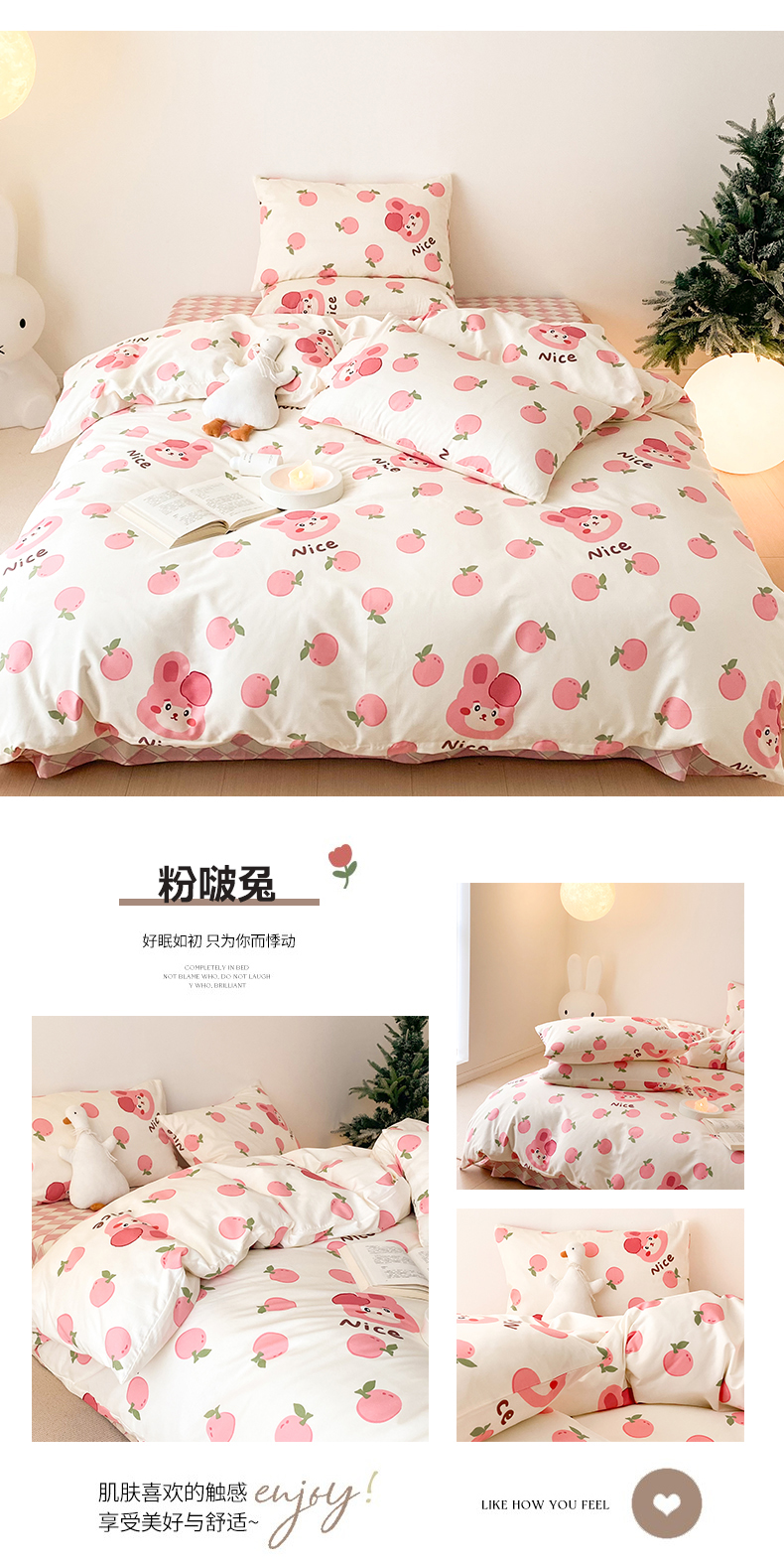 当前位置: 91家纺网 > 商品网购 > 床品套件 > 四件套 > 全棉普通四件套 > 川悦生活 2024爆款13372全棉卡通小清新四件套三件套 粉啵兔