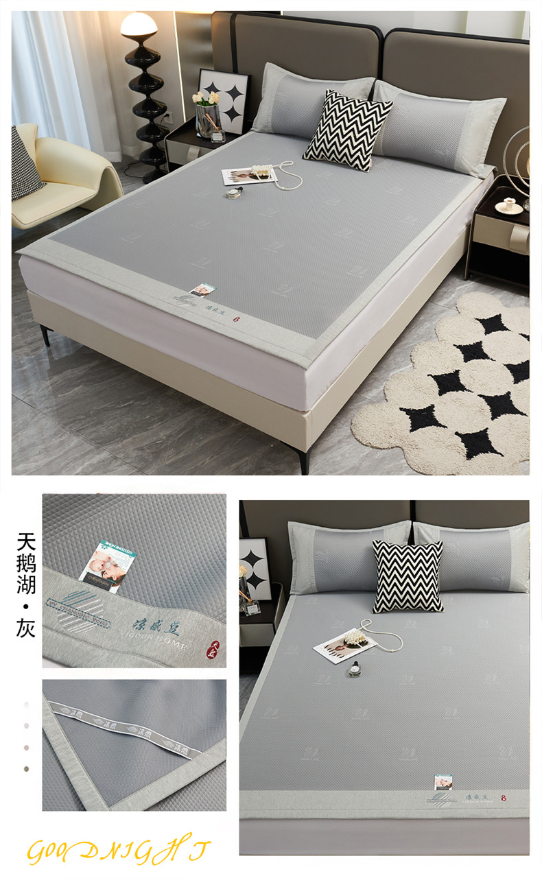 商品名称:青雅席业 2025新款A类母婴级刺绣冰豆豆凉席 天鹅湖-灰