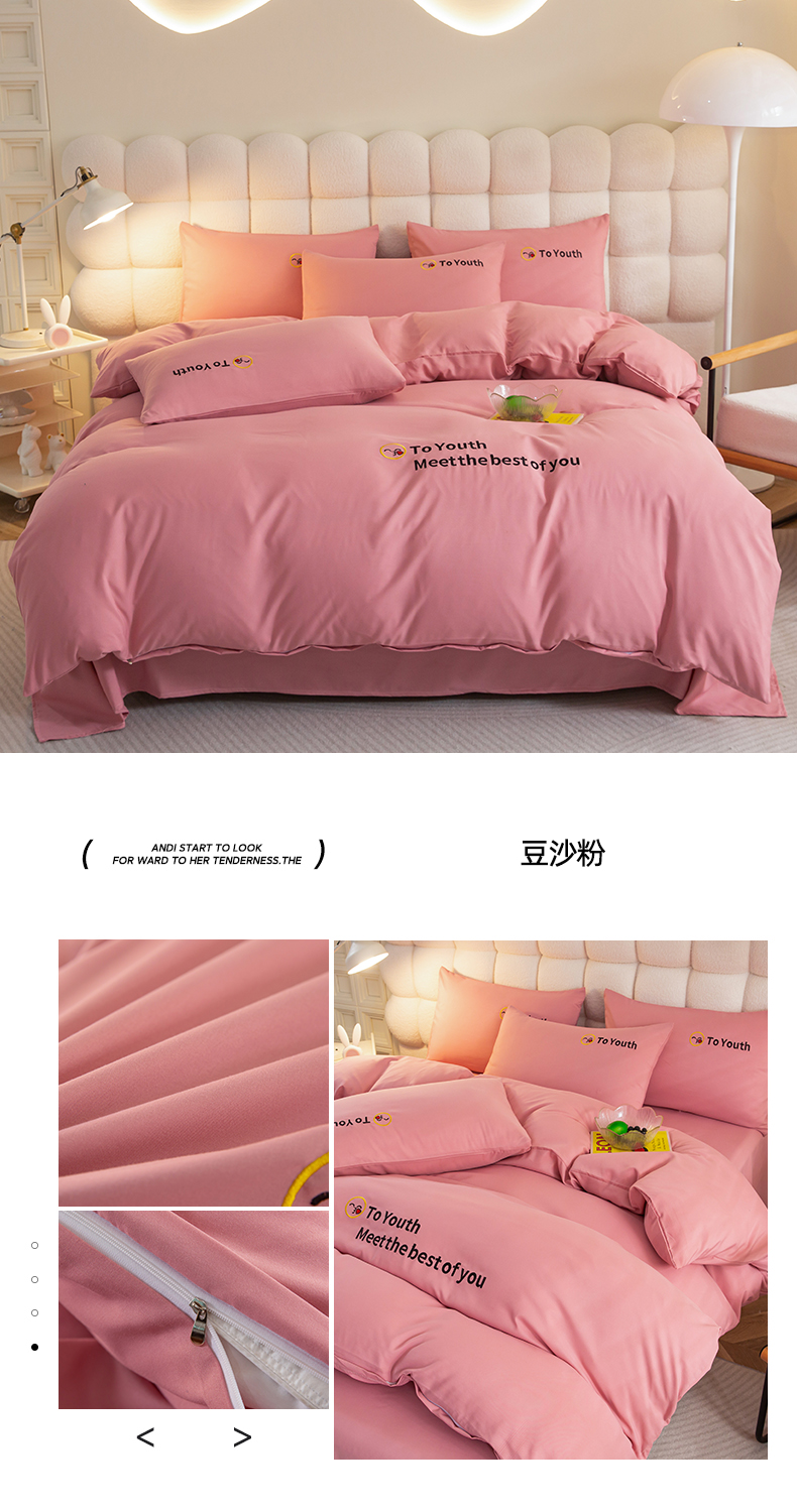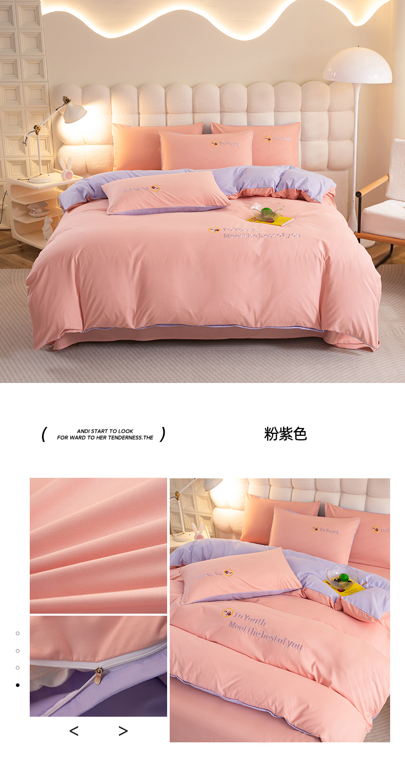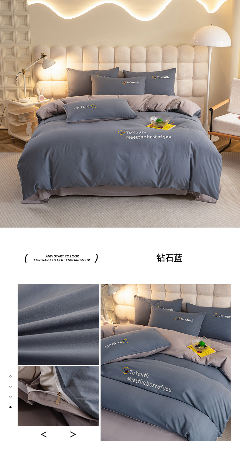 (总)梦恬佳 2024新款水洗磨毛四件套,天空蓝,海棠橙,灰金色,米黄,粉紫色,豆沙粉,钻石蓝