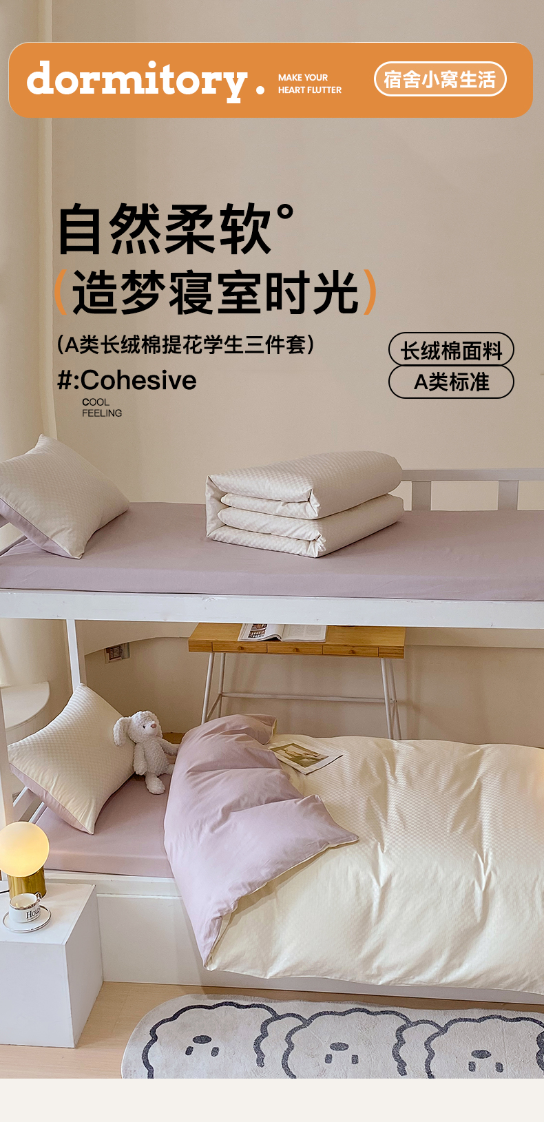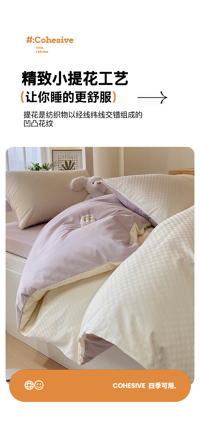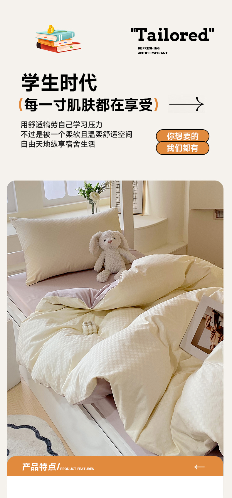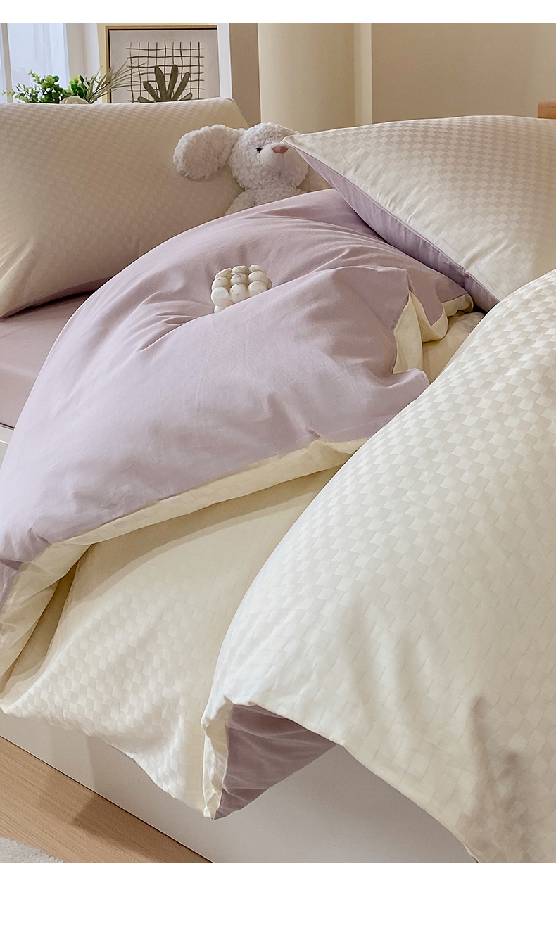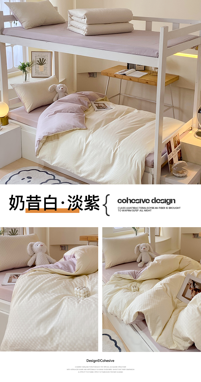 当前位置: 91家纺网 > 商品网购 > 床品套件 > 四件套 > 其它四件套 > 金鑫汇家纺 2024新款A类长绒棉提花学生套件 奶昔白+淡紫