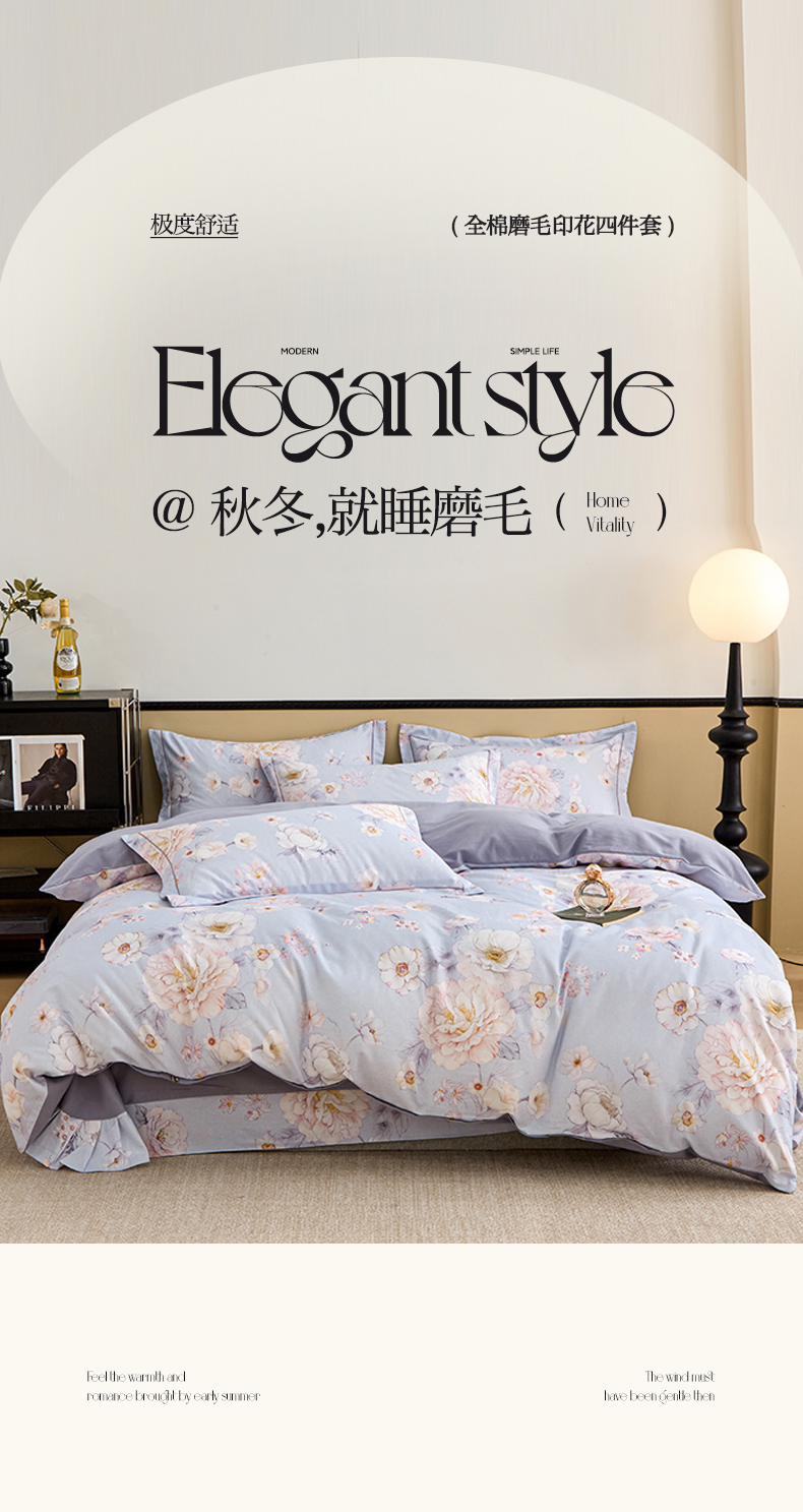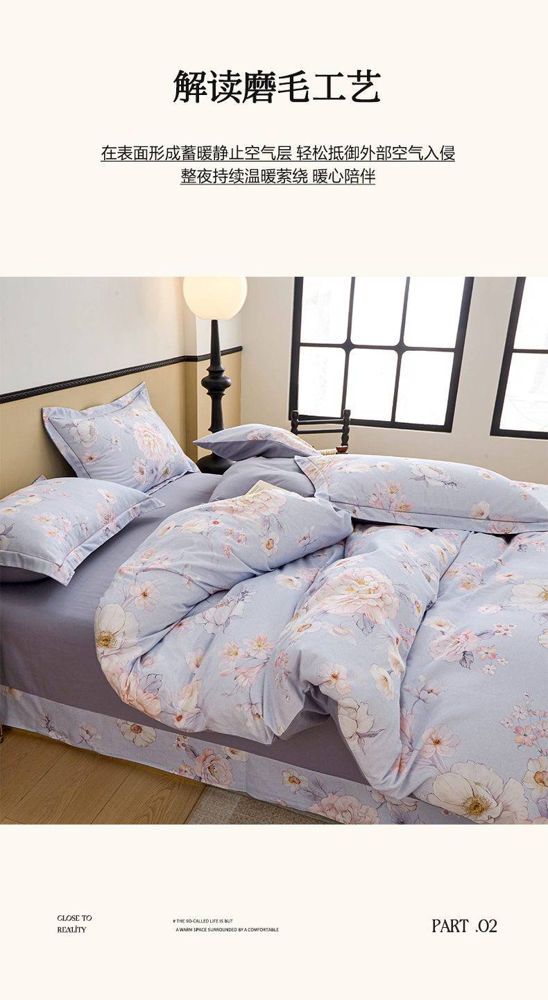 当前位置: 91家纺网 > 商品网购 > 床品套件 > 四件套 > 磨毛活性四件套 > 橙艺家居 2024新款全棉超柔生态磨毛四件套全棉四件套纯棉四件套 回眸一笑-蓝