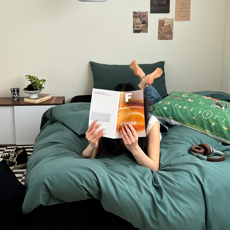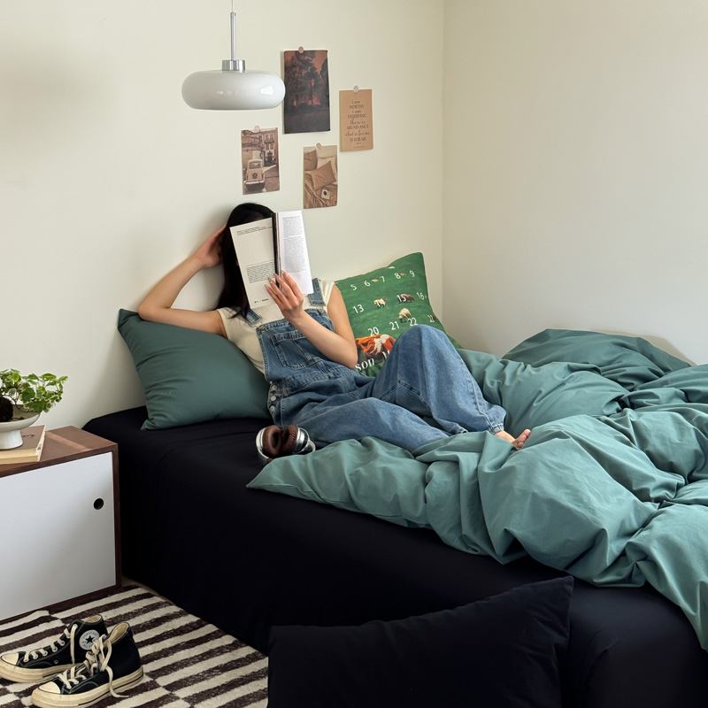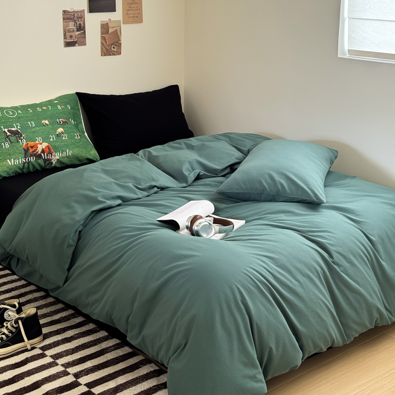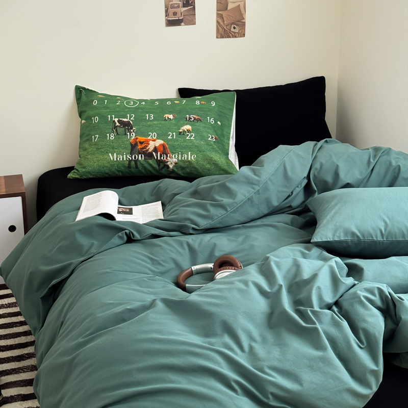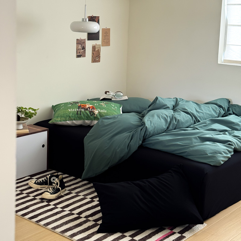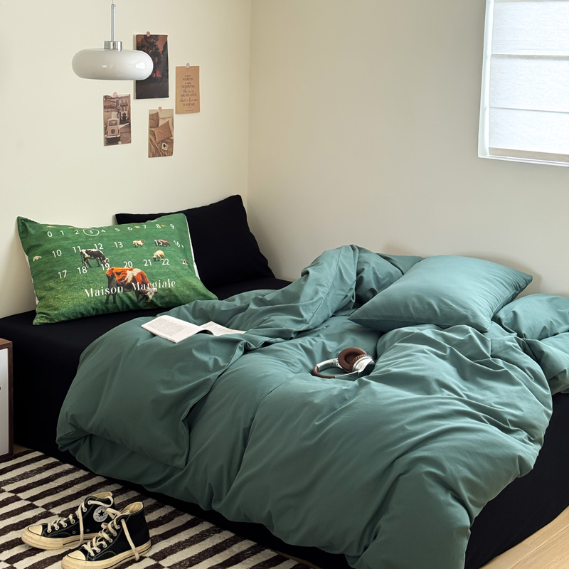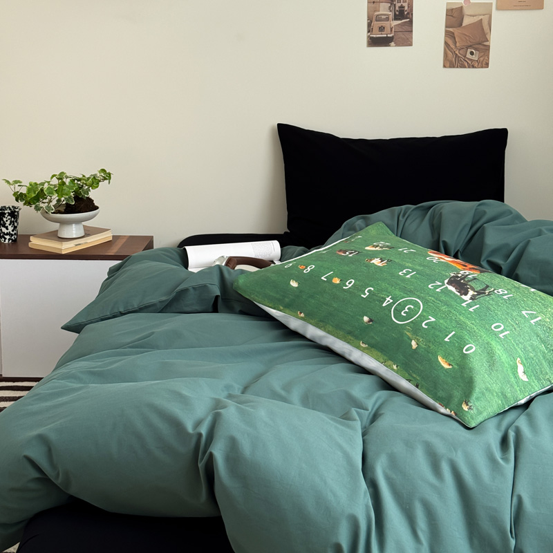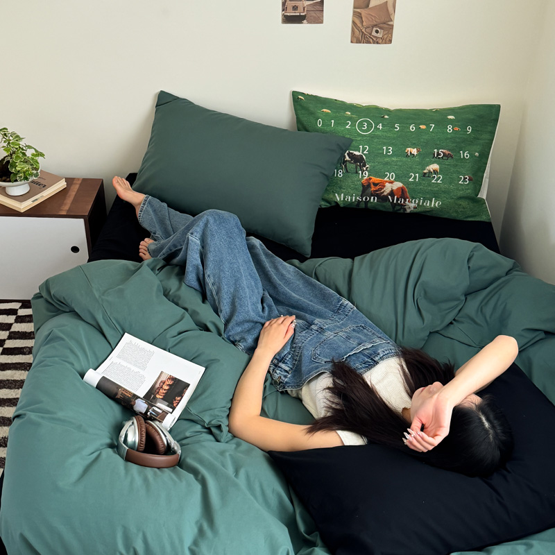 当前位置: 91家纺网 > 商品网购 > 床品套件 > 四件套 > 全棉普通四件套 > 艾沁家纺 2024新款简约风全棉色织水洗棉混搭四件套 墨绿+黑(黑色枕+印花枕)