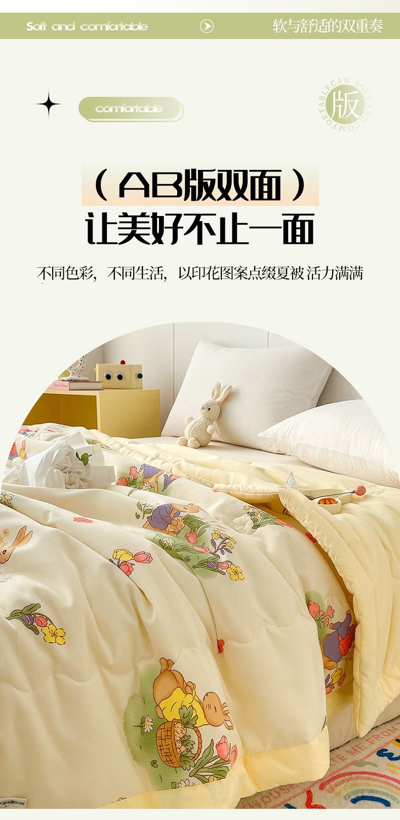 (总)爱宝被业 2025新款水洗棉麻双层纱夏凉被,甜心草莓,玫瑰庄园,花园兔,花漾,小熊嘟嘟,兰花朵朵