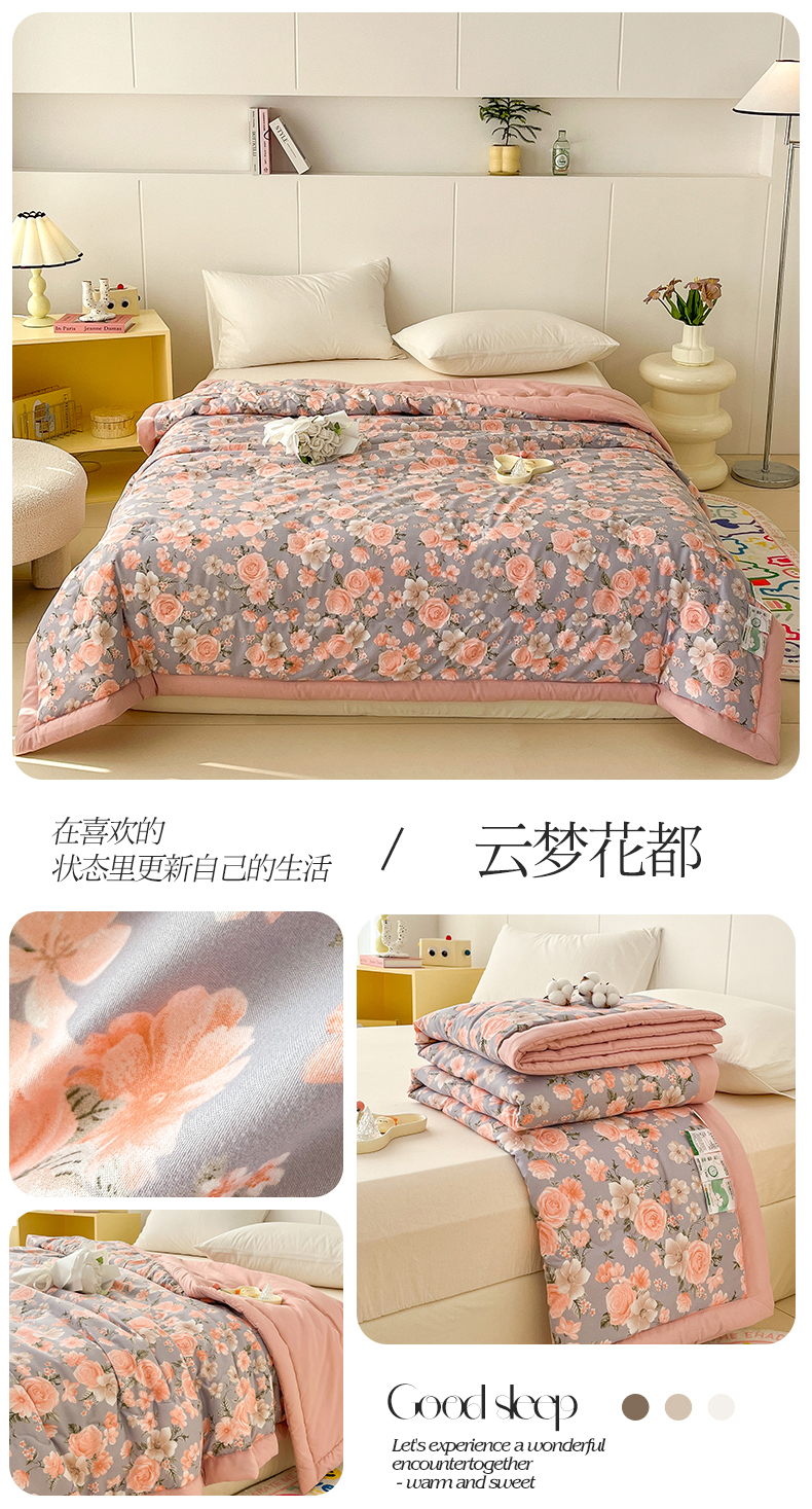 (总)爱宝被业 2025新款水洗针织棉无染被夏被被芯直播爆款,白色,粉色,绿色,浅灰