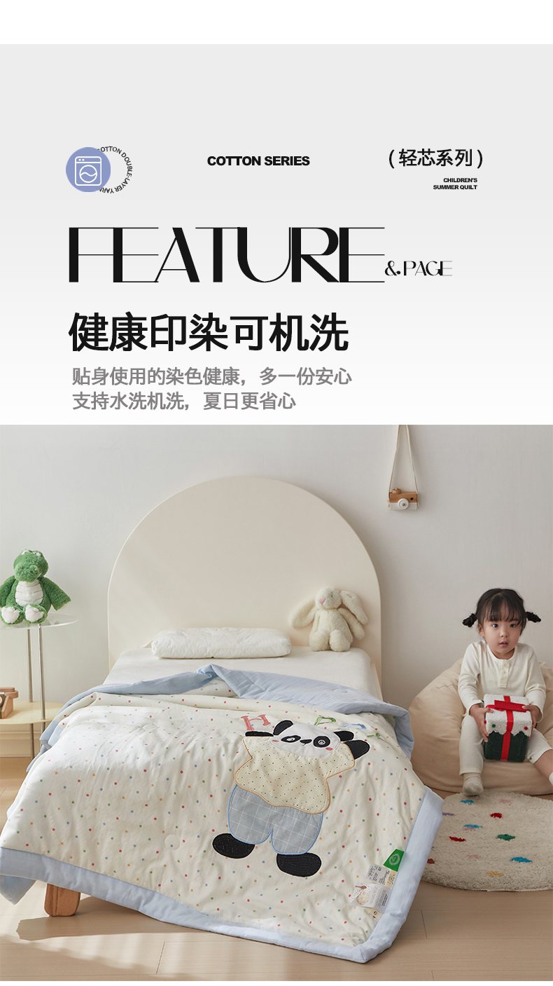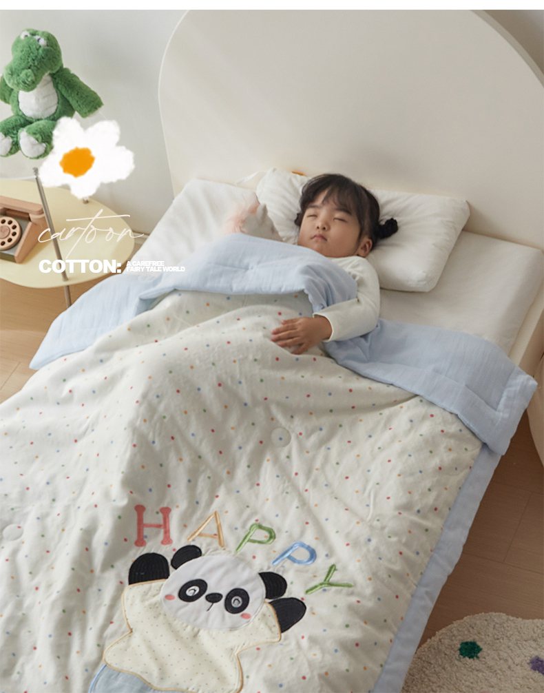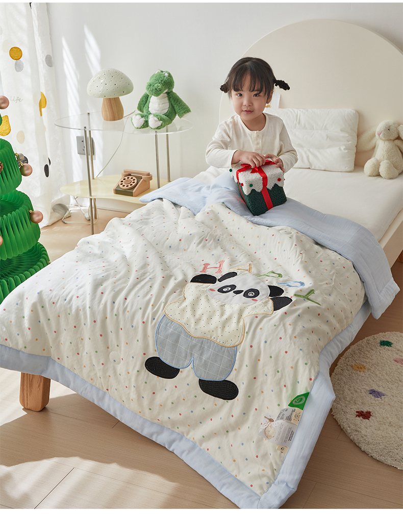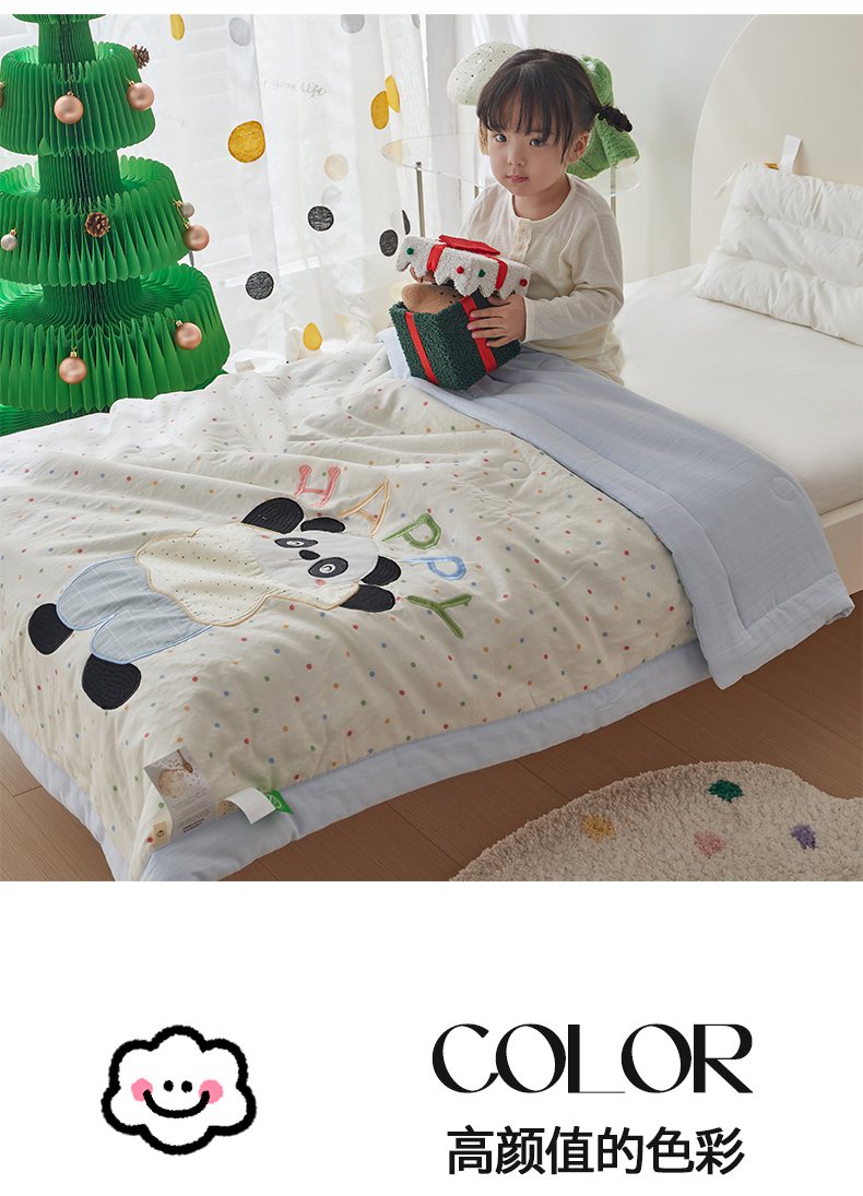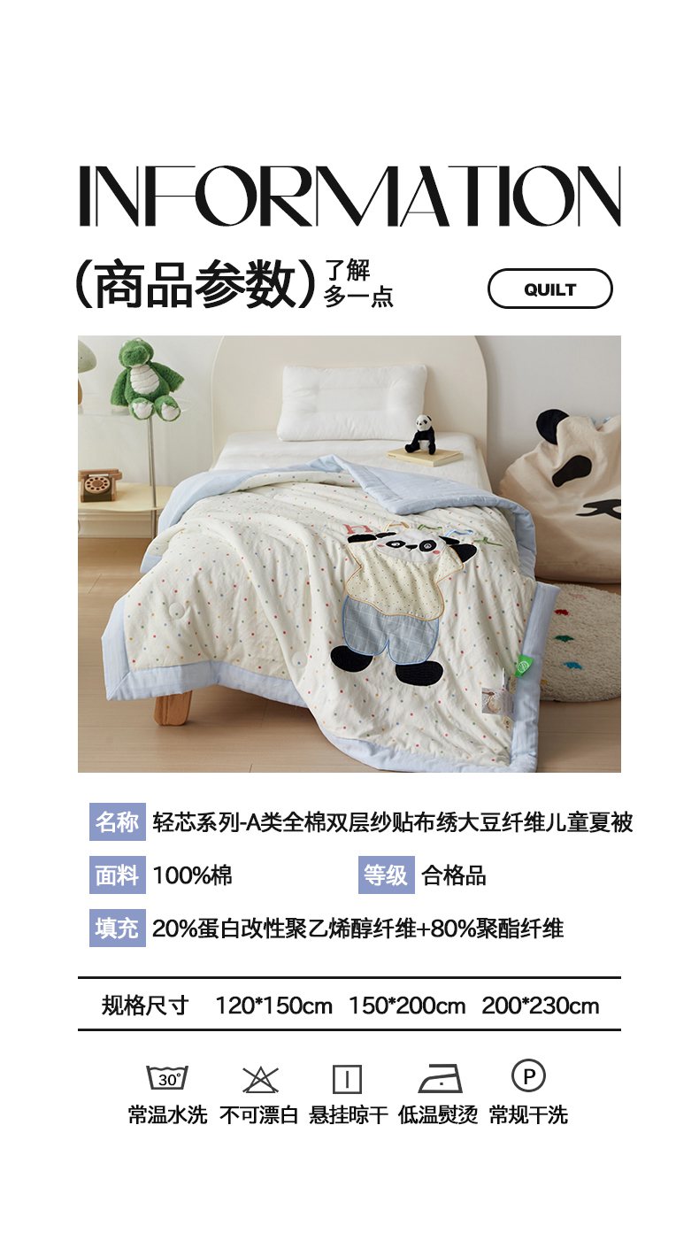 商品名称:荷马之梦 2025新款A类全棉双层纱贴布绣大豆儿童夏被轻芯系列 快乐熊猫
