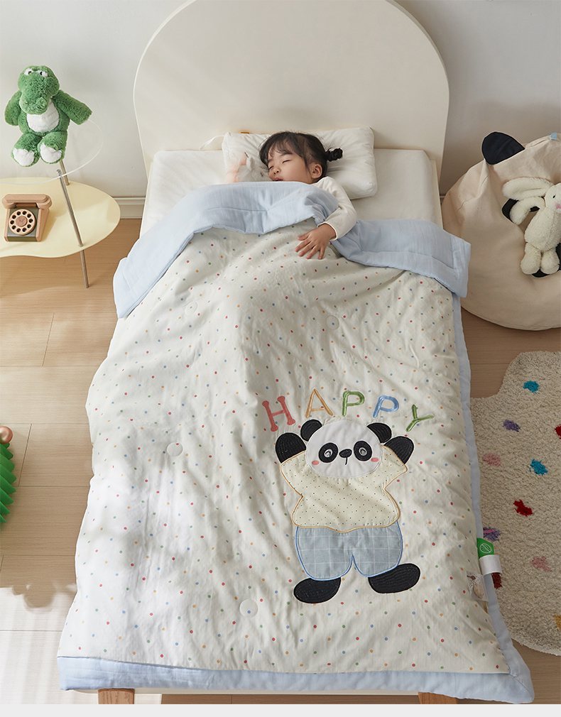 荷马之梦 2025新款A类全棉双层纱贴布绣大豆儿童夏被轻芯系列 快乐熊猫