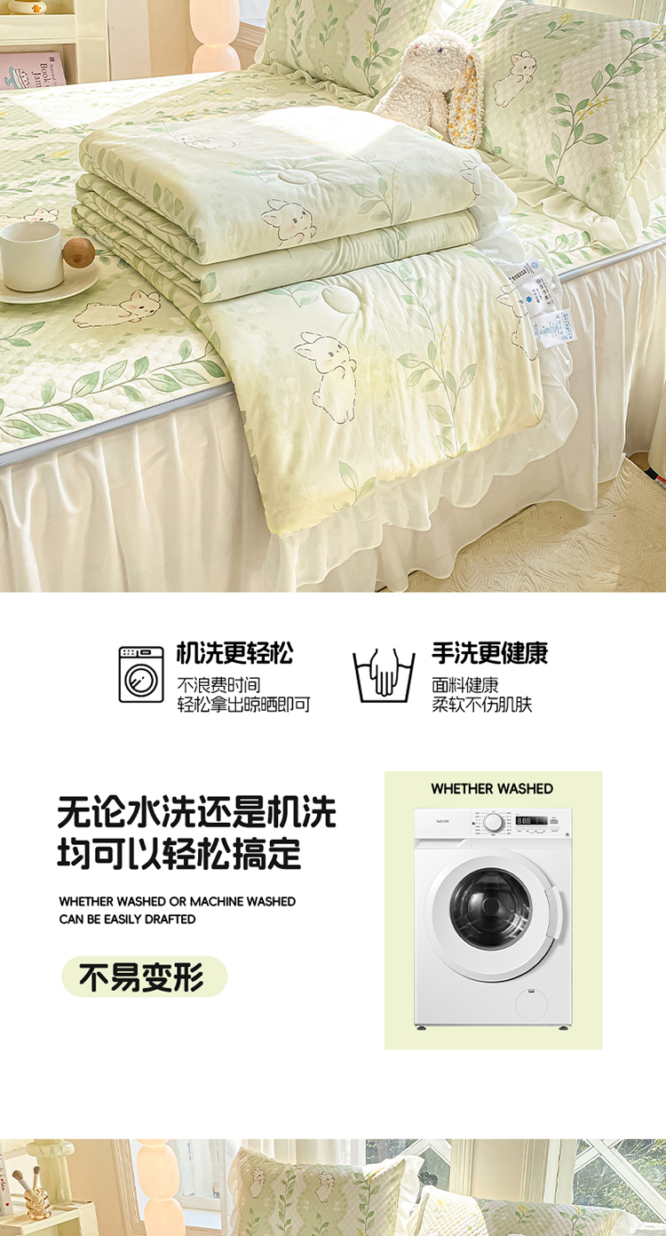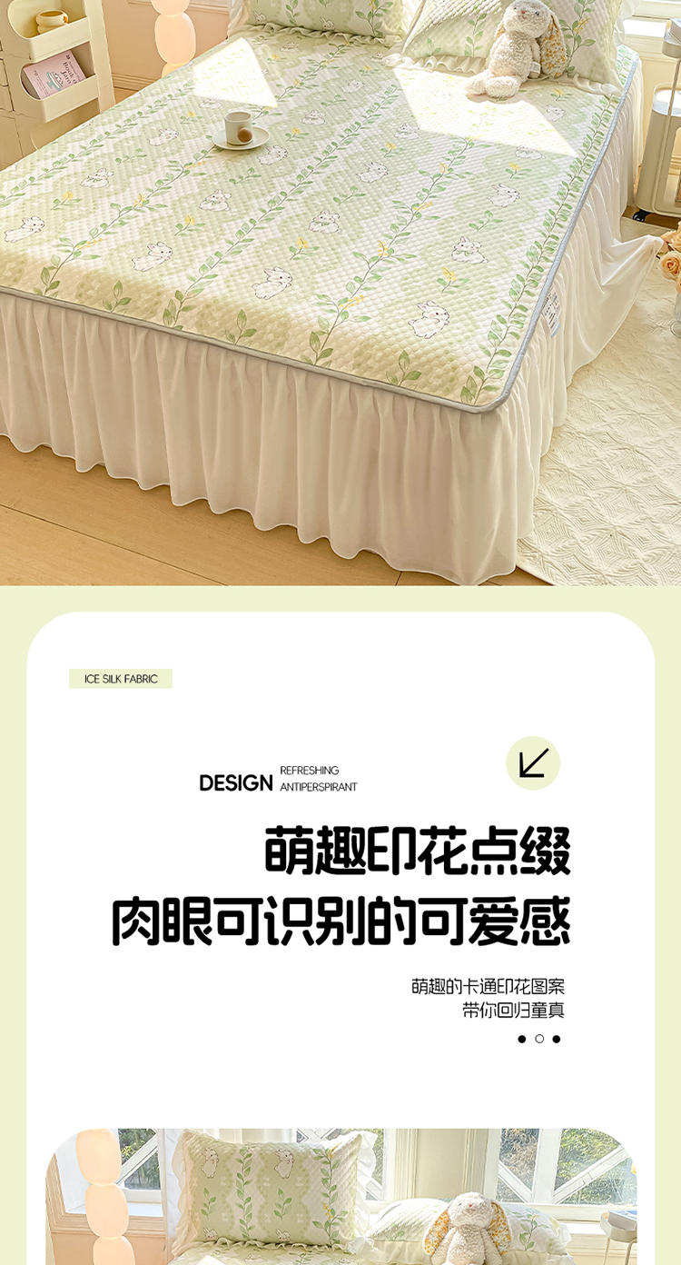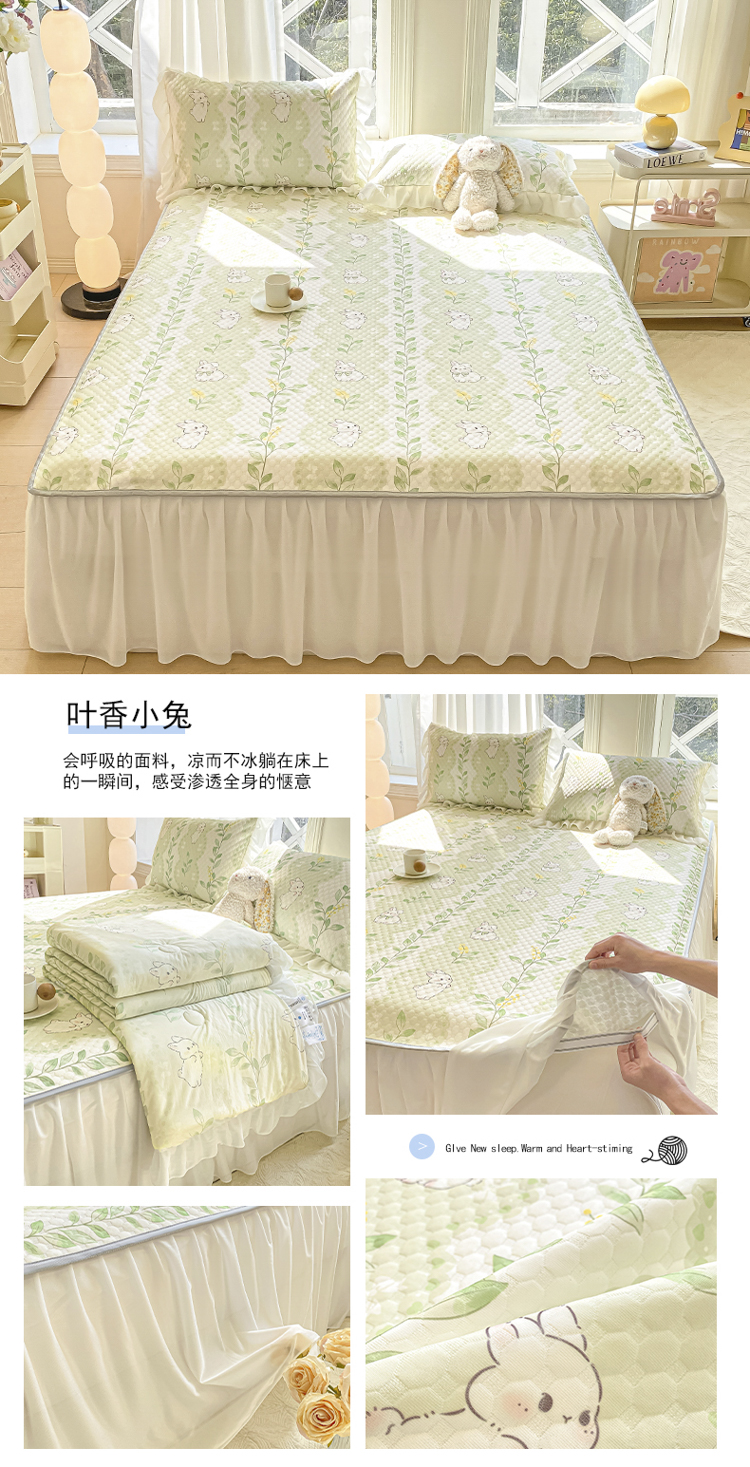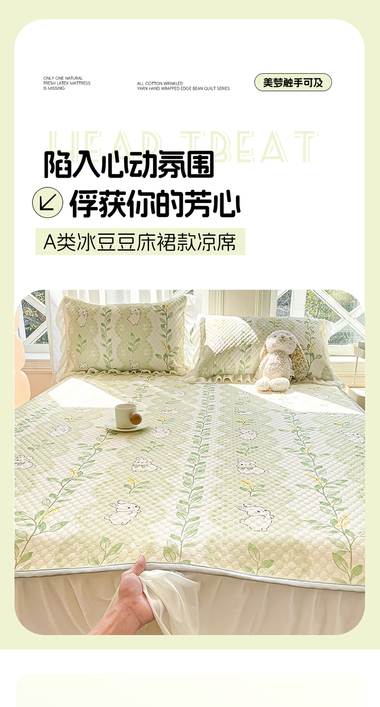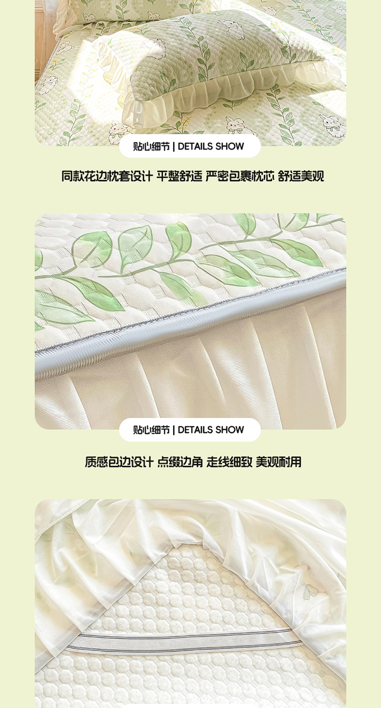 • 91家纺网 家纺一手货源 找家纺 康纳利2025新款A类冰豆豆床裙款凉席夏被四件套凉感丝空调被送买家秀 叶香小兔