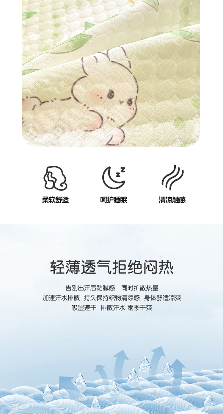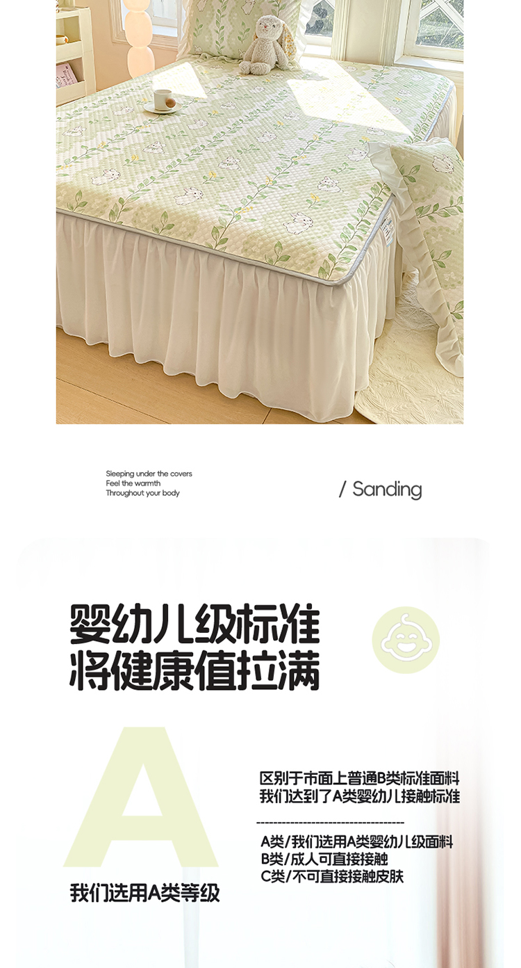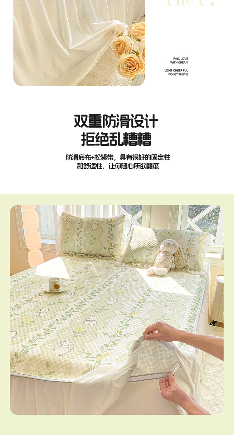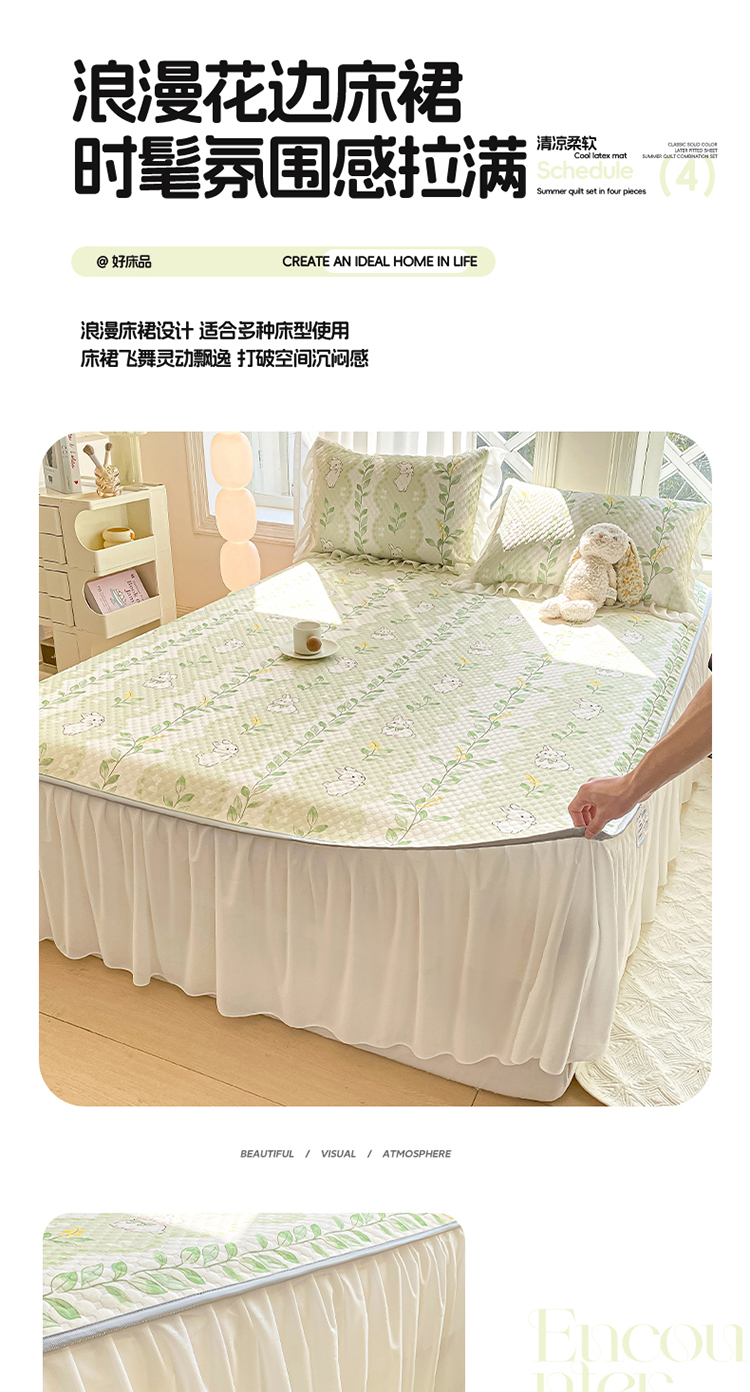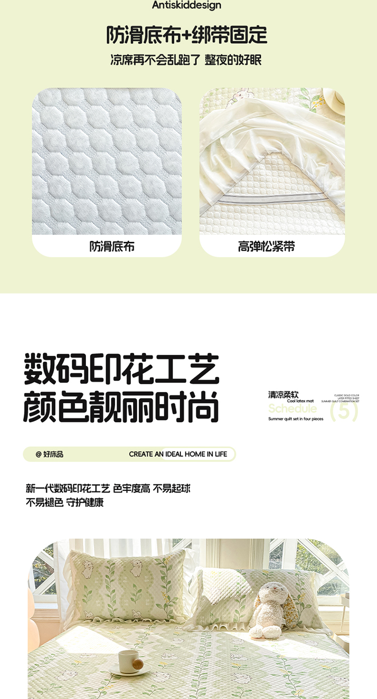 • 91家纺网 家纺一手货源 找家纺 康纳利2025新款A类冰豆豆床裙款凉席夏被四件套凉感丝空调被送买家秀 叶香小兔