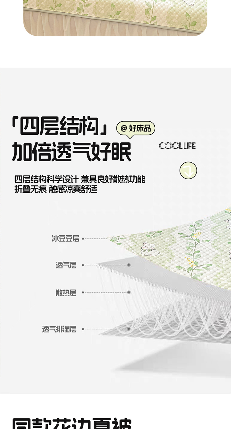 康纳利2025新款A类冰豆豆床裙款凉席夏被四件套凉感丝空调被送买家秀 叶香小兔