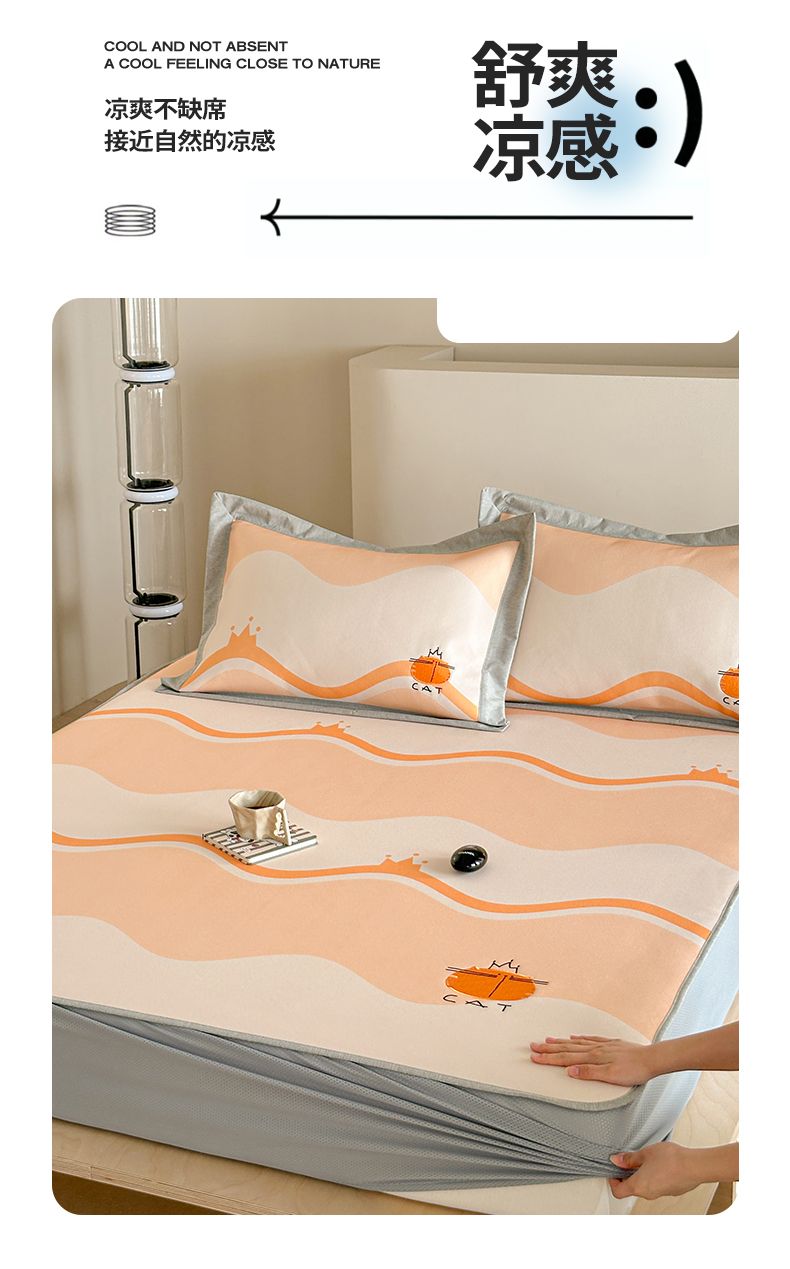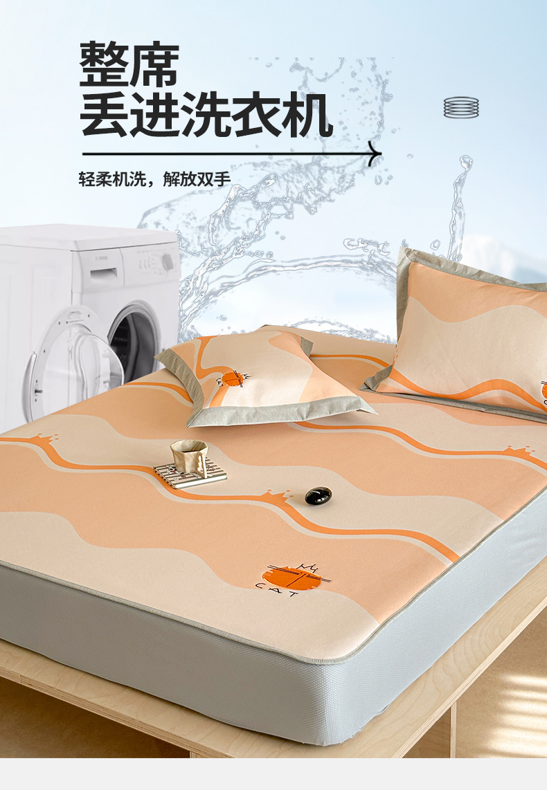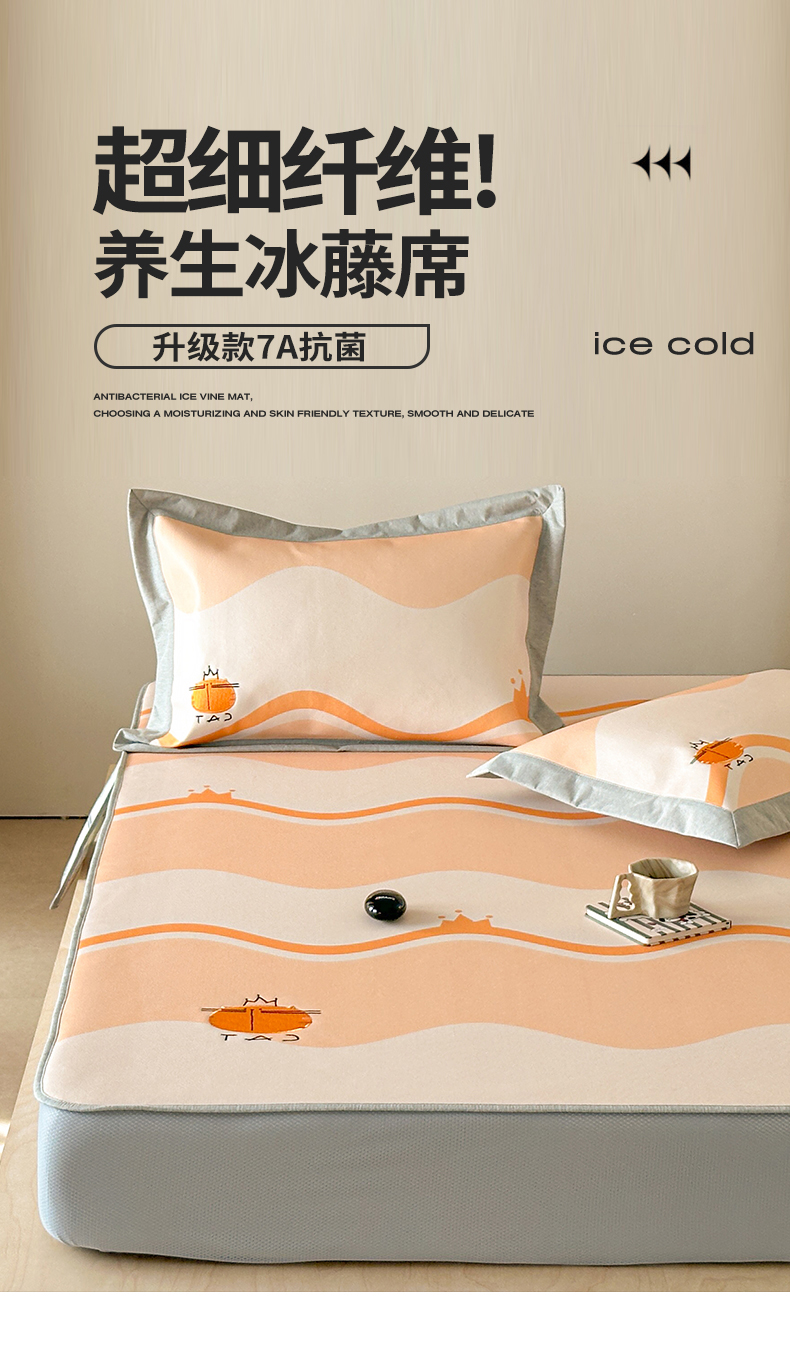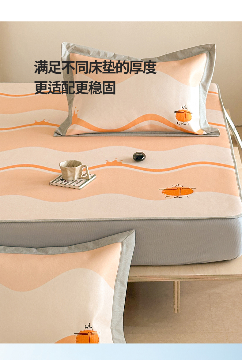 商品名称:Sweet dreams甜梦 2025新款母婴级7A抗菌养生冰藤席席子凉席-影棚2床笠款 皇冠橘子猫