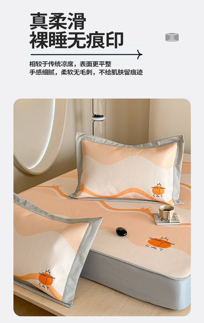 Sweet dreams甜梦 2025新款母婴级7A抗菌养生冰藤席席子凉席-影棚2床笠款 皇冠橘子猫