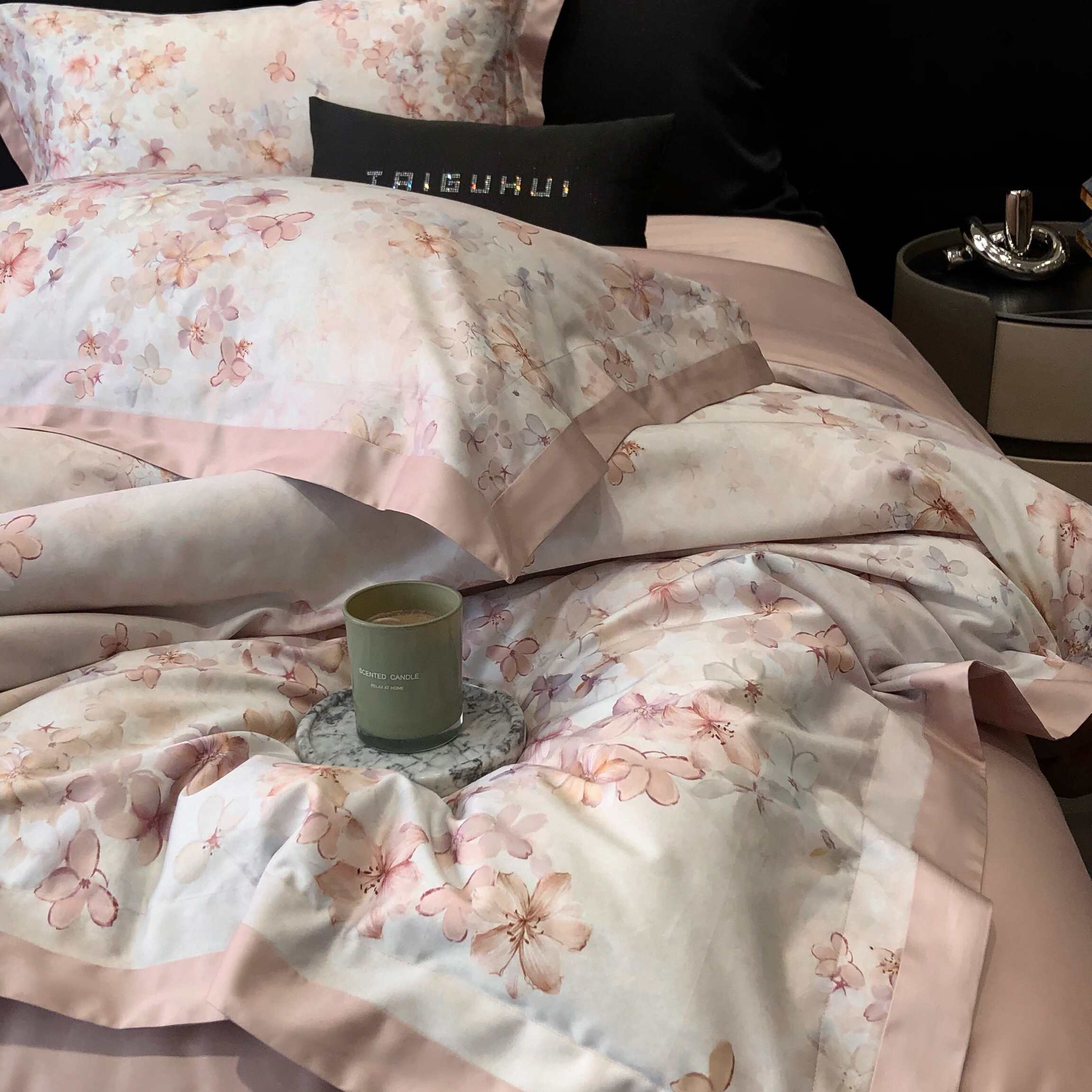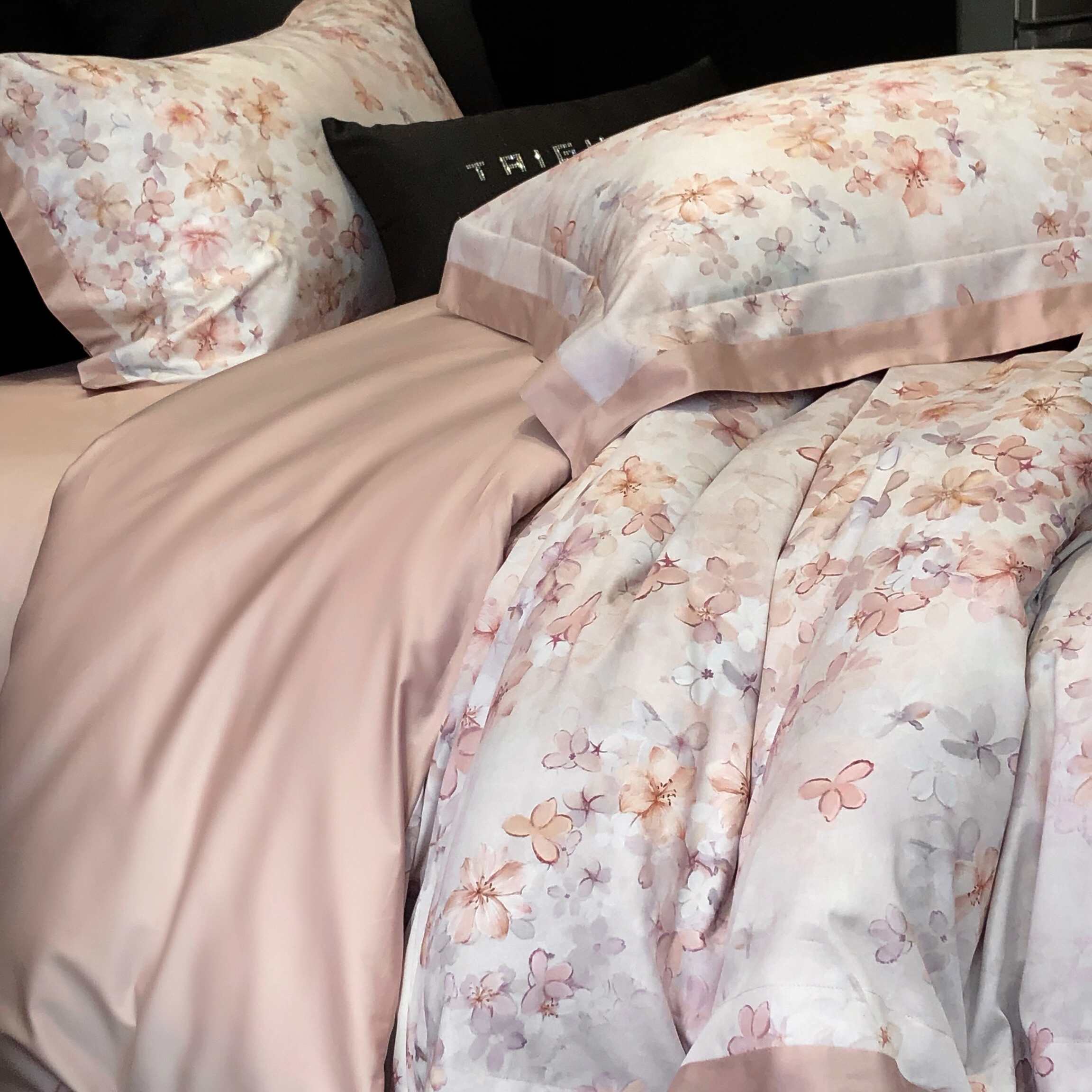 2025年高支高密长绒棉专版活性数码印花系列四件套【券后控价——券后不低于378】 西莉娅-粉色