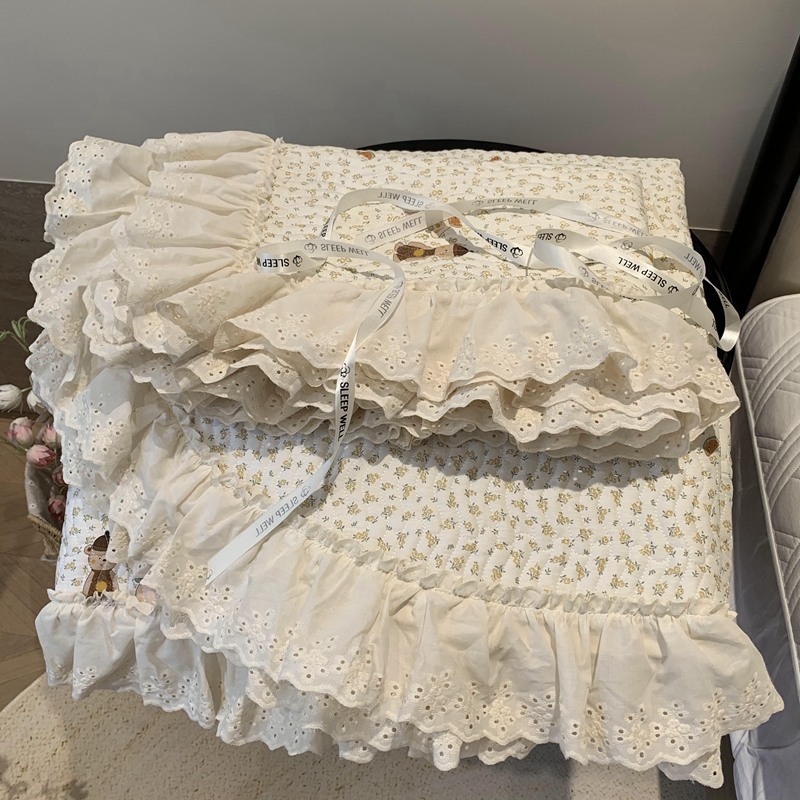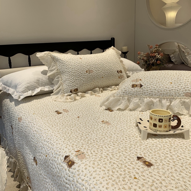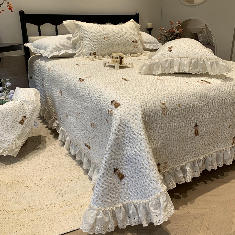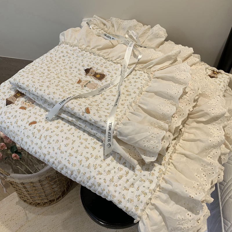 奈萝家纺 2025新款全棉蕾丝花边床盖三件套四件套纯棉花边夏被 西瓜兔
