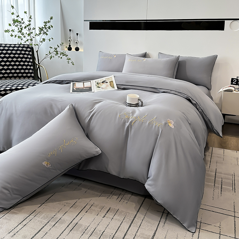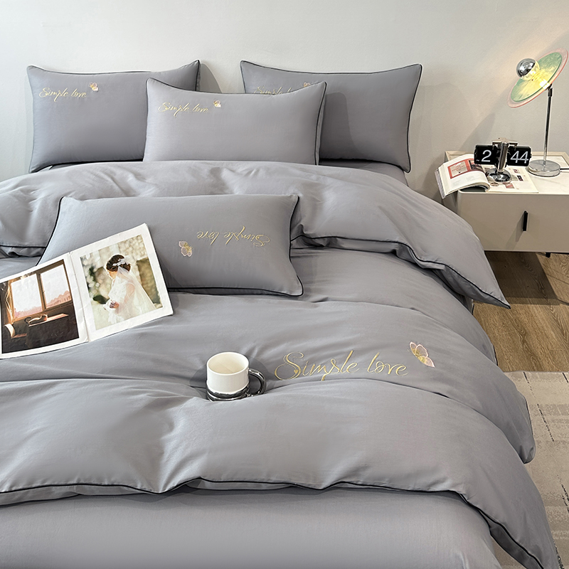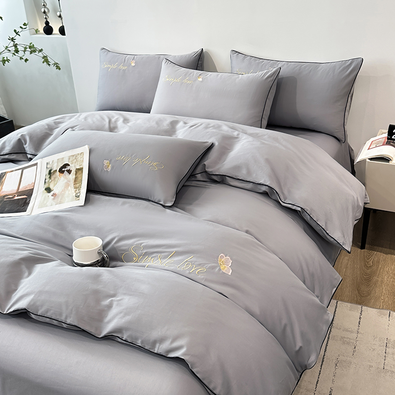 商品名称:宇彬家纺 2025直播热款新款13374全棉母婴级麻绳滚边纯棉色刺绣单品被套 轻奢 绅士灰