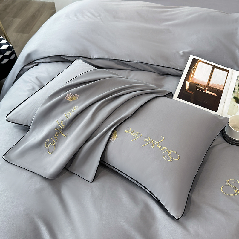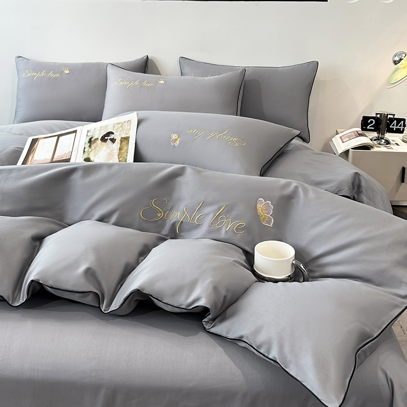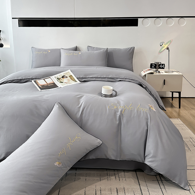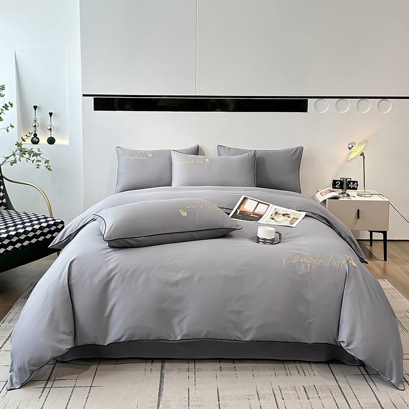 宇彬家纺 2025直播热款新款13374全棉母婴级麻绳滚边纯棉色刺绣单品被套 轻奢 绅士灰
