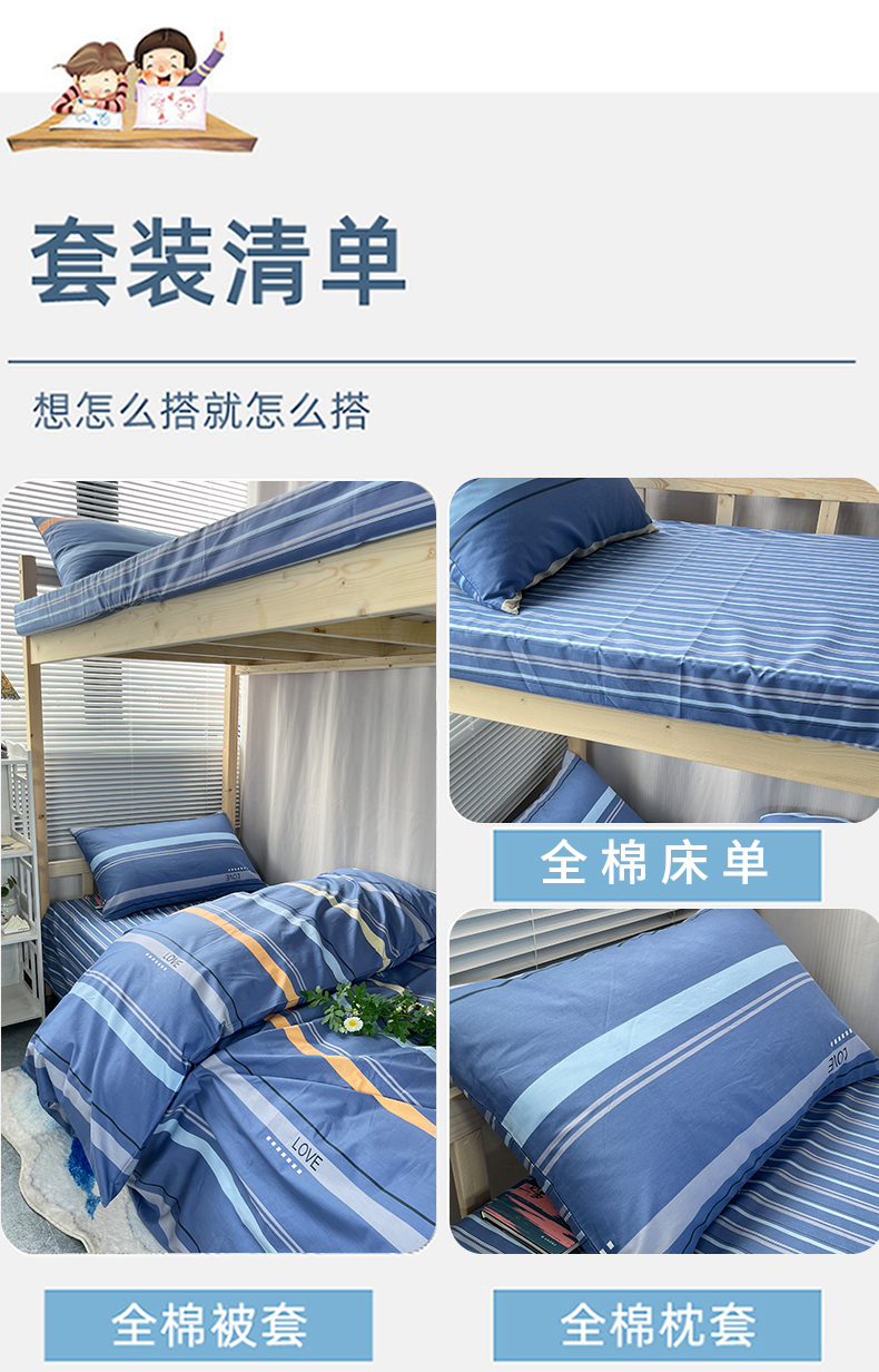 当前位置: 91家纺网 > 商品网购 > 床品套件 > 三件套 > 云梦2025新款全棉印花学生宿舍套件 上下铺兄弟
