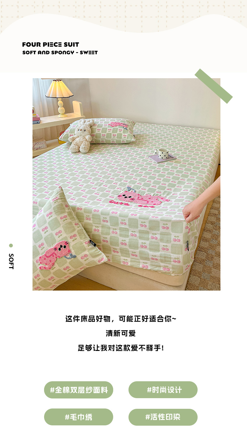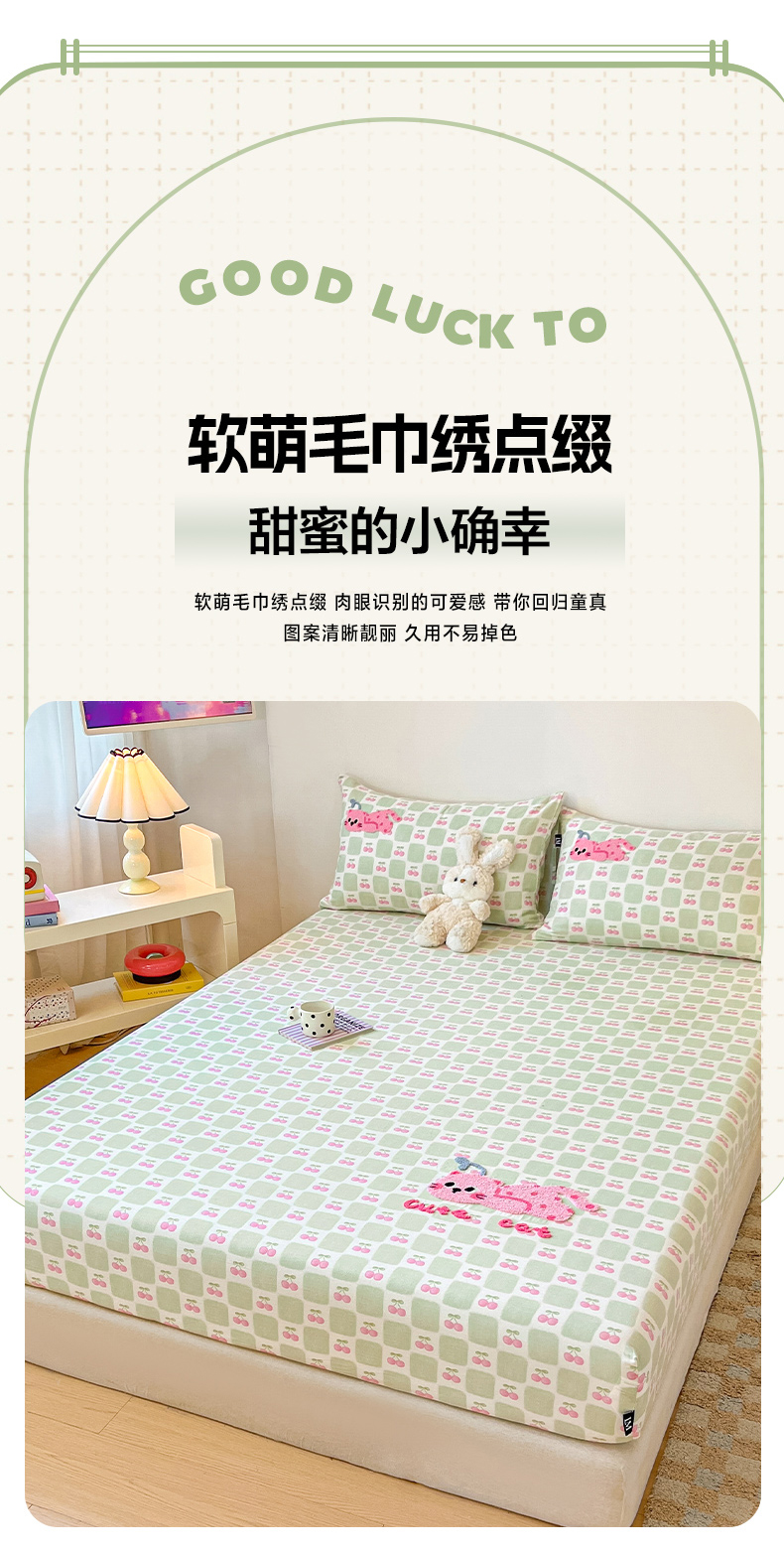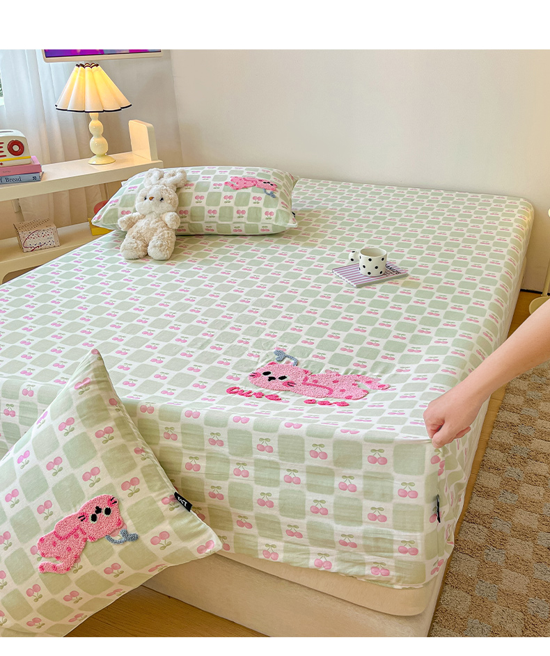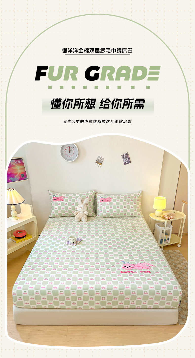 乐美家纺 2025新款懒洋洋全棉双层纱毛巾绣床笠三件套(提供买家秀) 蔓蔓猫
