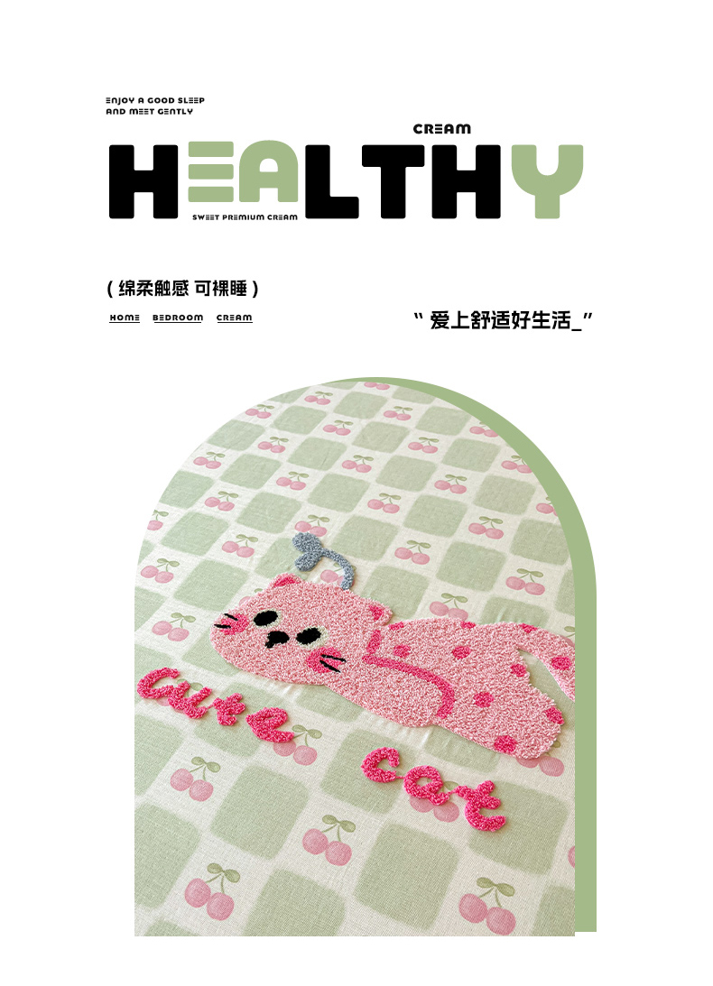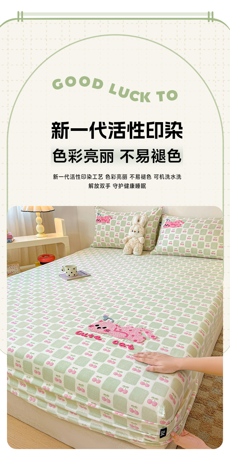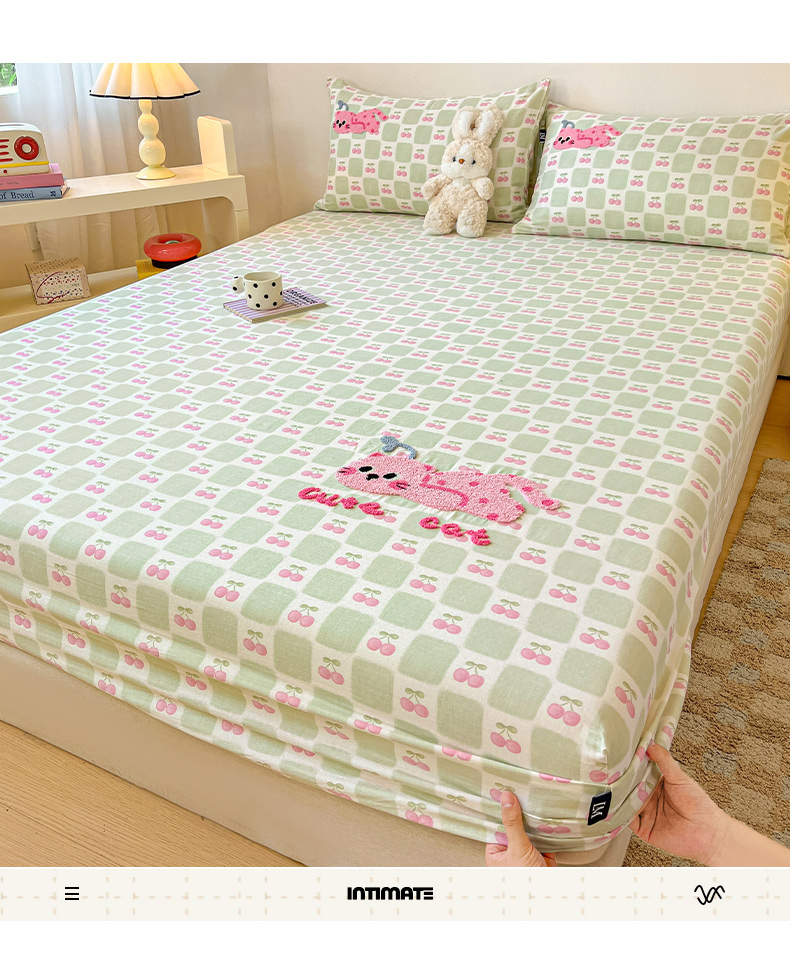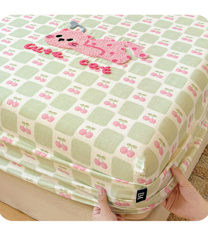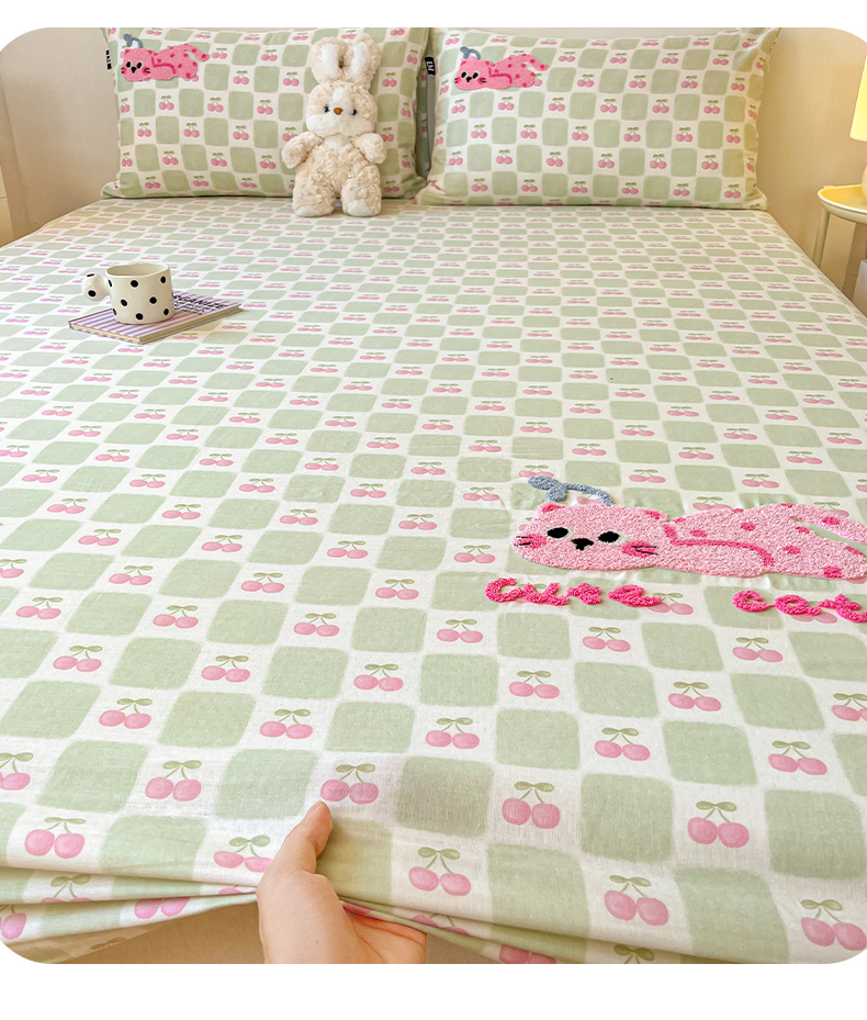 乐美家纺 2025新款懒洋洋全棉双层纱毛巾绣床笠三件套(提供买家秀) 蔓蔓猫