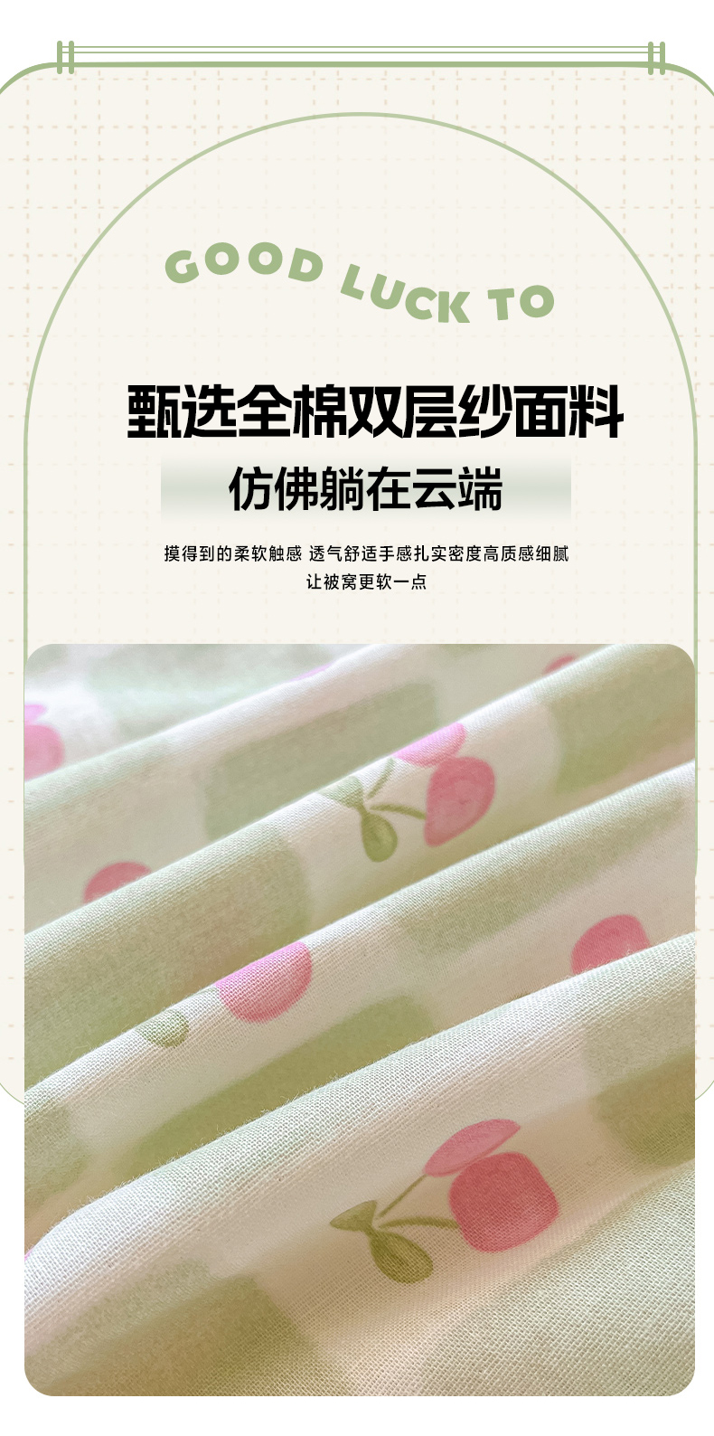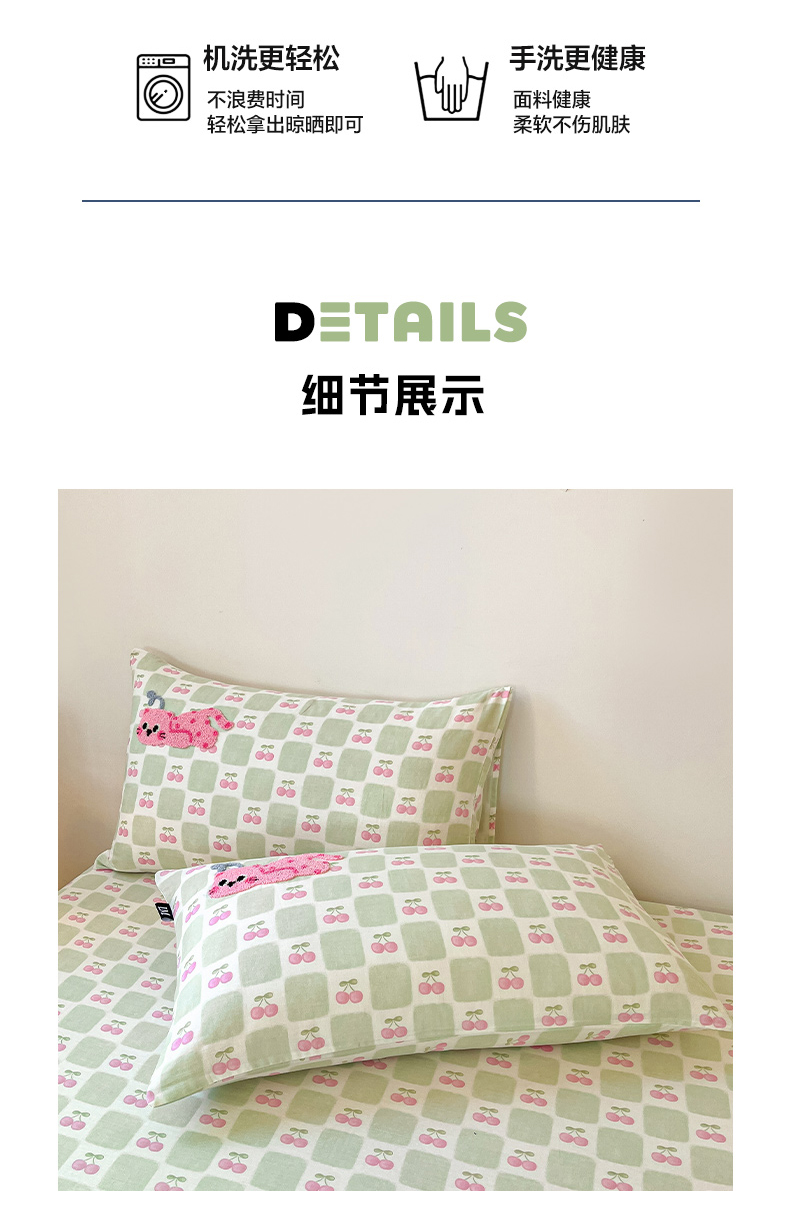 商品名称:乐美家纺 2025新款懒洋洋全棉双层纱毛巾绣床笠三件套(提供买家秀) 蔓蔓猫
