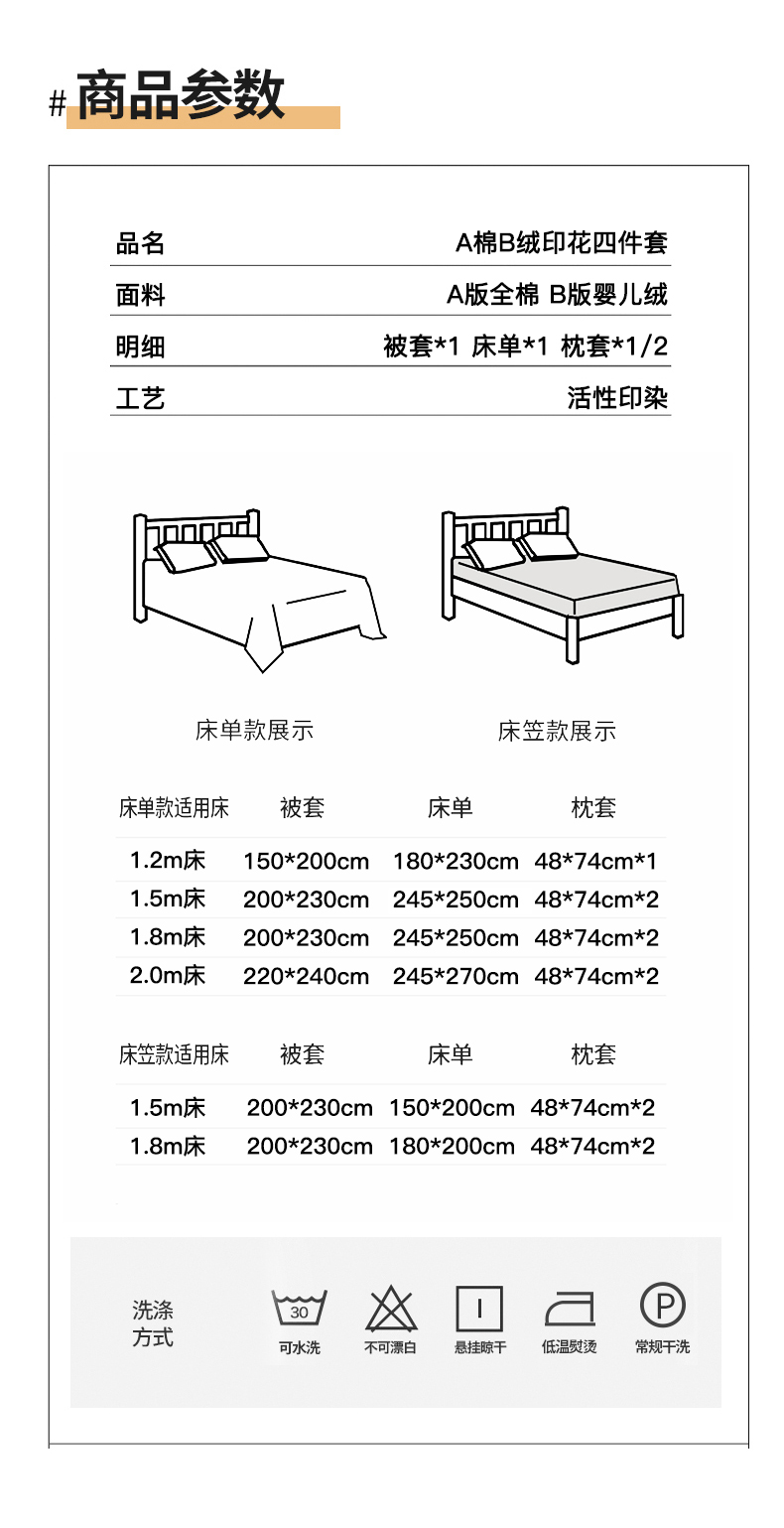 【床笠款】1.5四件套-被套200x230 | ¥105.00 |