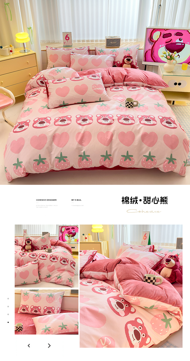 商品名称:清雅福 2025新款秋冬新品全棉印花棉加绒单被套单品被套被套单件 棉绒-甜心熊
