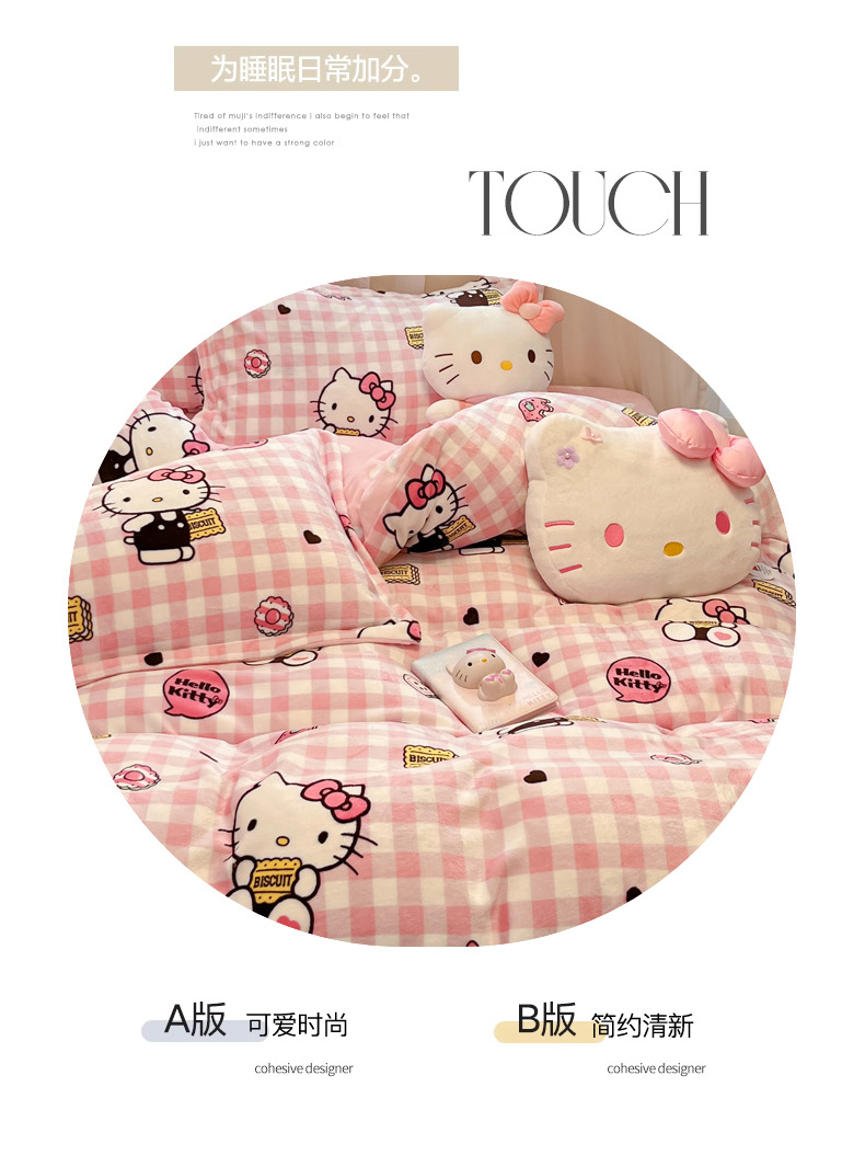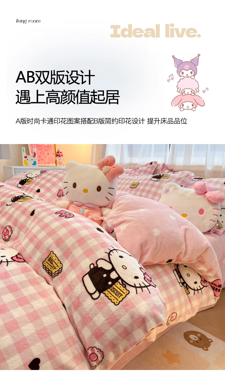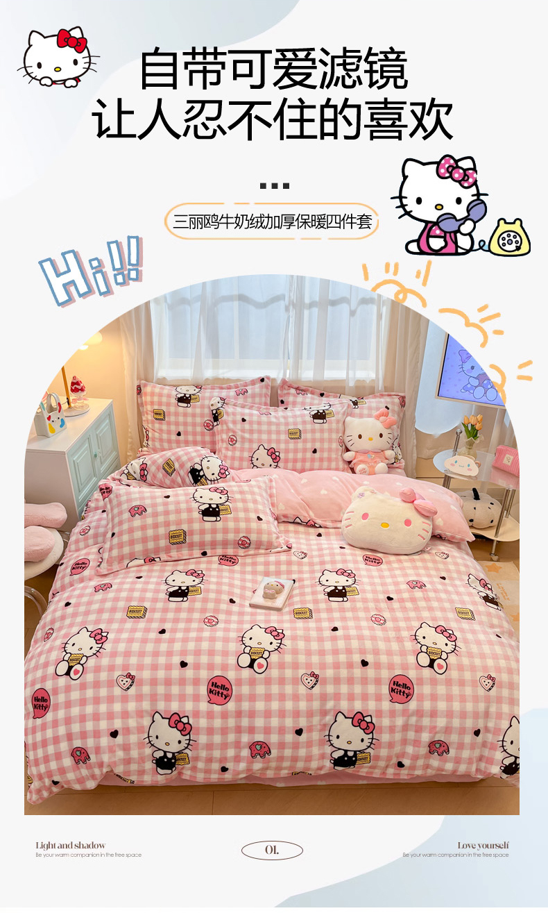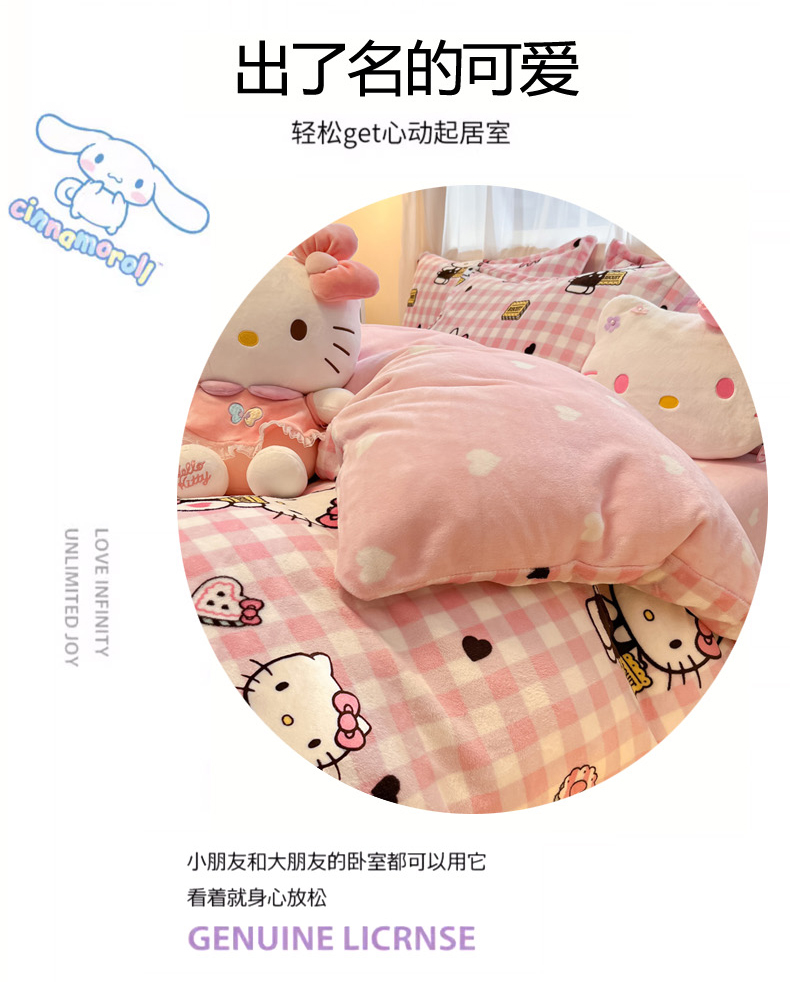 当前位置: 91家纺网 > 商品网购 > 床品套件 > 四件套 > 牛奶绒四件套 > 暮思家居 2025新款三丽鸥正版授权高克重200克加厚保暖卡通牛奶绒四件套 牛奶绒-粉格kt