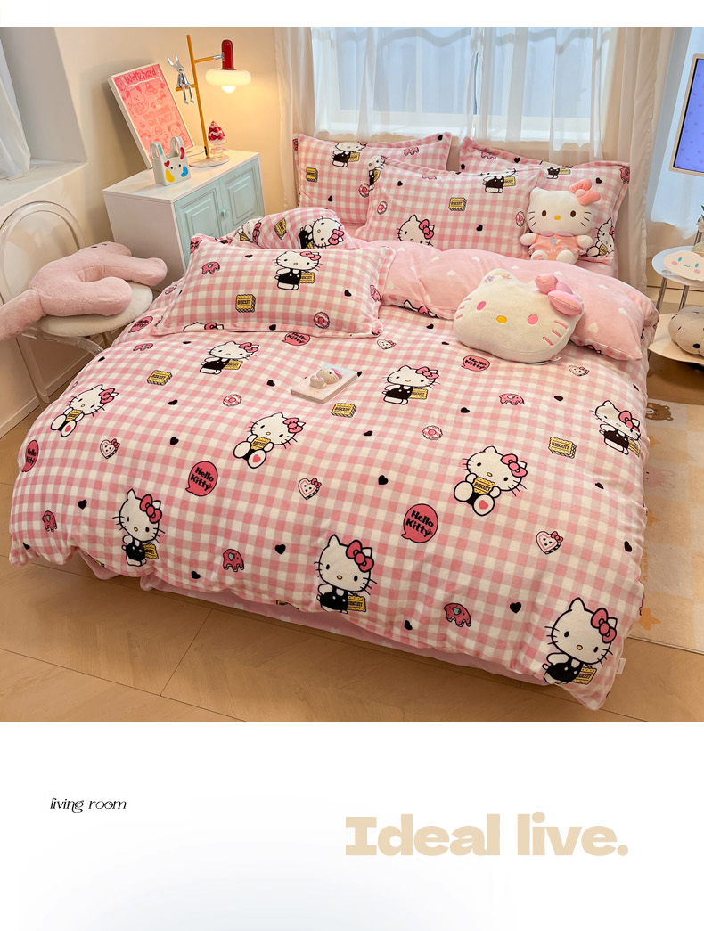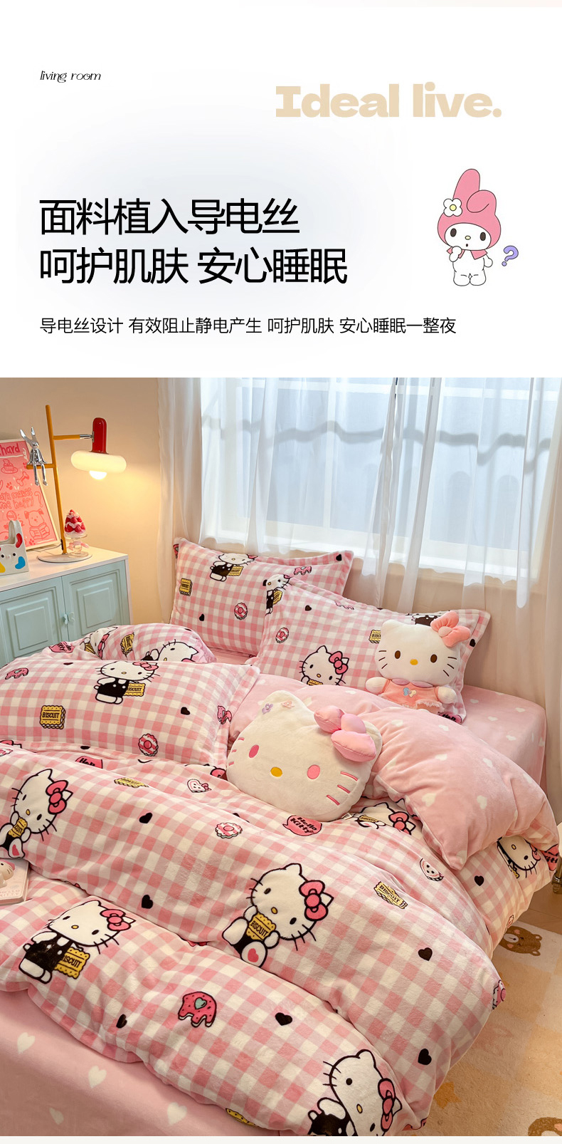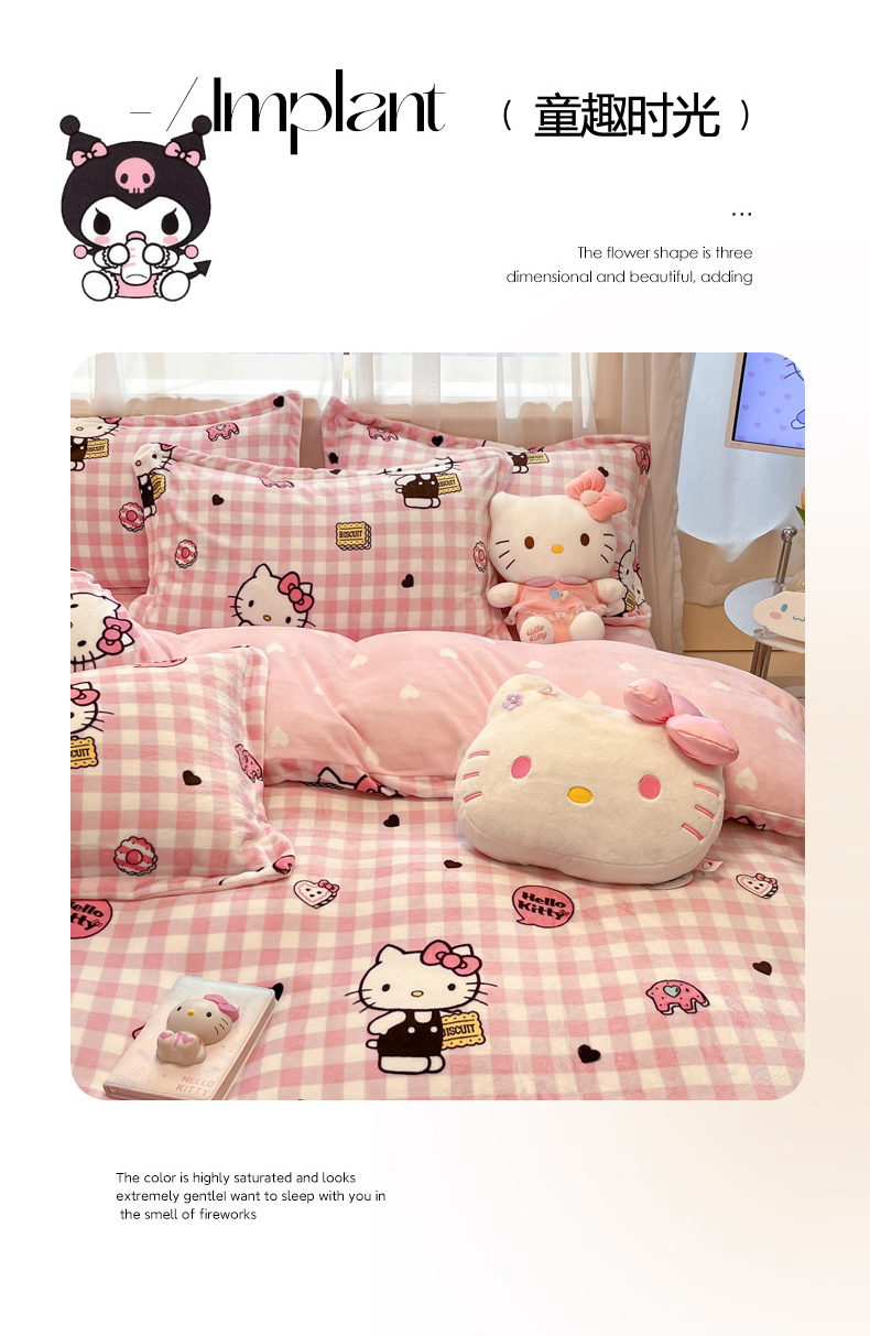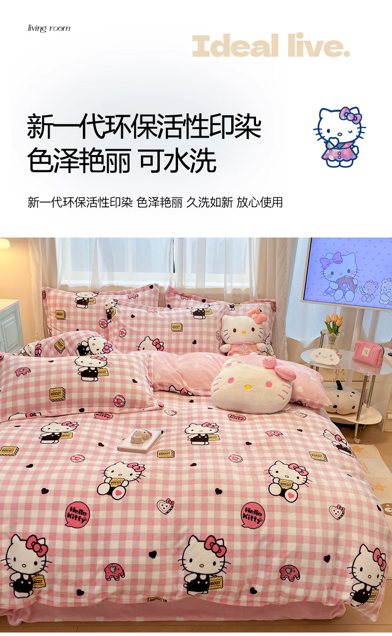 当前位置: 91家纺网 > 商品网购 > 床品套件 > 四件套 > 牛奶绒四件套 > 暮思家居 2025新款三丽鸥正版授权高克重200克加厚保暖卡通牛奶绒四件套 牛奶绒-粉格kt