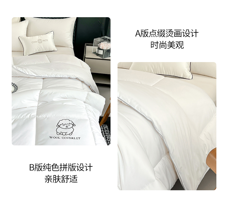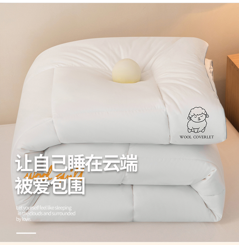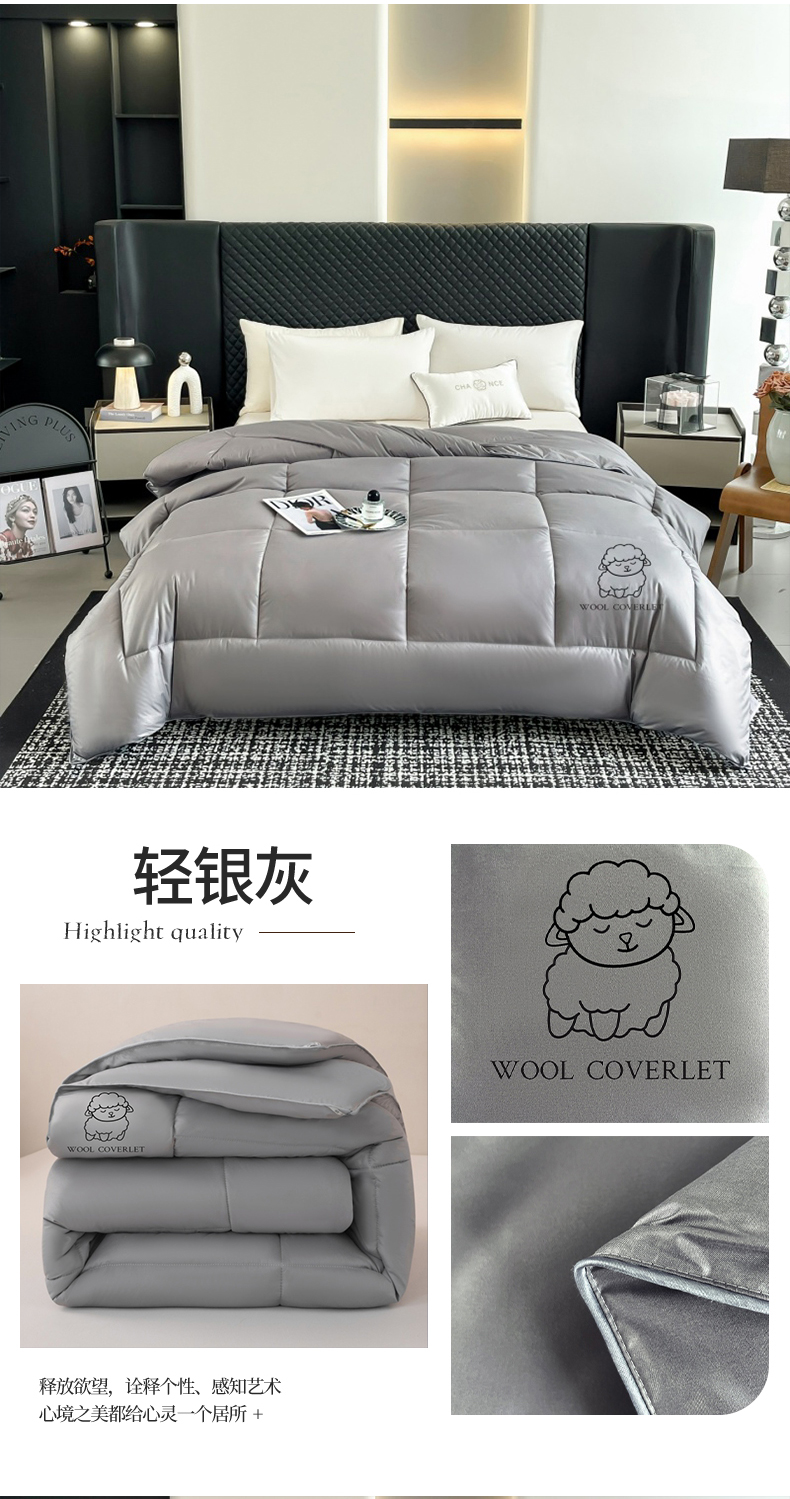 • 91家纺网 家纺一手货源 找家纺 (总) 爱宝被业2025新款100%澳洲羊毛被A类亲肤棉羊毛被,奶昔白,轻银灰,雾晨粉