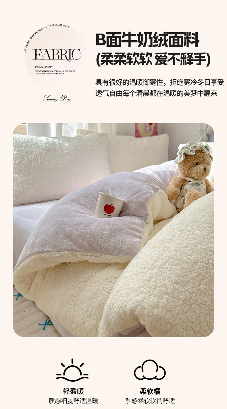 (总)顾里家纺 2024新款ins韩系牛奶羊羔绒套件,羊羔粉黄,羊羔白蓝,羊羔黄蓝,羊羔灰,羊羔咖,羊羔蓝,羊羔蓝黄,羊羔绿粉,羊羔米,羊羔奶黄,羊羔暖咖,羊羔紫