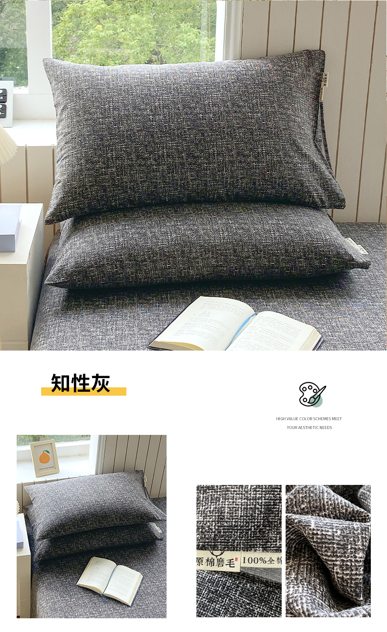 商品名称:春皖家纺 2025新款原棉磨毛单枕套 枕套单件-风格一 暮山灰